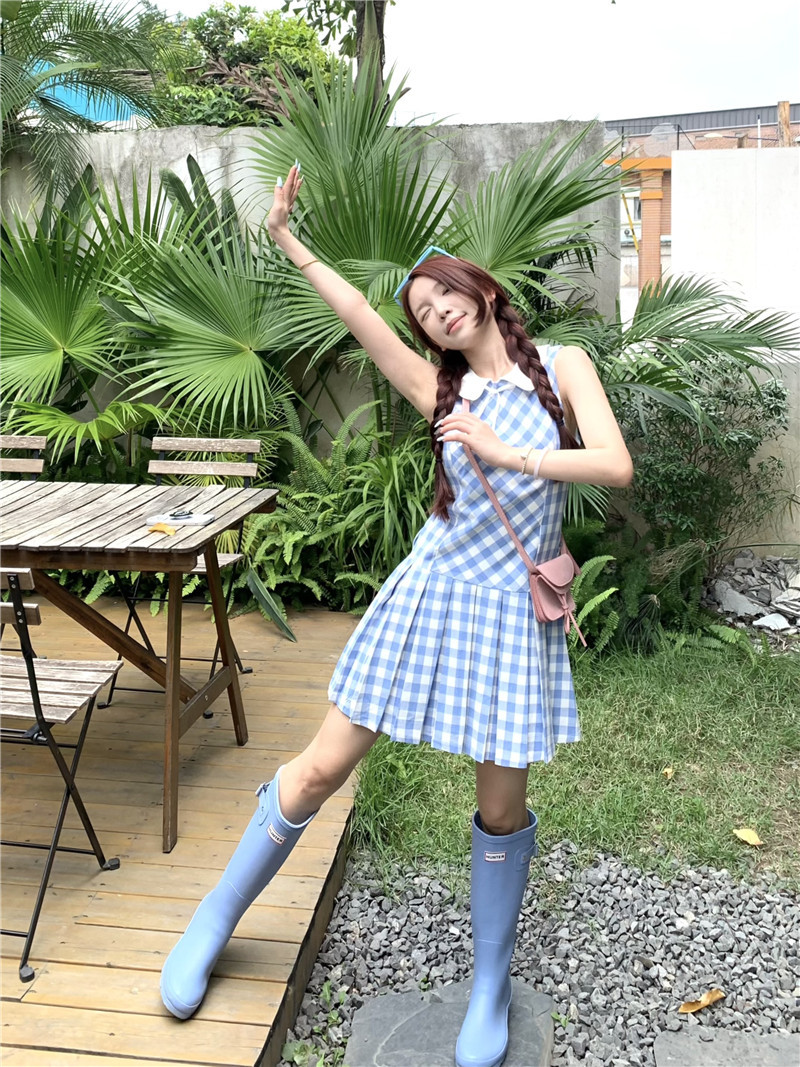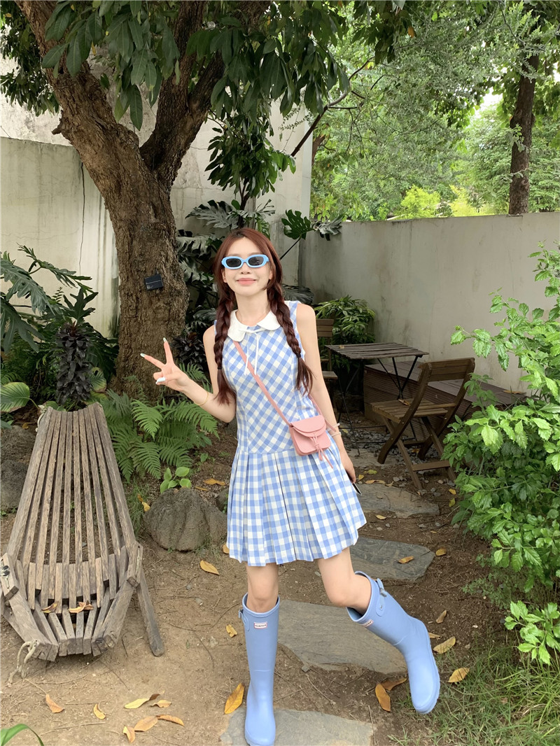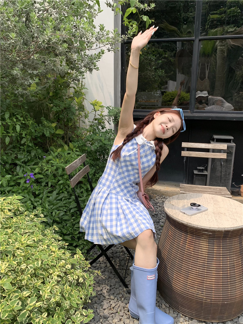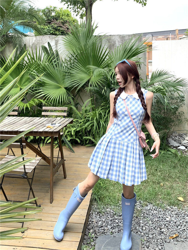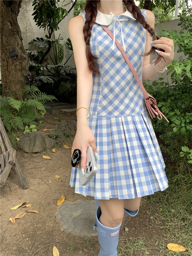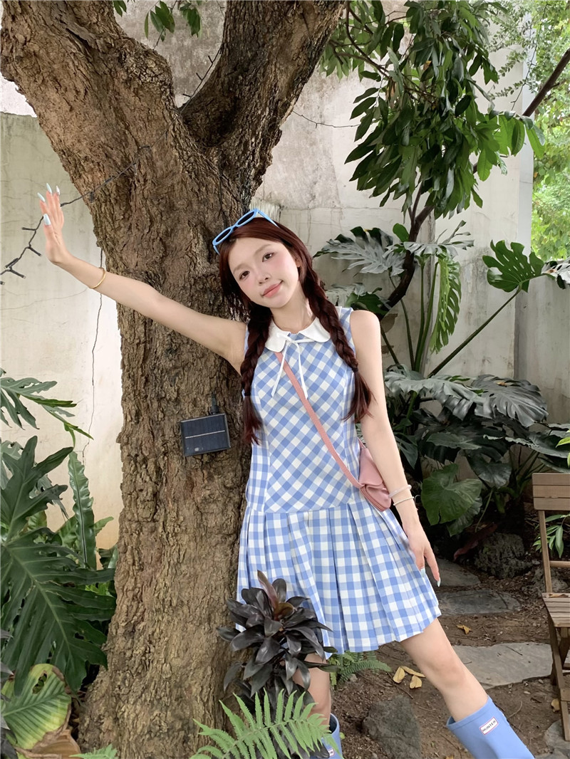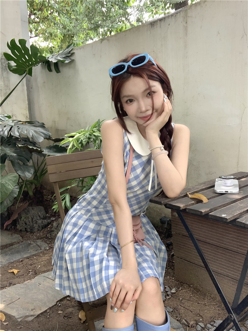 JMA-591 实拍夏季韩版娃娃领甜美少女格子连衣裙法式海边度假初恋清纯裙子