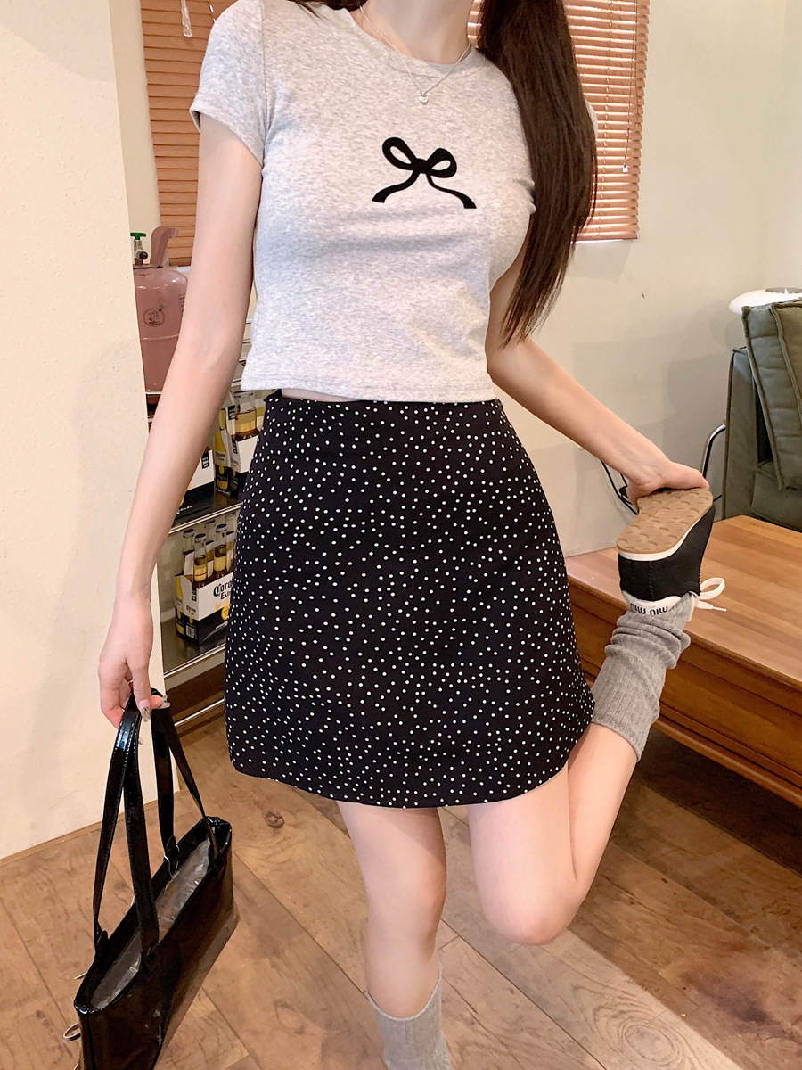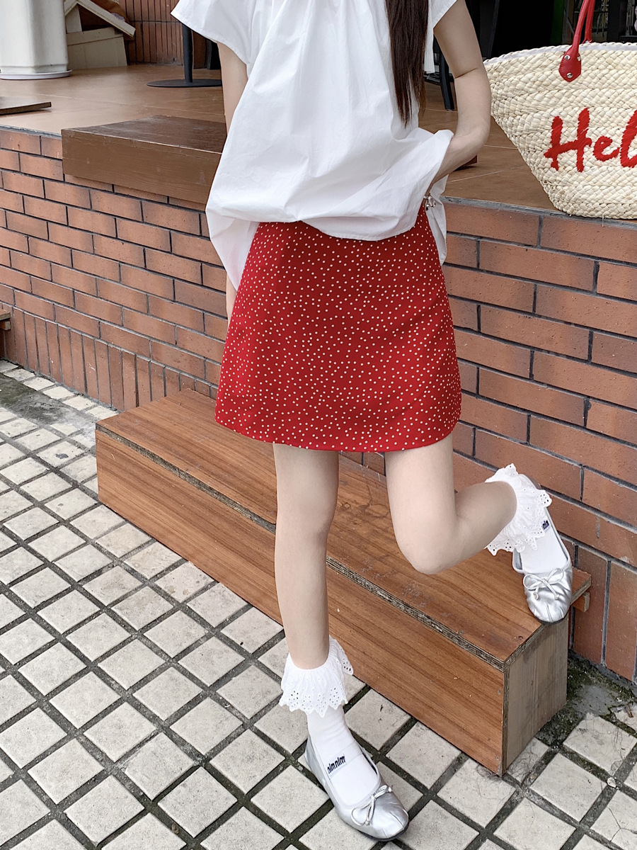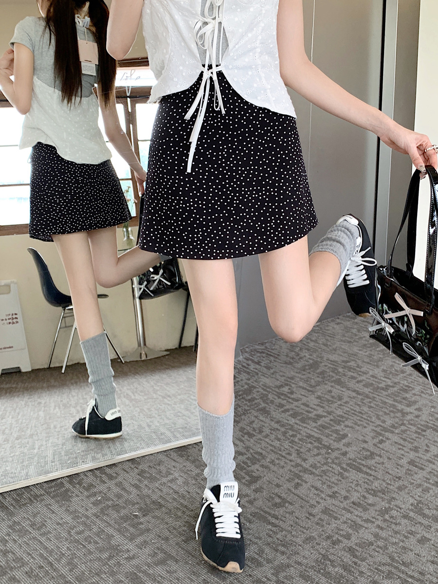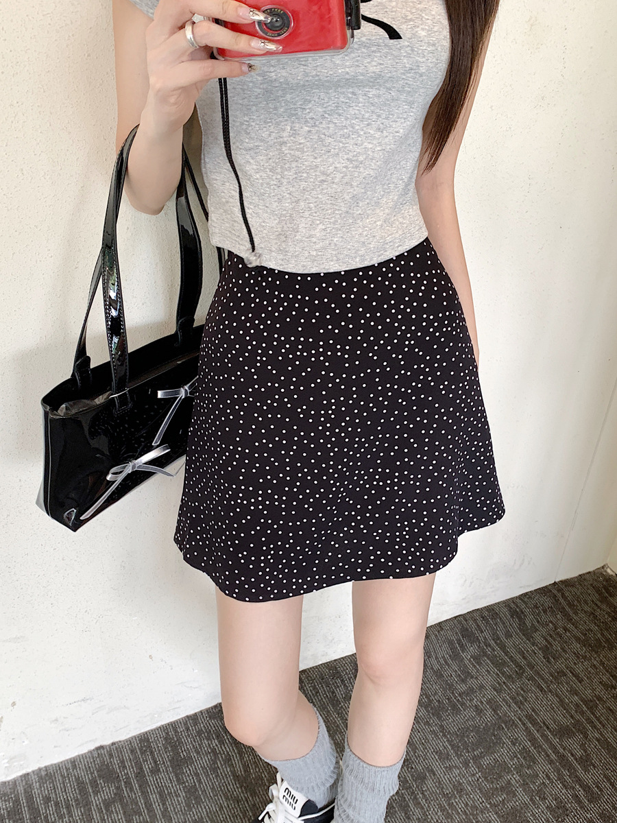 JMA-592 实拍 夏季韩版明星同款波点裙女高腰A字半身裙女小个子甜辣风短裙