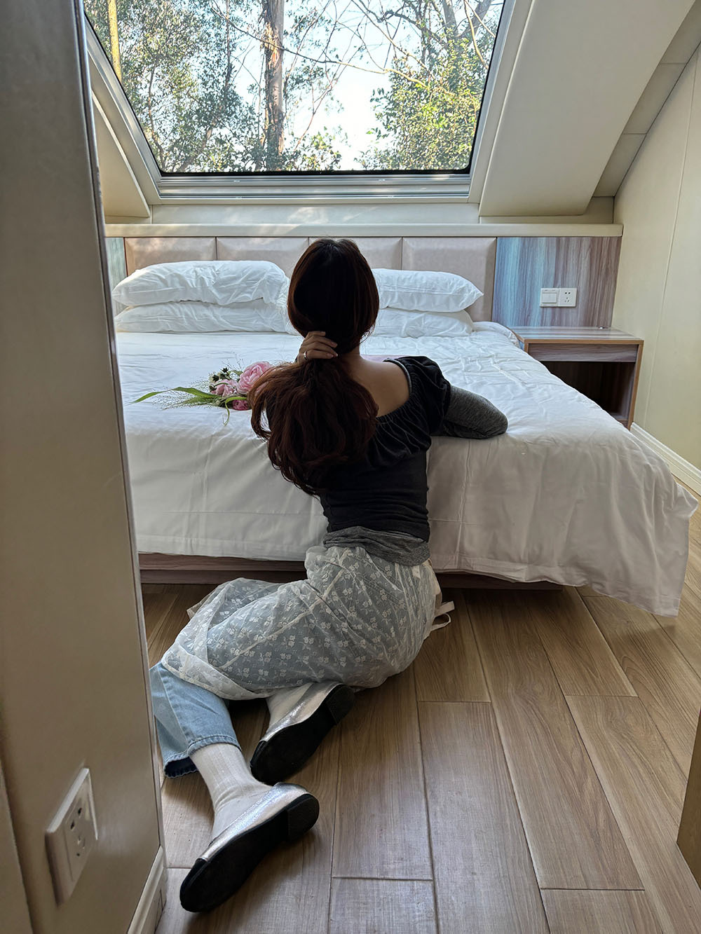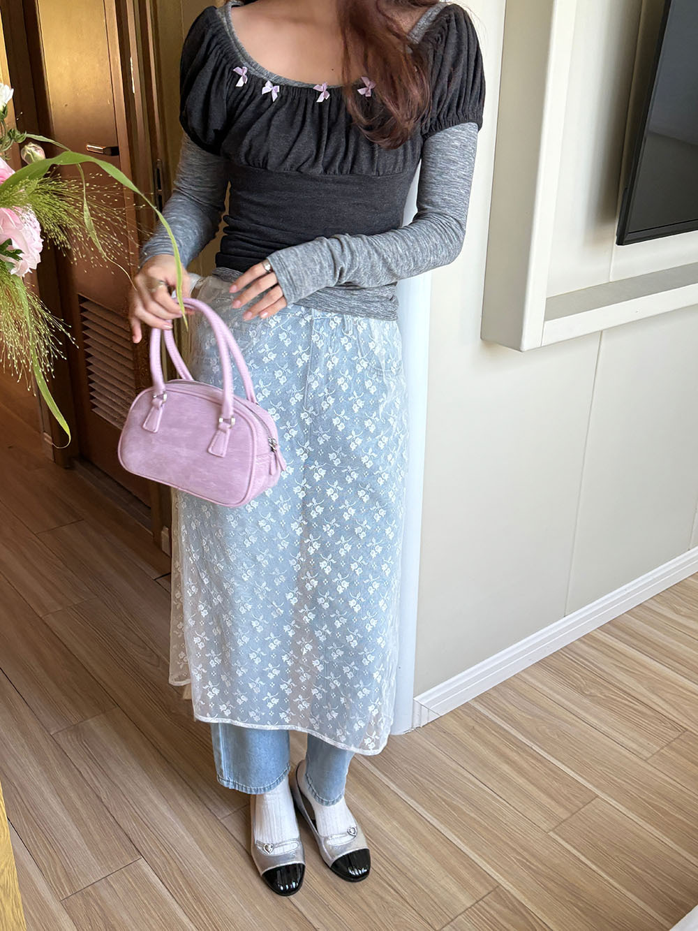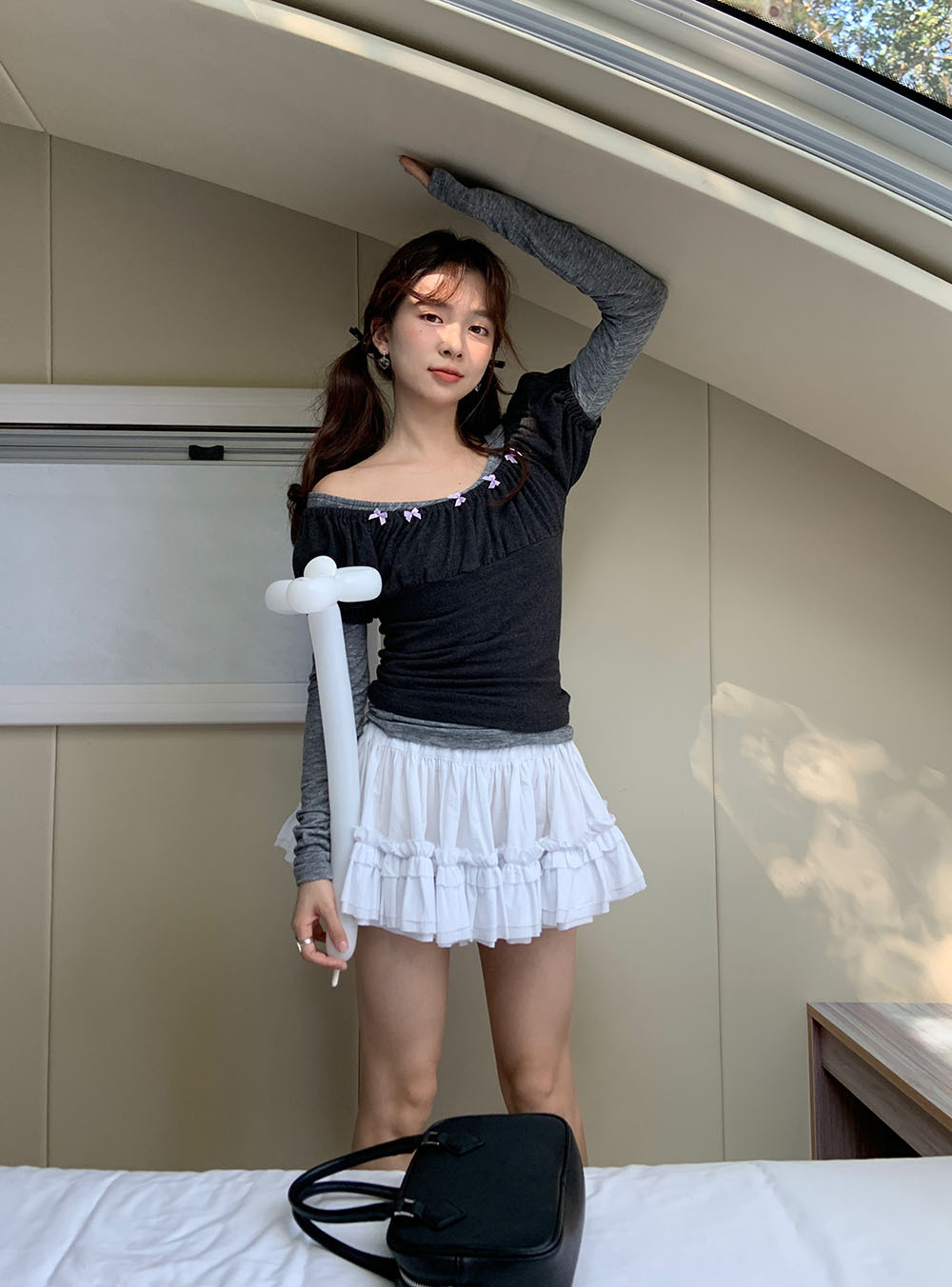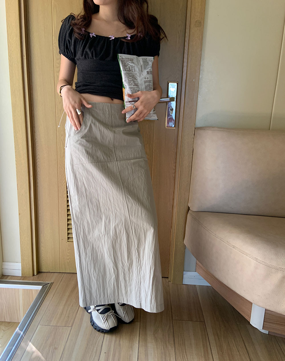 JMA-598 实拍 夏季韩版小众设计感可爱蝴蝶结点缀皱褶泡泡袖短袖T恤上衣女