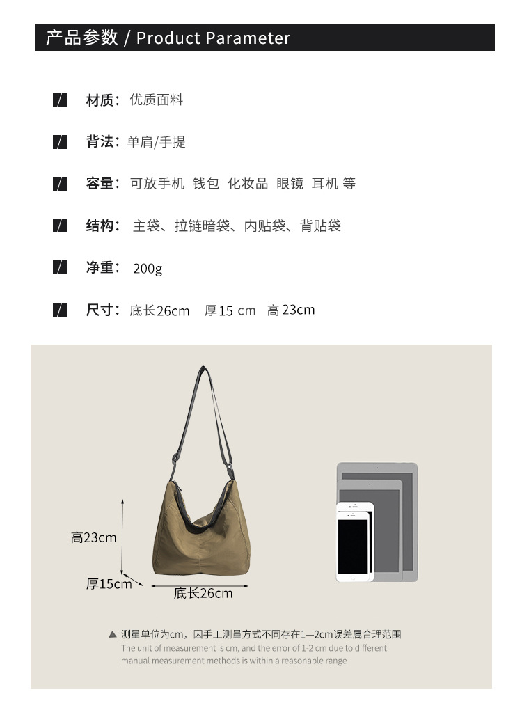 JM-992 2024款夏季轻便尼龙布托特包通勤大容量单肩斜挎包简约水洗购物袋