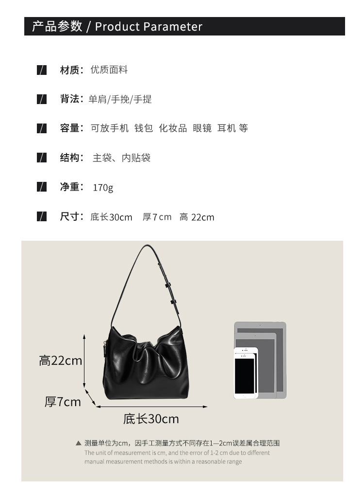 JM-1000 大容量简约风腋下包女士手提包日式褶皱云朵包小巧轻便单肩女包潮
