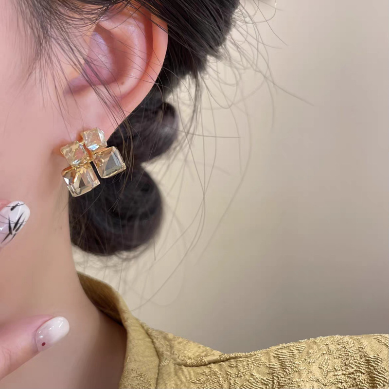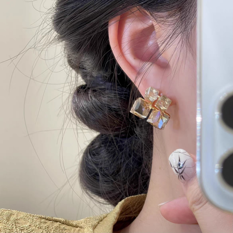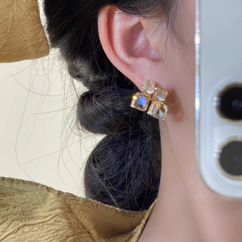 JME-576 轻奢高级感立体方块水晶耳钉女2024年新款爆款独特气质百搭耳饰品