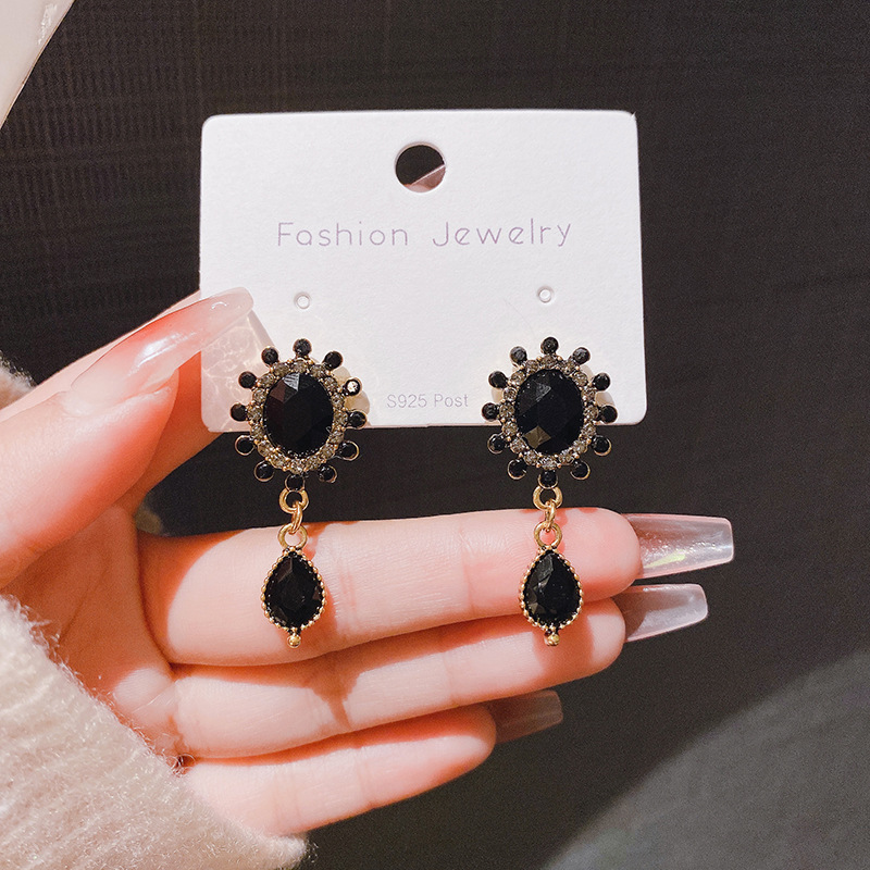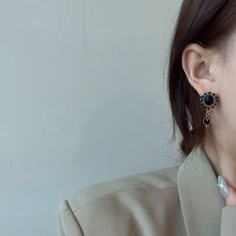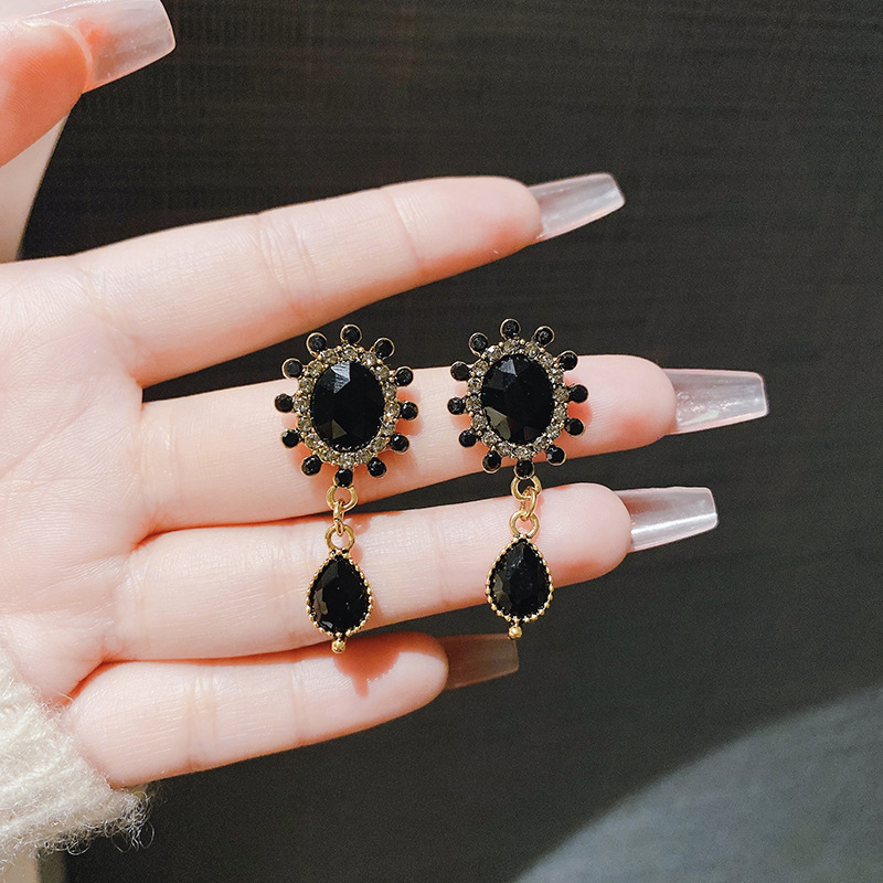 JME-577 法式宫廷风巴洛克黑色镶钻耳环女高级感轻奢时尚耳钉气质百搭耳饰