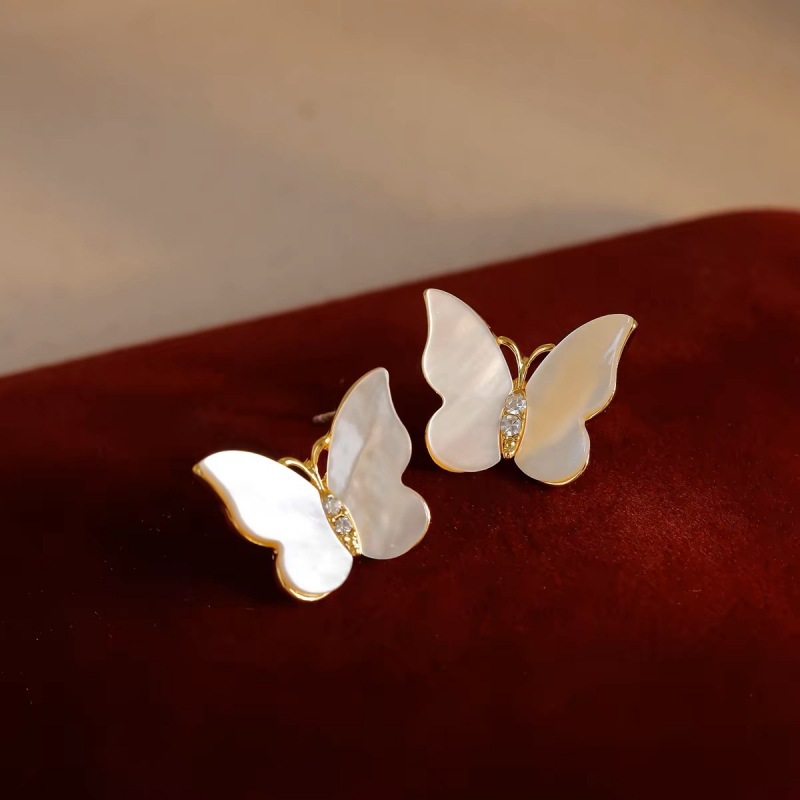 JME-580 ins甜酷超仙白色贝母小众耳环气质轻奢仙气蝴蝶耳钉清新夏日耳饰