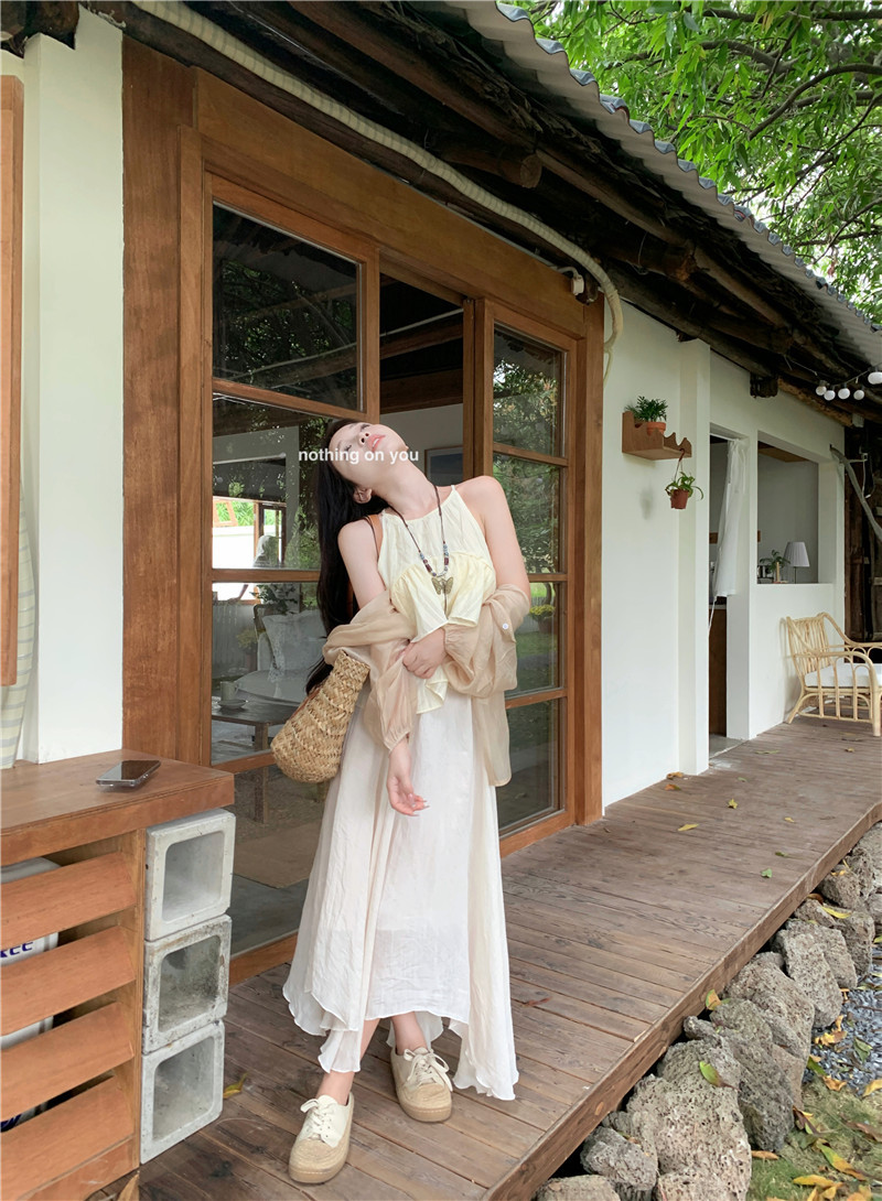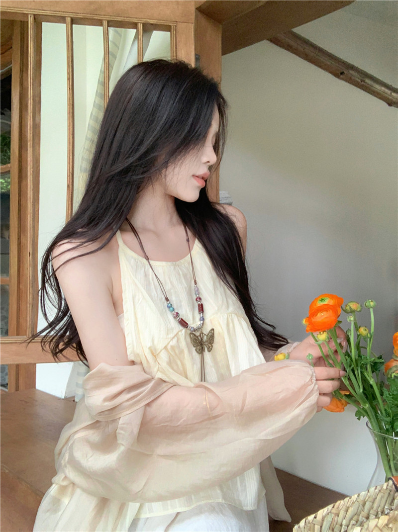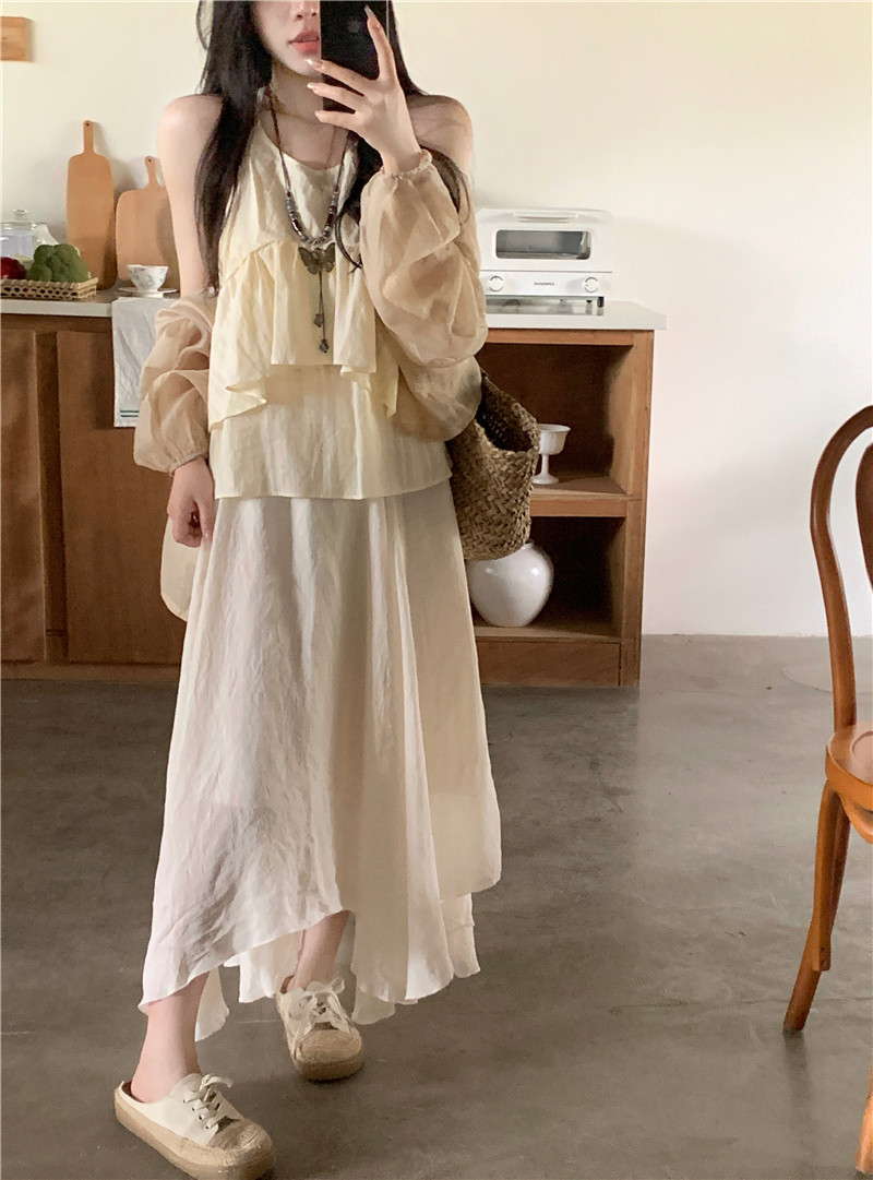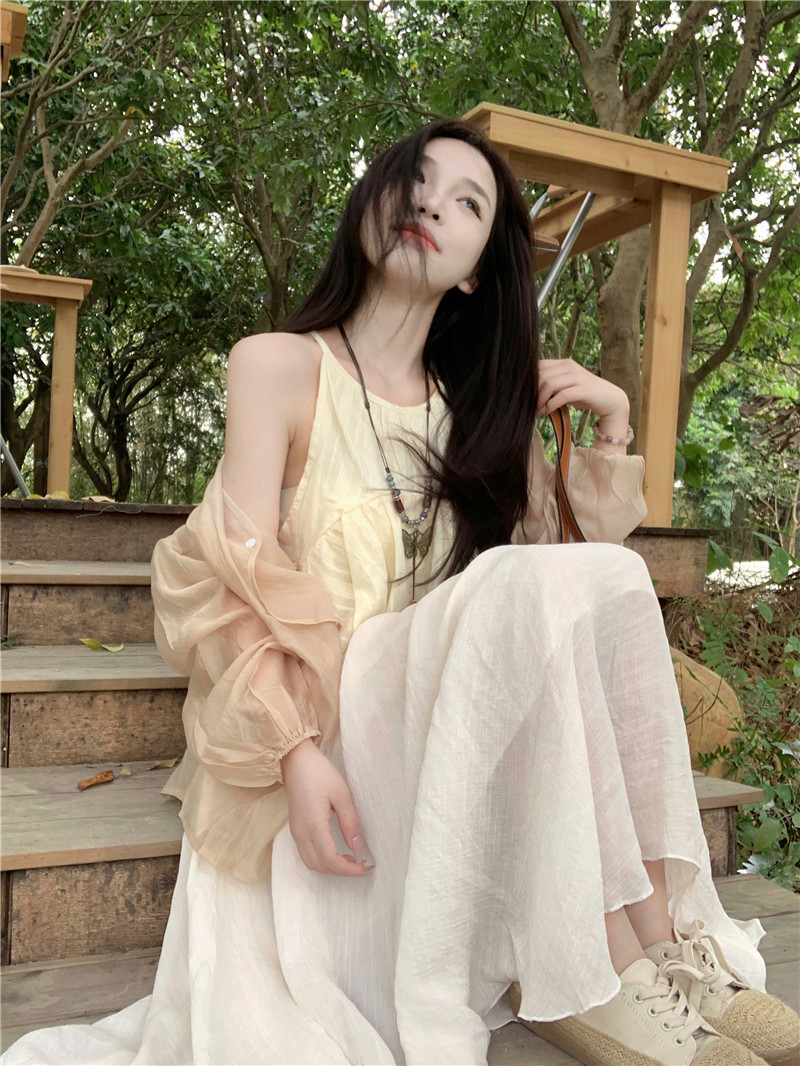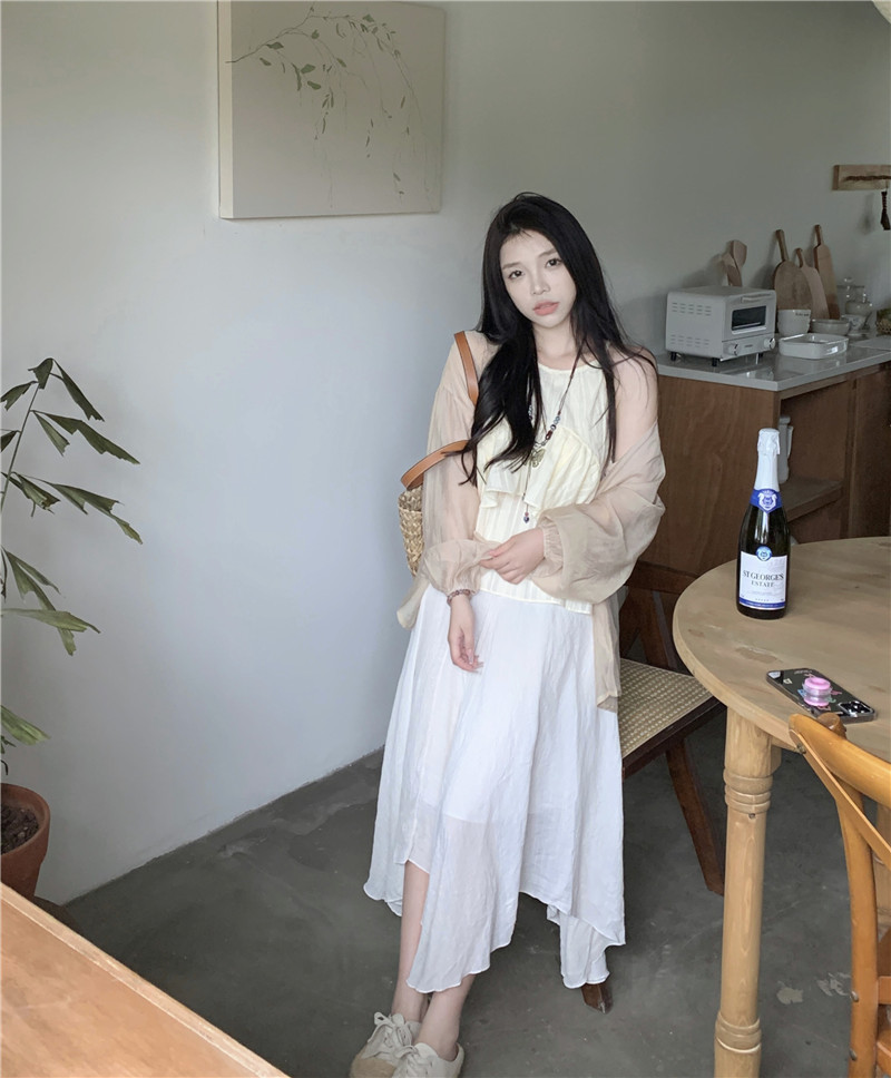 JMA-608 实拍 2024夏季韩版请冷风韩系露肩吊带女+防晒开衫+不规则半身裙