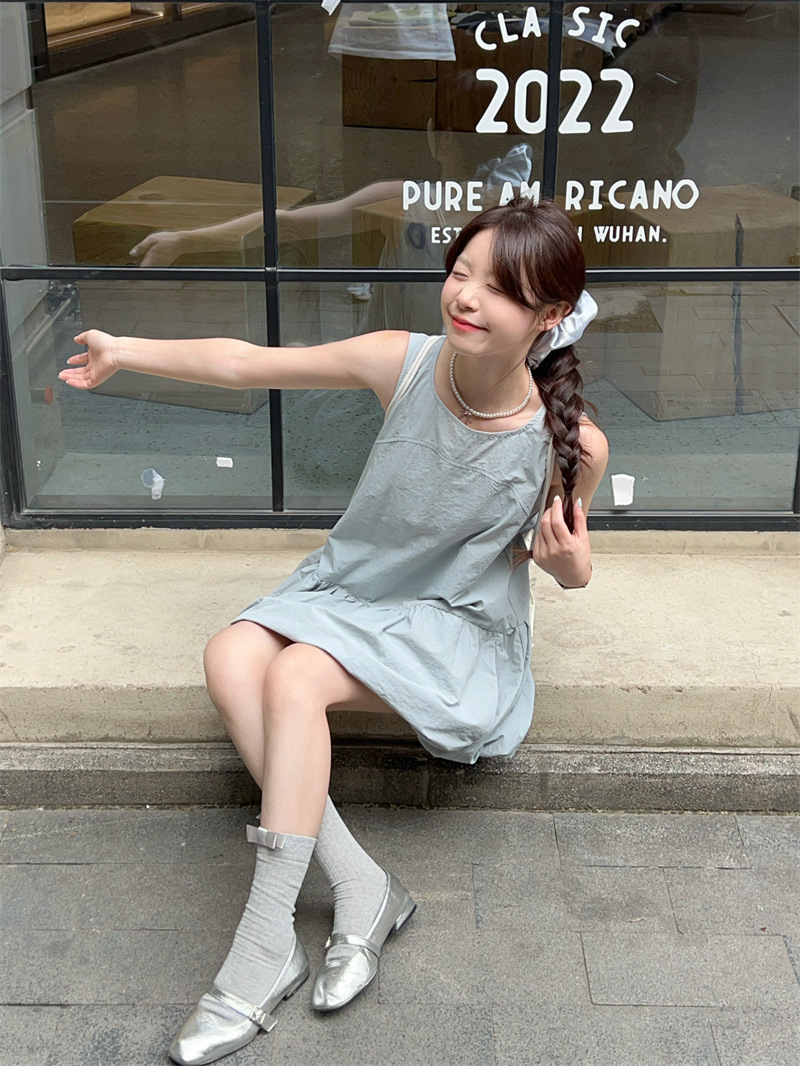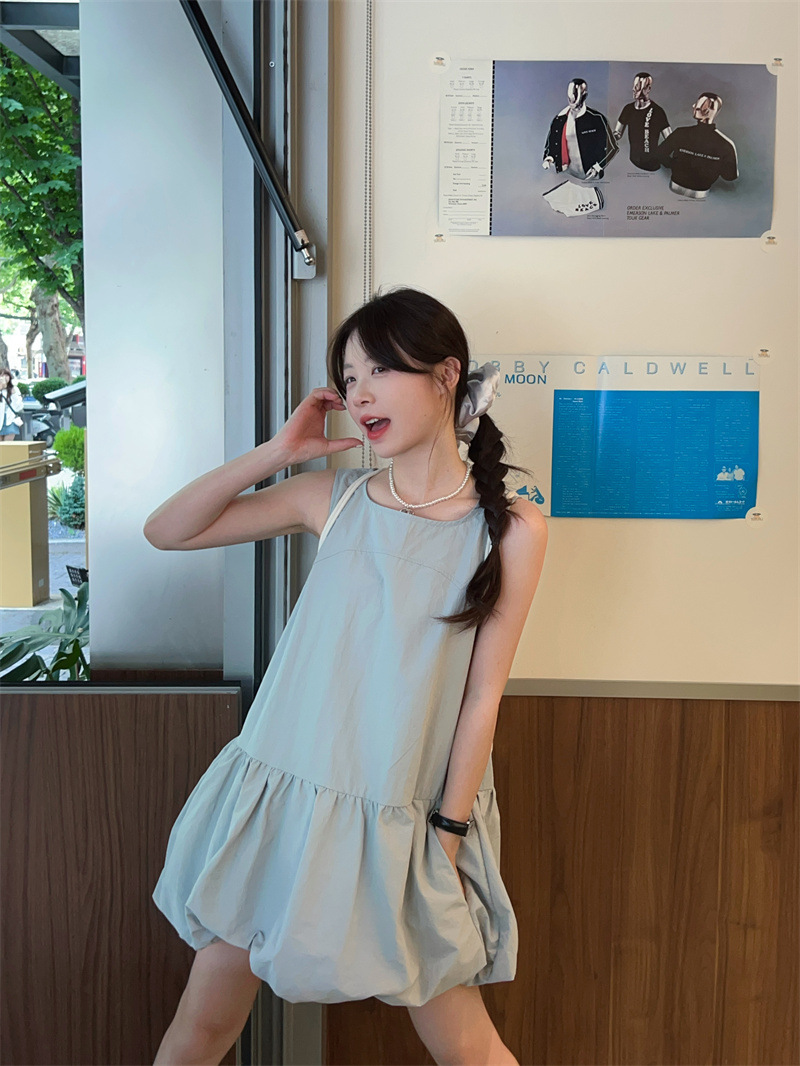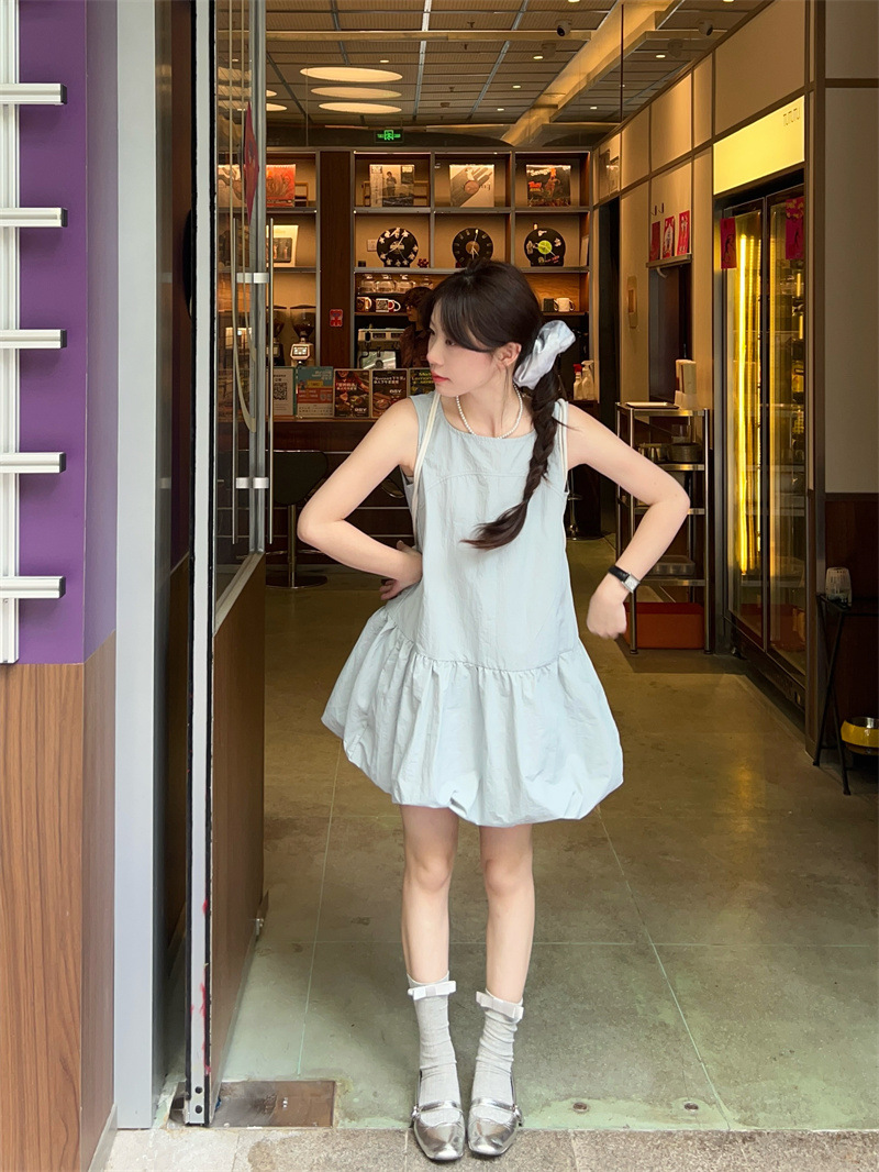 JMA-610 实拍 2024夏季新款韩版甜美俏皮无袖设计感蓬蓬裙背心裙连衣裙女