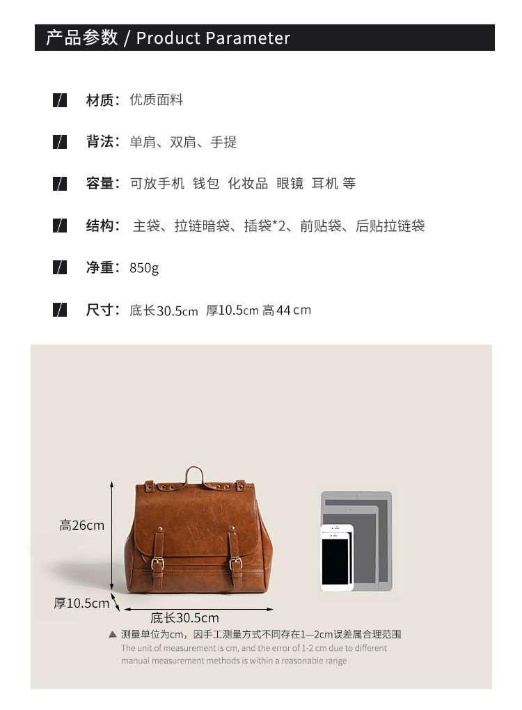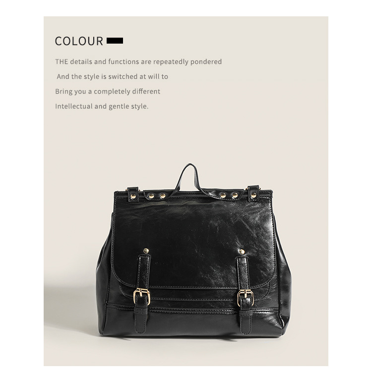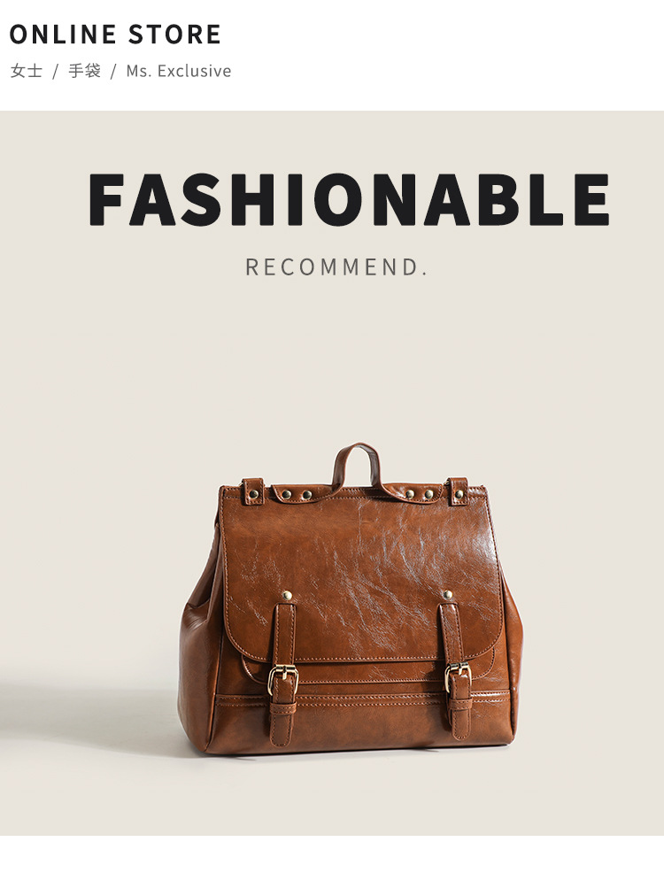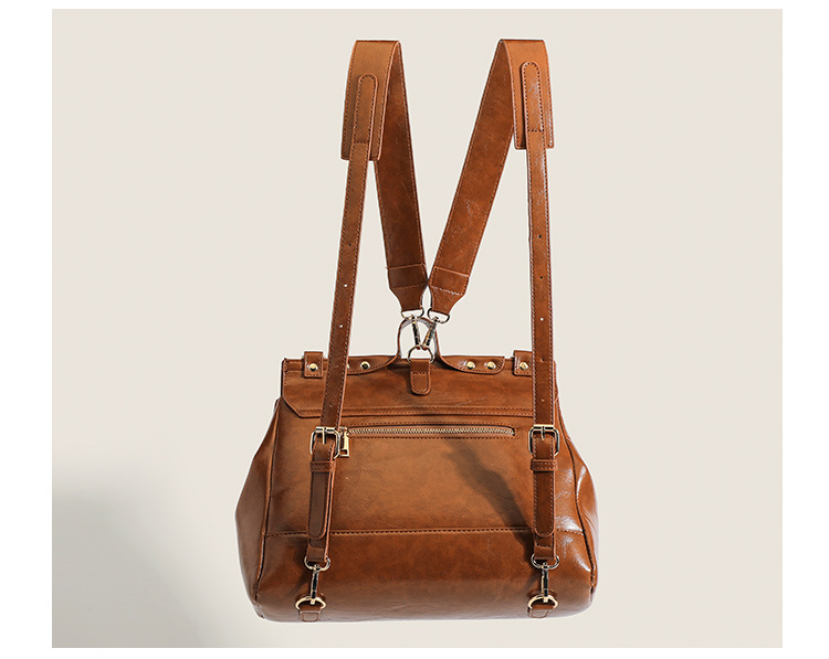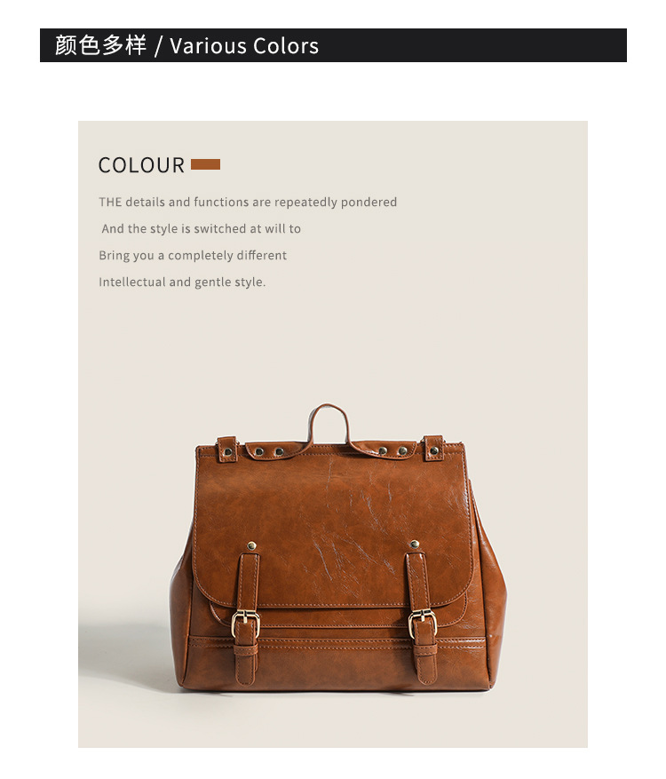 M-1002 小众文艺复工双肩斜挎邮差包高级感油蜡皮英伦学院风三用剑桥女包