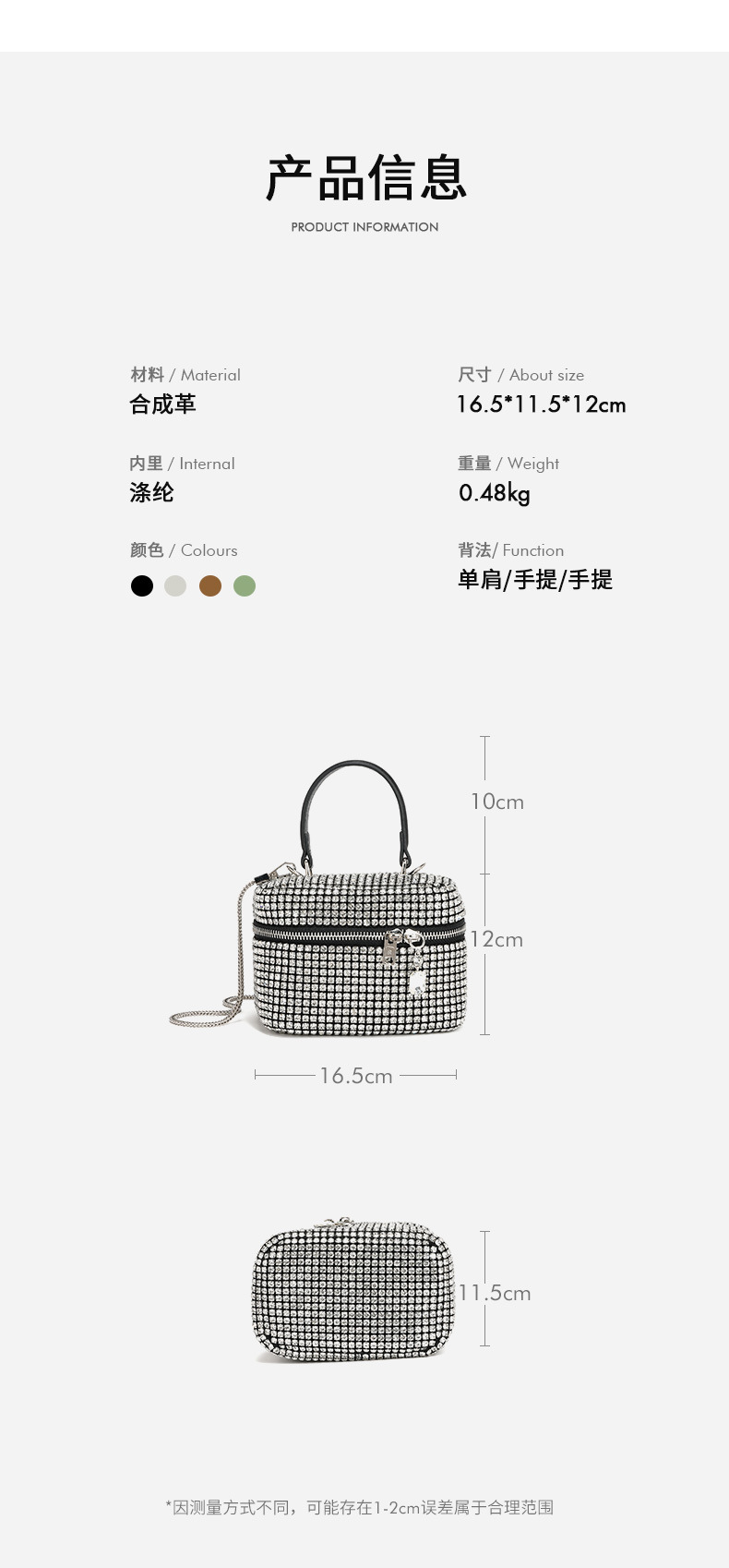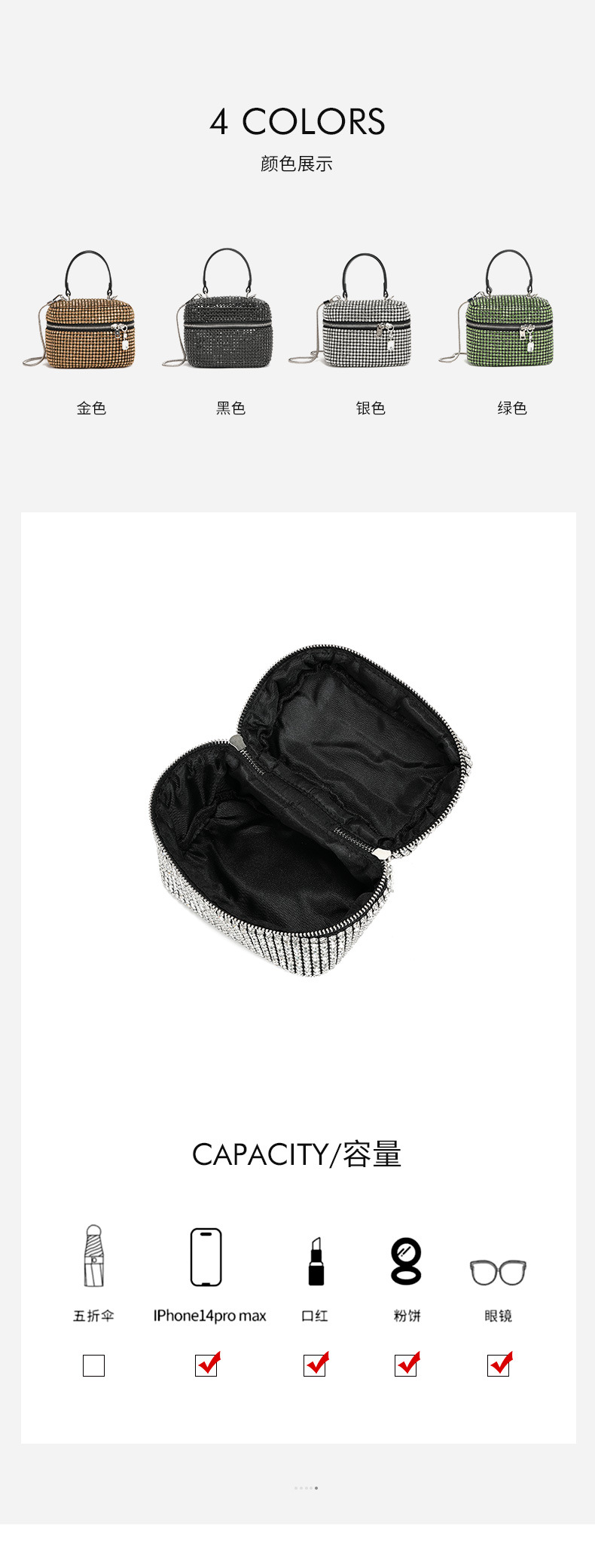 M-1004 水钻女包包2024年春季新款满闪钻洋气链条化妆包斜挎包小众手提包