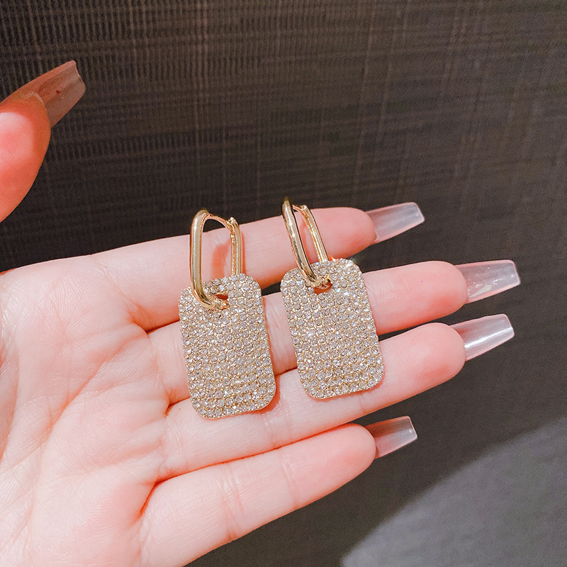 JME-582 欧美夸张几何形满钻耳环女ins潮超闪精致网红同款时尚大气潮耳饰