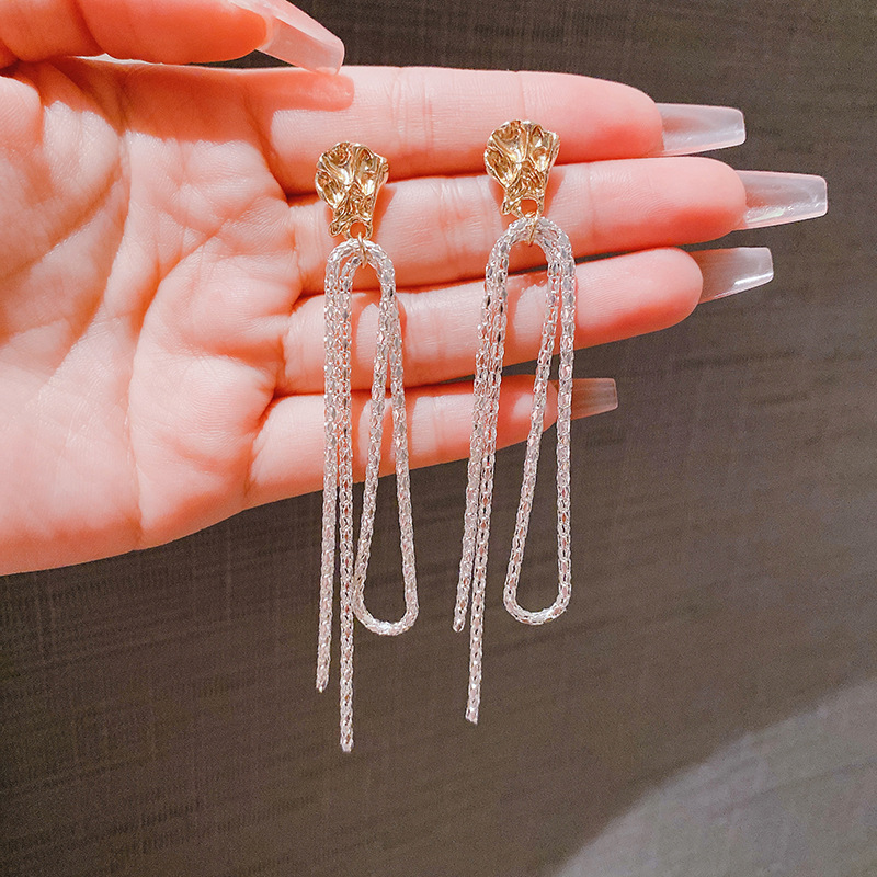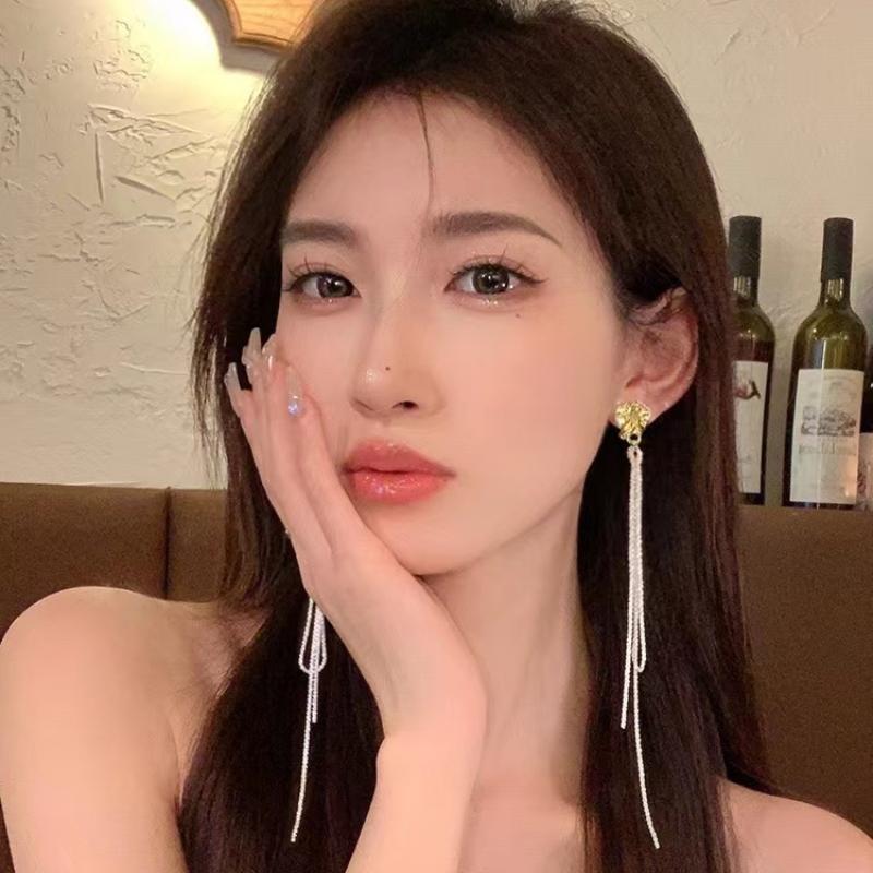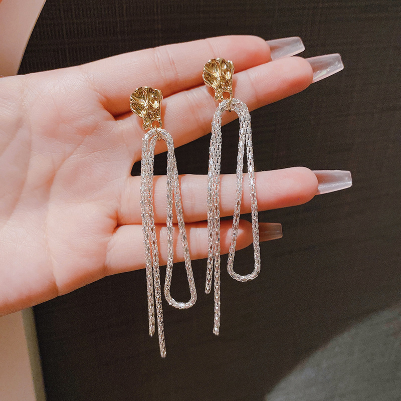 JME-584 925银针韩国复古典雅森系耳环几何波光粼粼长款耳坠冷淡风耳饰女