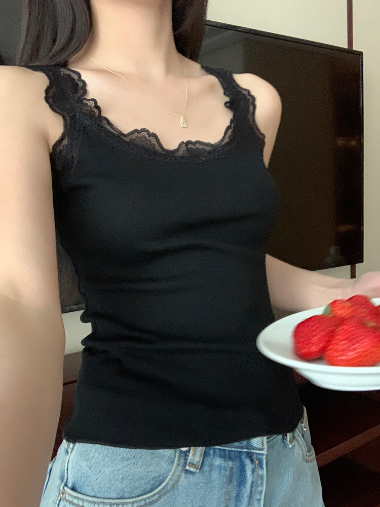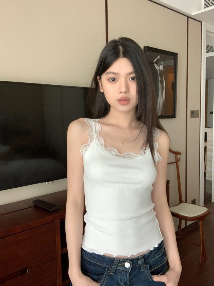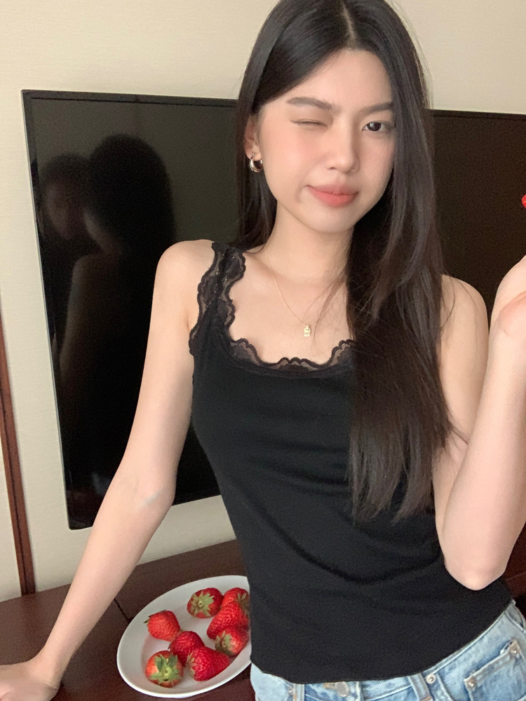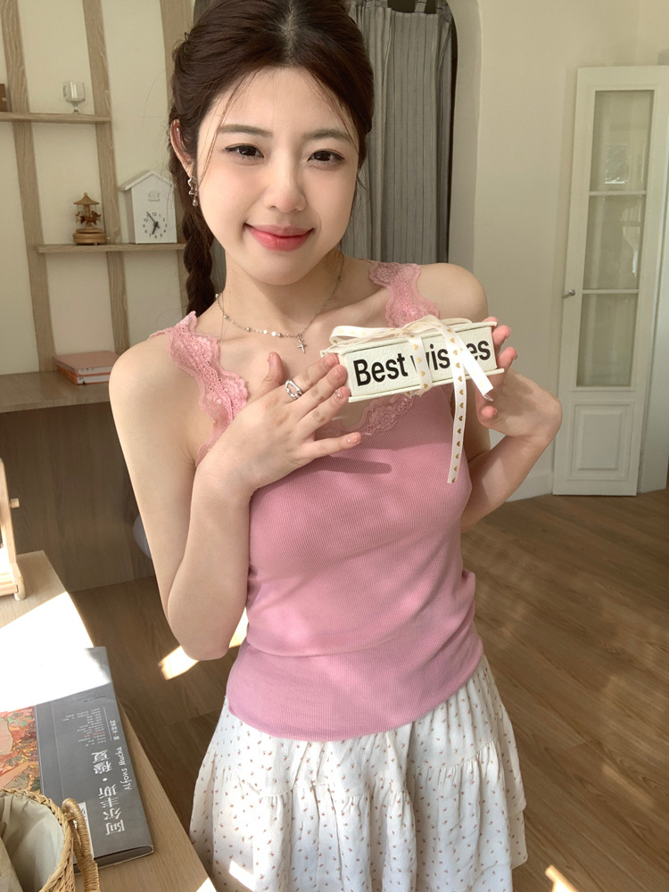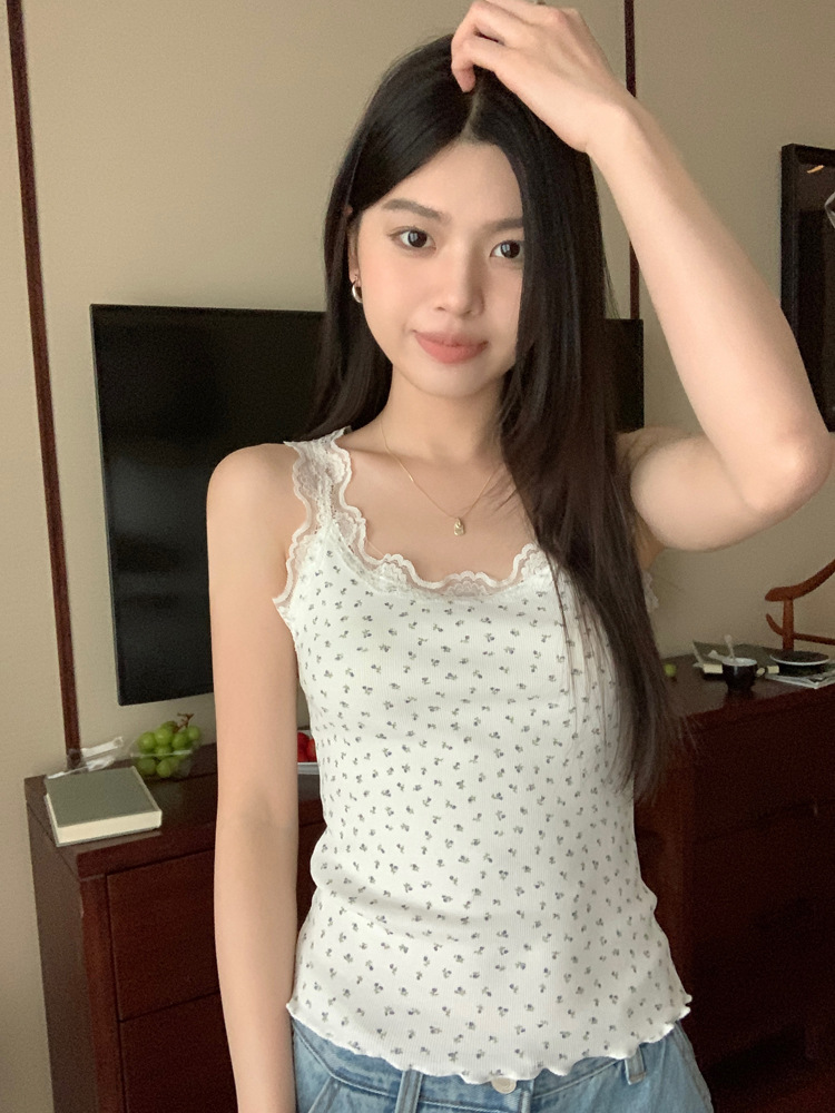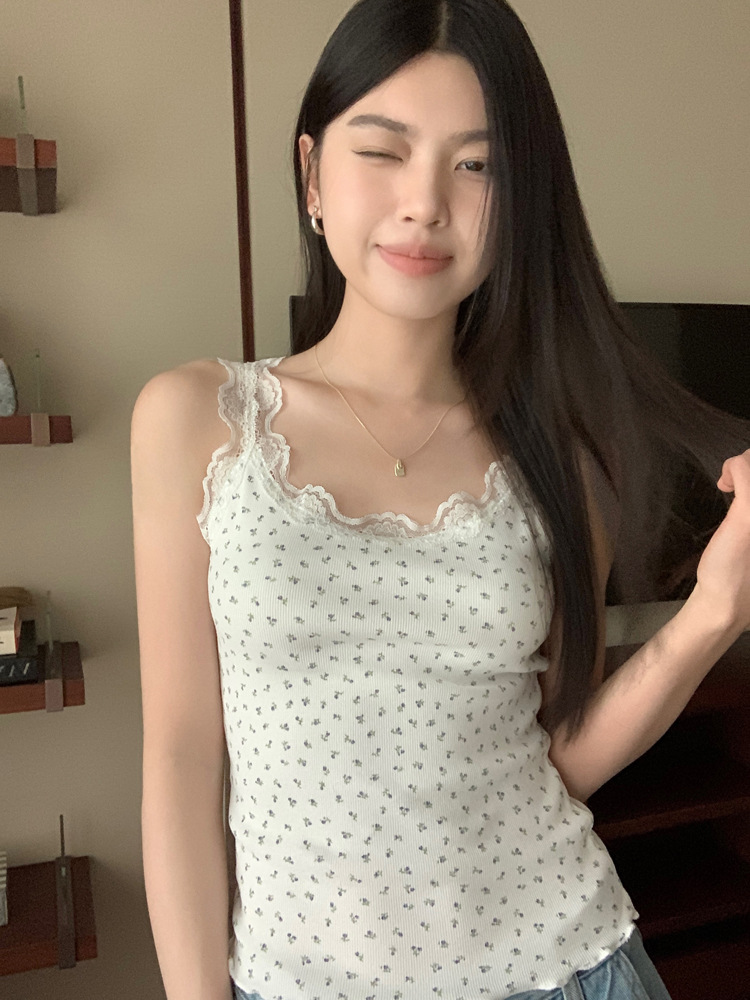 JMA-615 实拍 甜辣纯欲系蕾丝花边碎花吊带背心夏季甜美修身内搭外穿上衣
