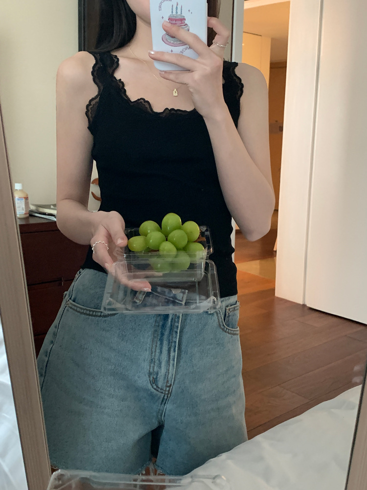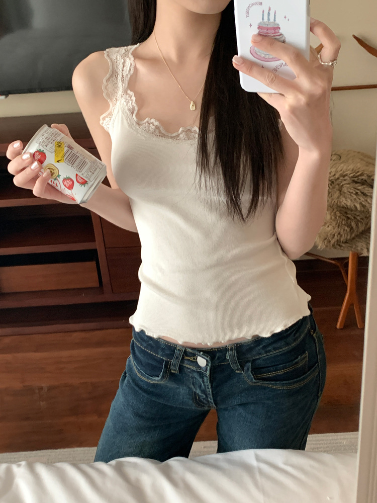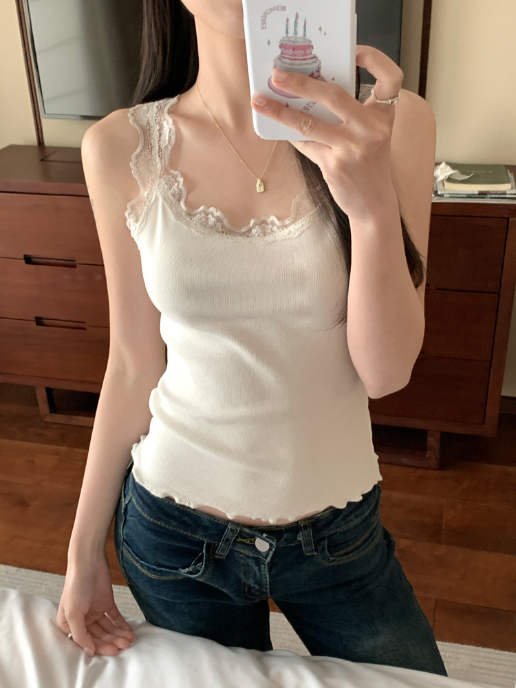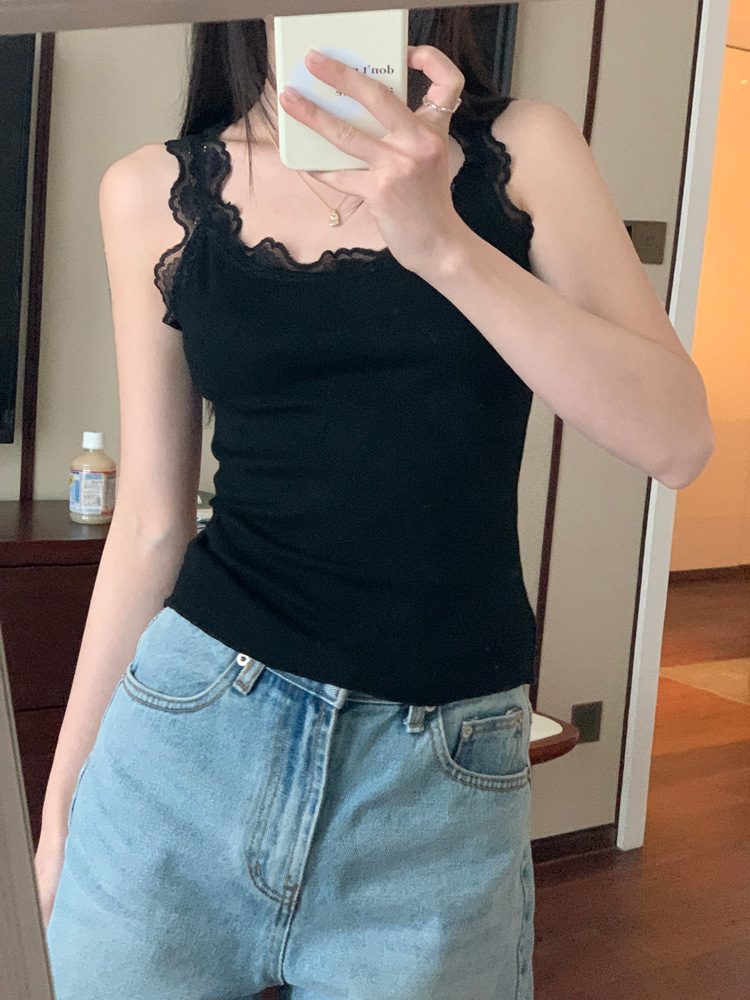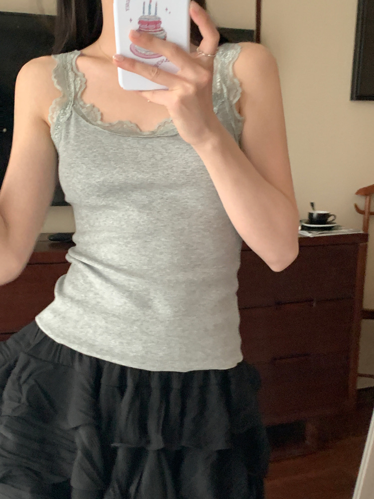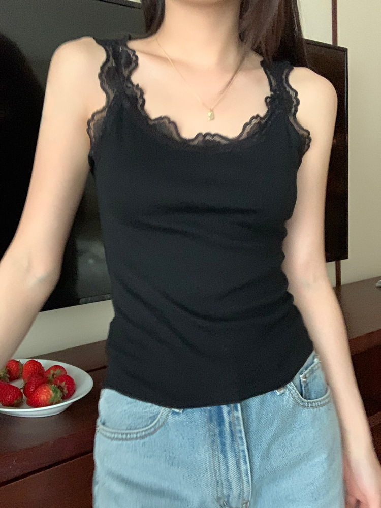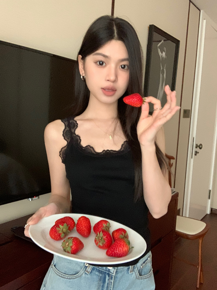 JMA-615 实拍 甜辣纯欲系蕾丝花边碎花吊带背心夏季甜美修身内搭外穿上衣