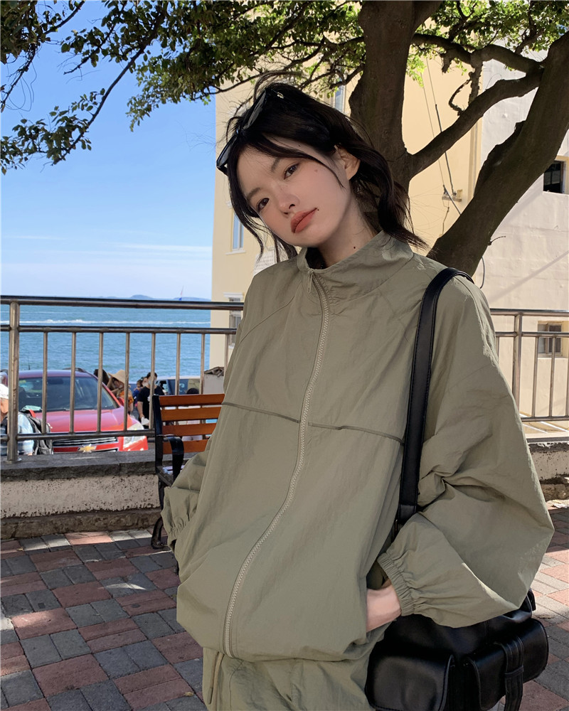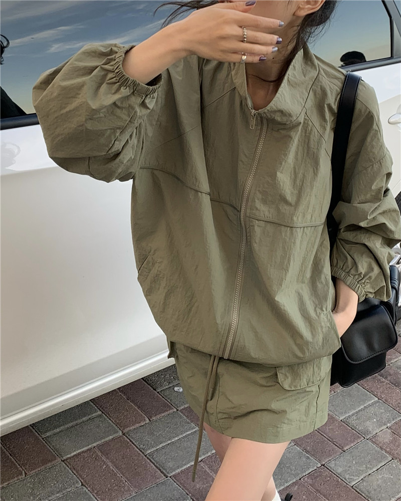 • 將圖片載入圖庫檢視器 JMA-617 实拍 绿色薄款宽松立领防晒冲锋衣外套女春夏季工装半身裙两件套