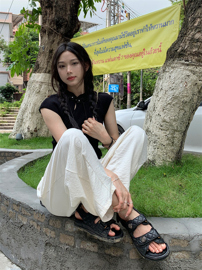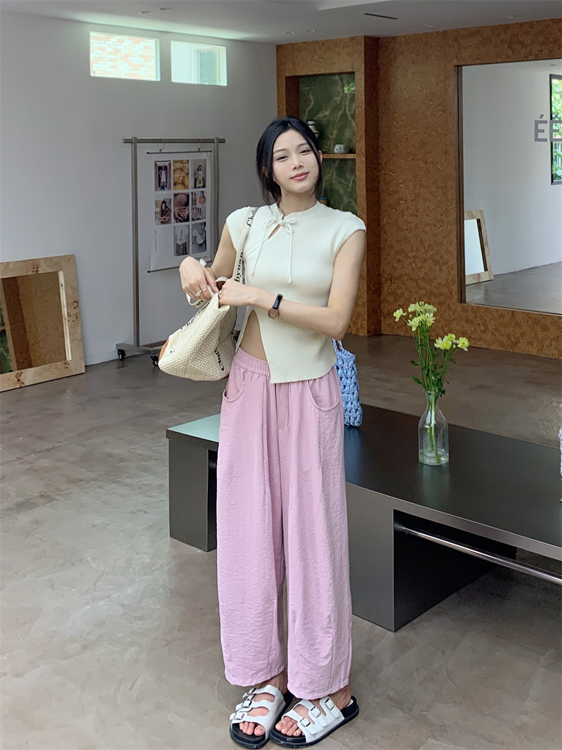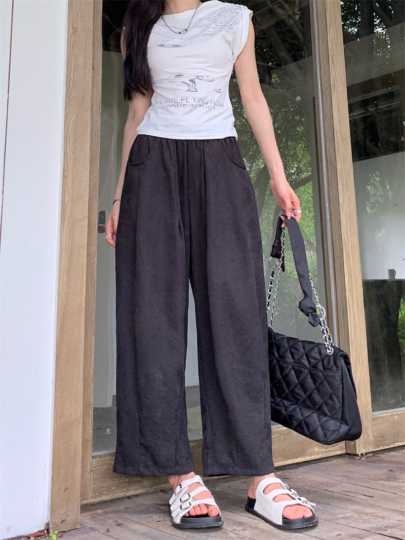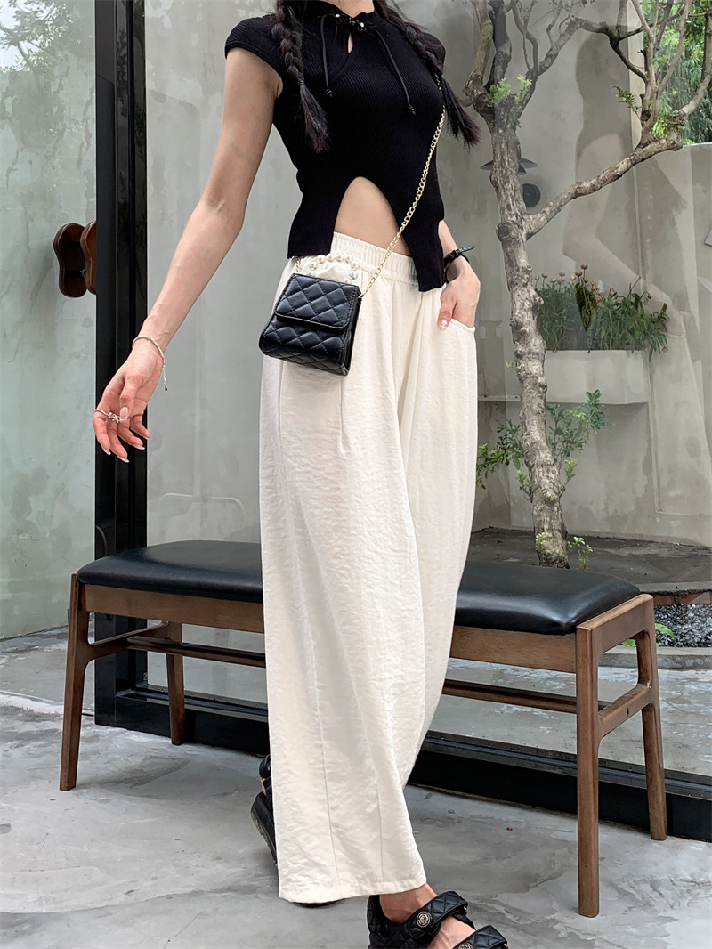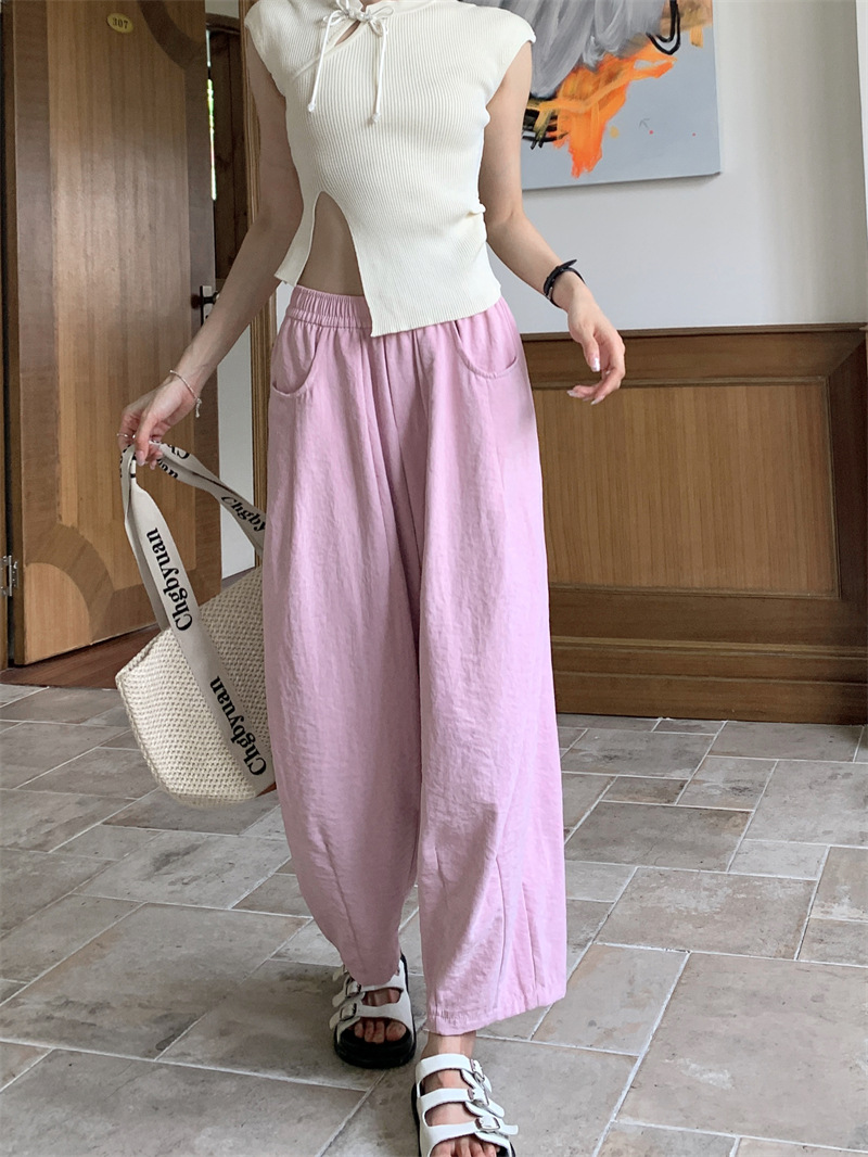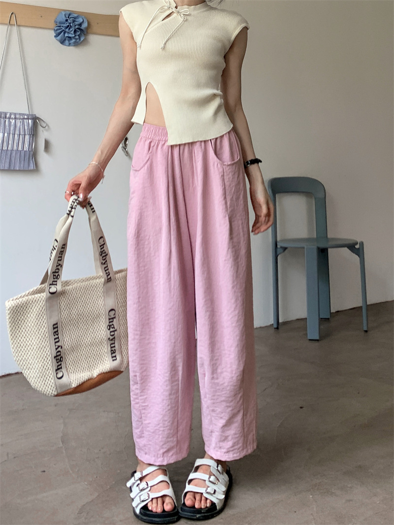 JMA-620 实拍 慵懒夏日2.0松紧腰防晒凉凉奶芙裤女夏九分裤阔腿裤百搭显瘦