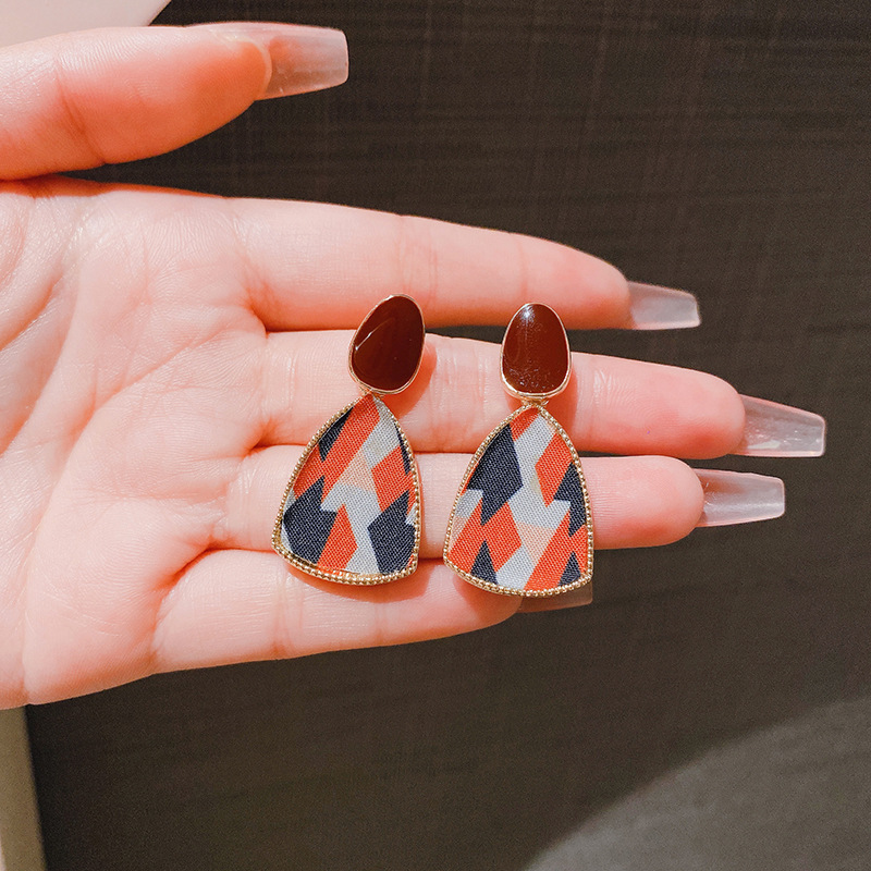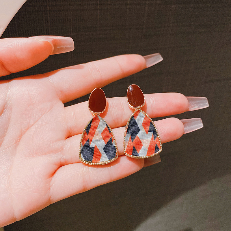 JME-593 S925银针几何彩色潮流油画风耳环复古港风酒红色气质小众耳坠耳饰