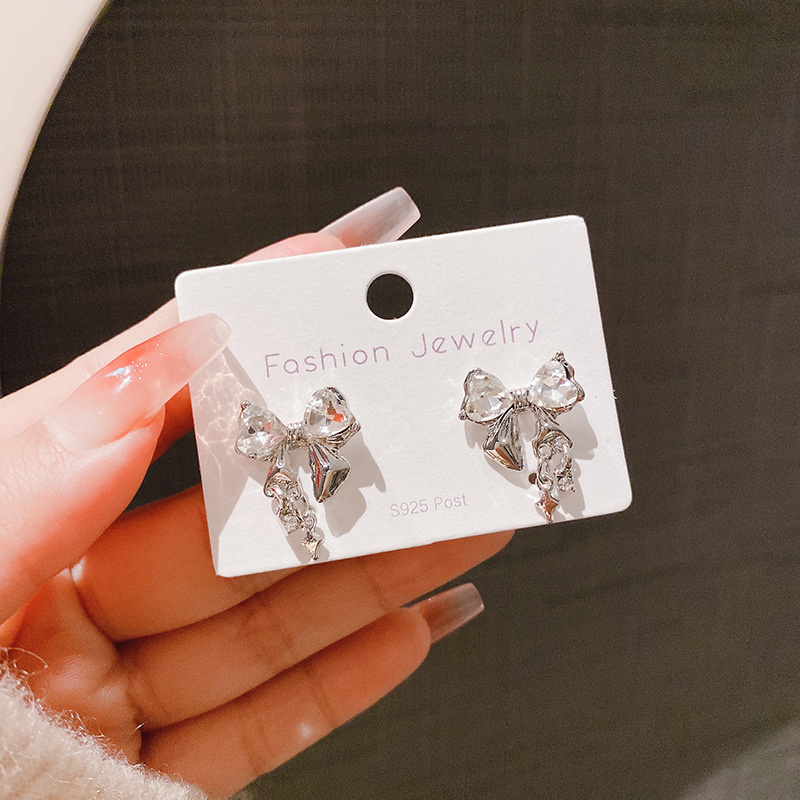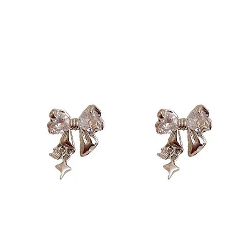 JME-594 星光璀璨蝴蝶结锆石耳钉女小众设计感高级耳饰时尚气质网红耳环女