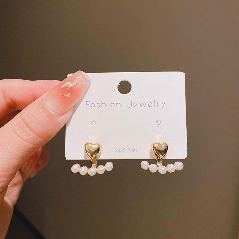 JME-595 韩版耳钉一款两戴爱心珍珠耳钉2023年新款潮时尚设计感气质耳环女