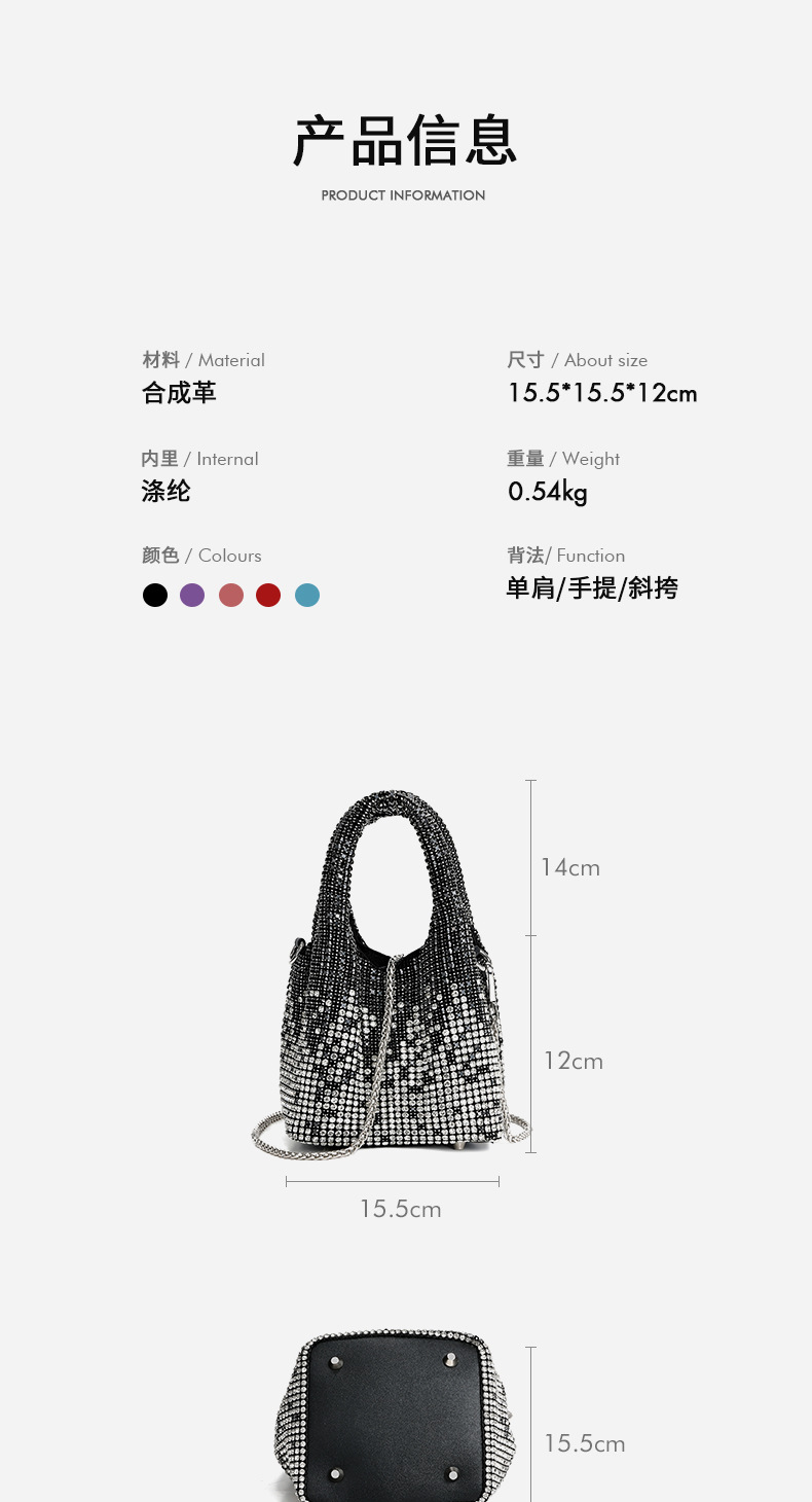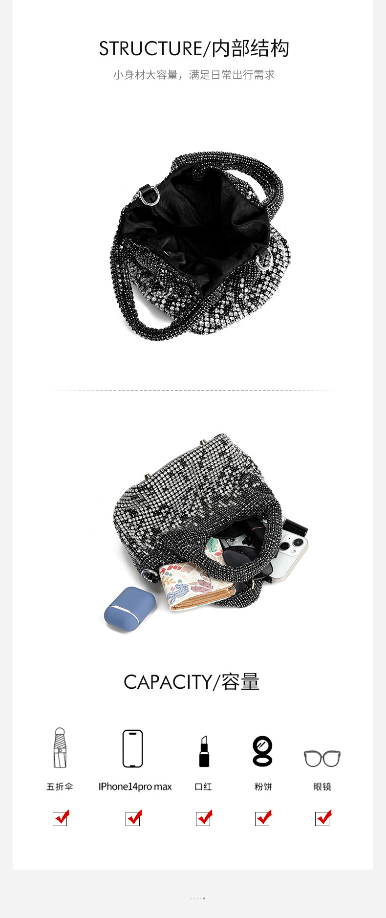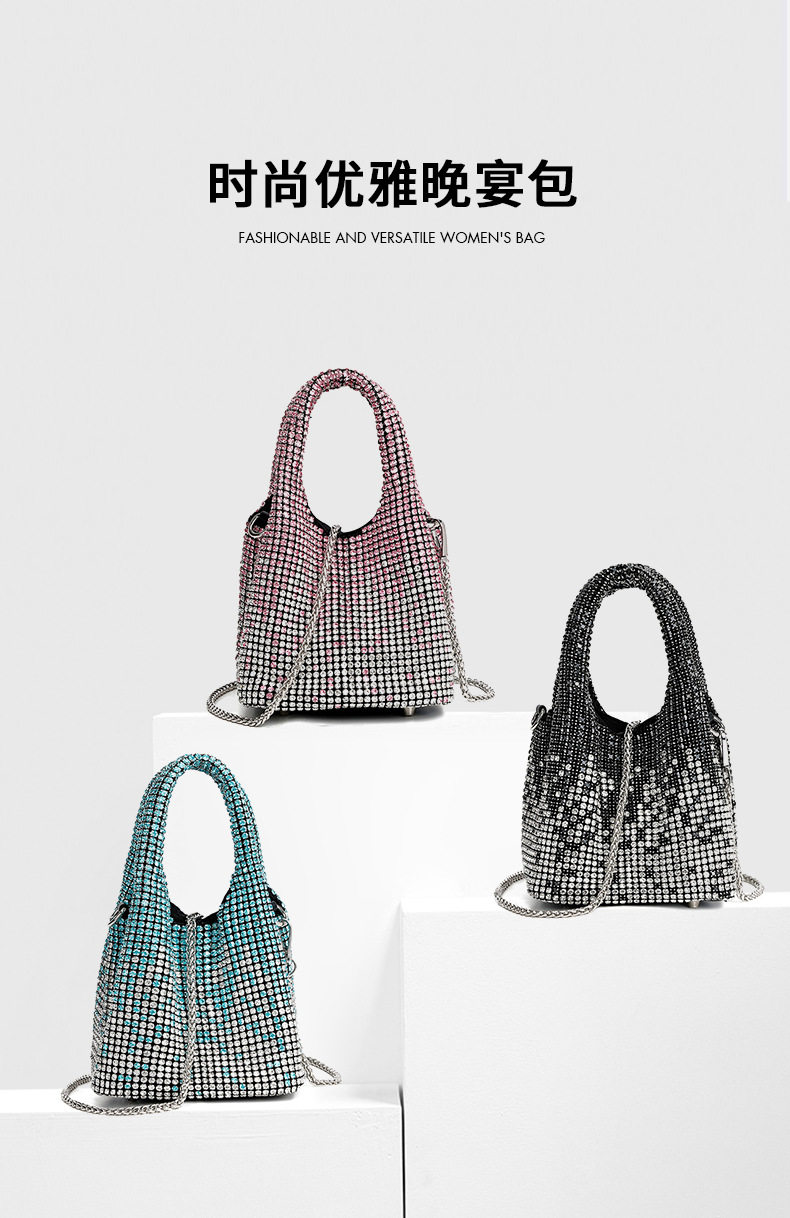 JM-1021 晚宴包新款满钻女士手提包烫钻水桶包2024单肩斜挎女包大王钻包