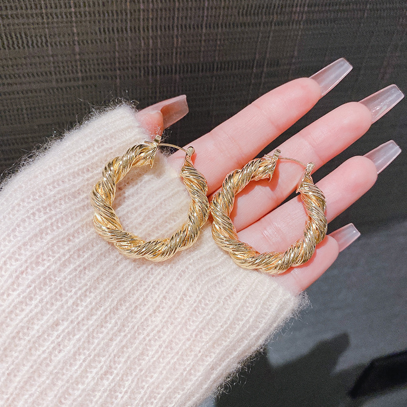 JME-610 欧美ins个性高级感耳环金色麻花耳圈中古风洋气C型耳圈女耳饰批发