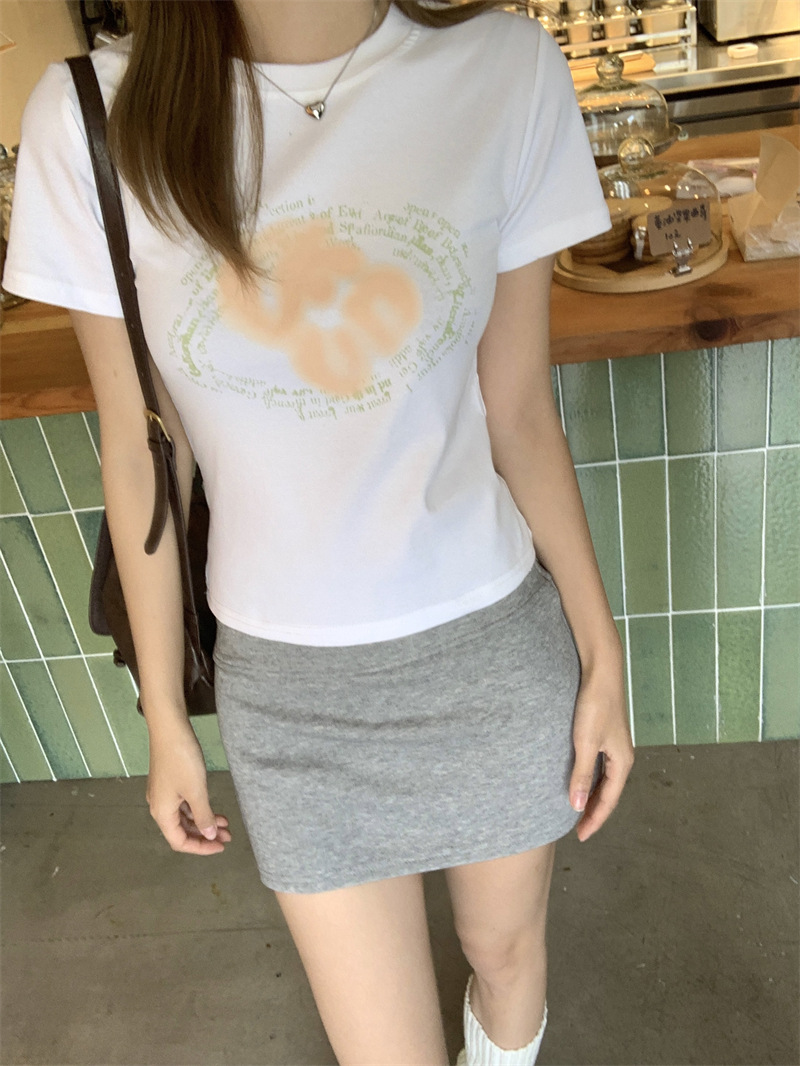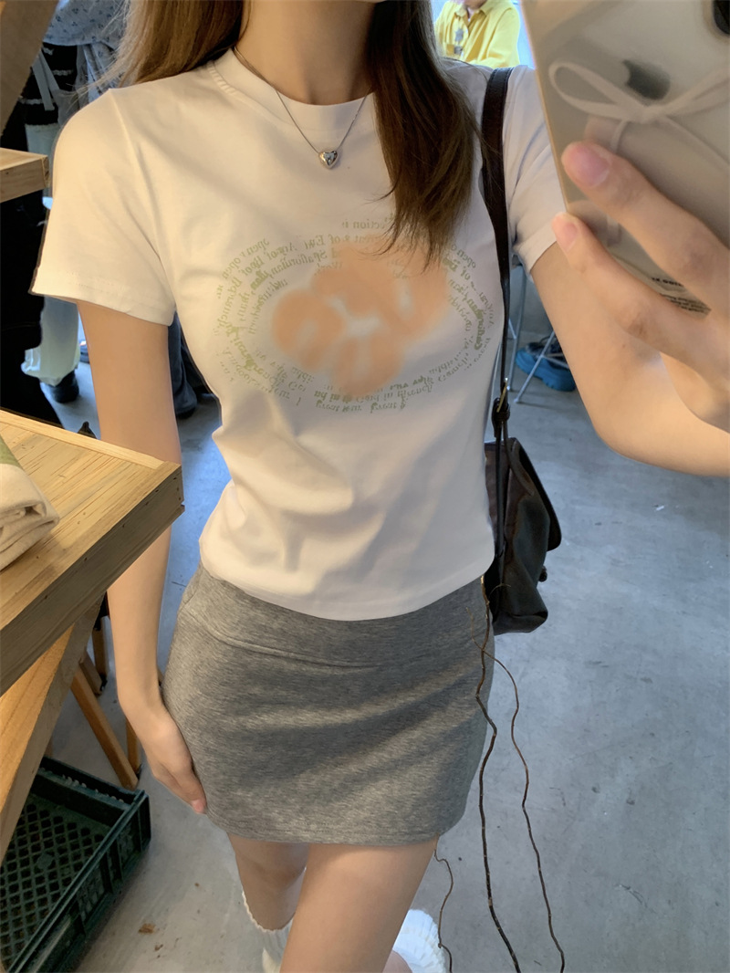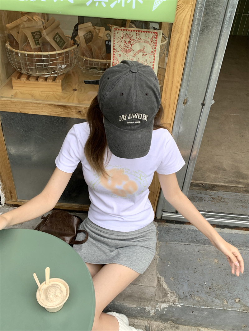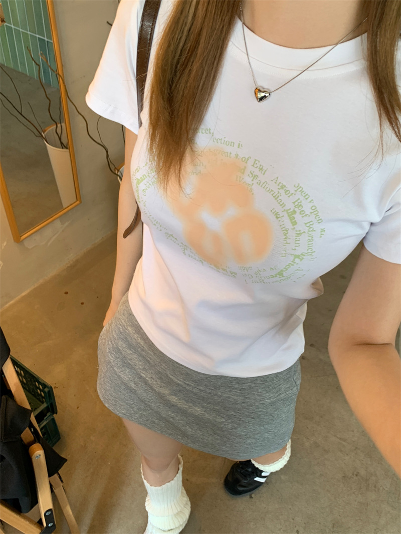 JMA-633 实拍 2024夏季新款韩系鬼马少女晕染印花小版型正肩短袖T恤上衣女