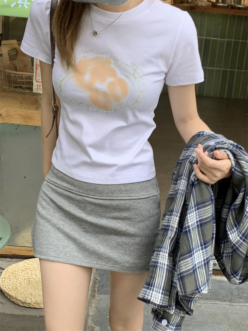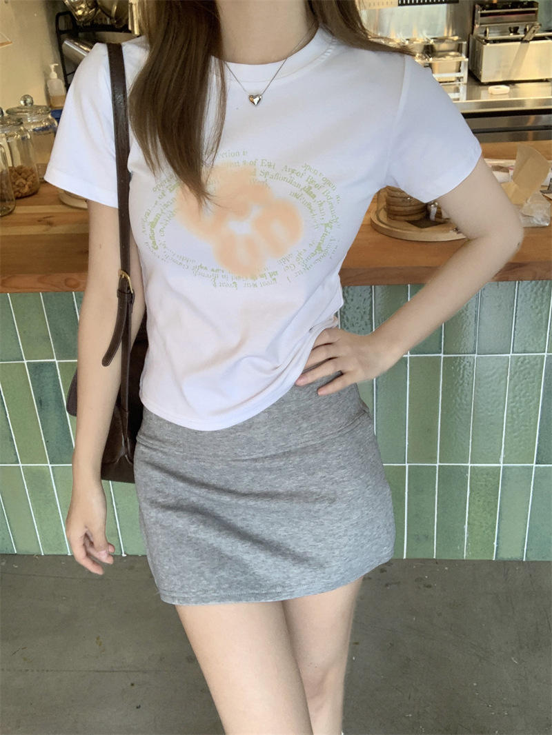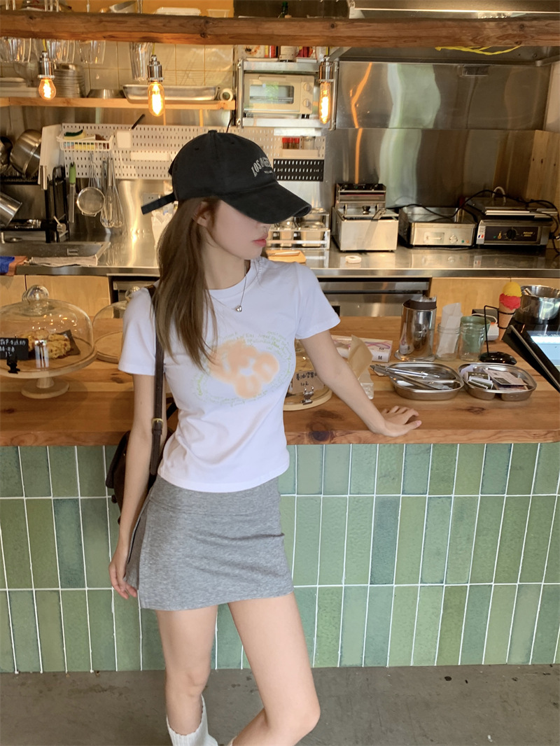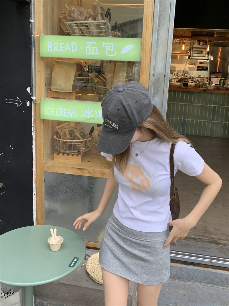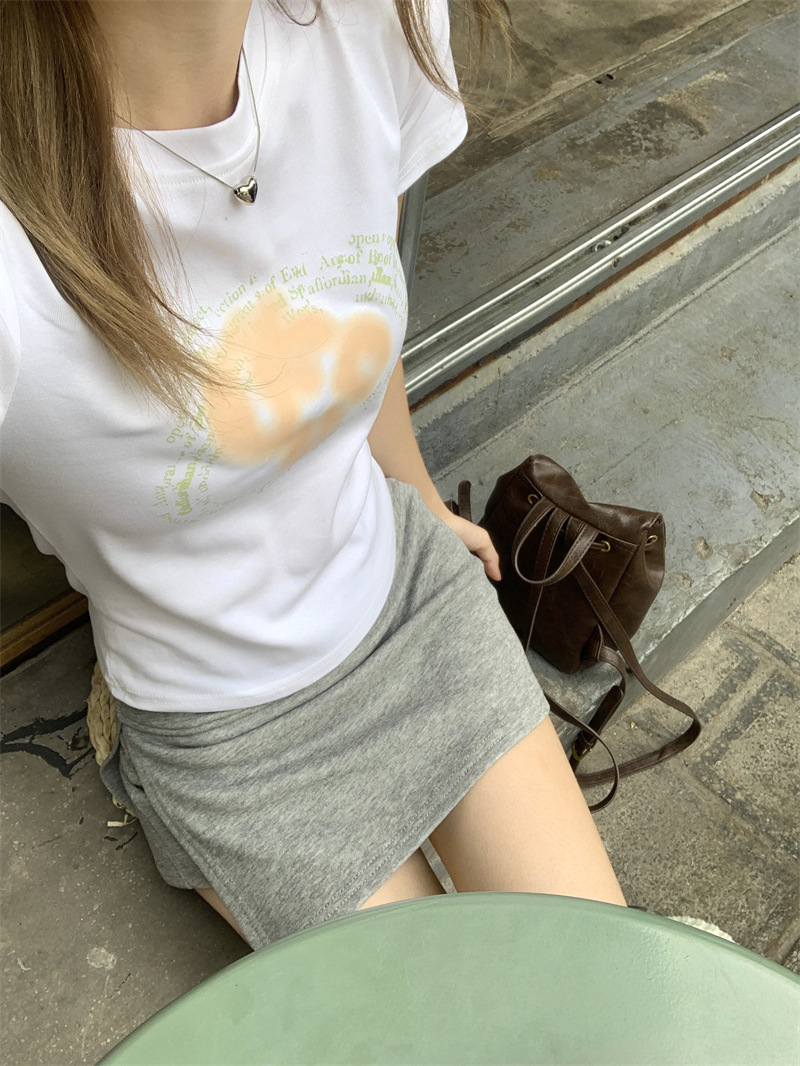 JMA-633 实拍 2024夏季新款韩系鬼马少女晕染印花小版型正肩短袖T恤上衣女
