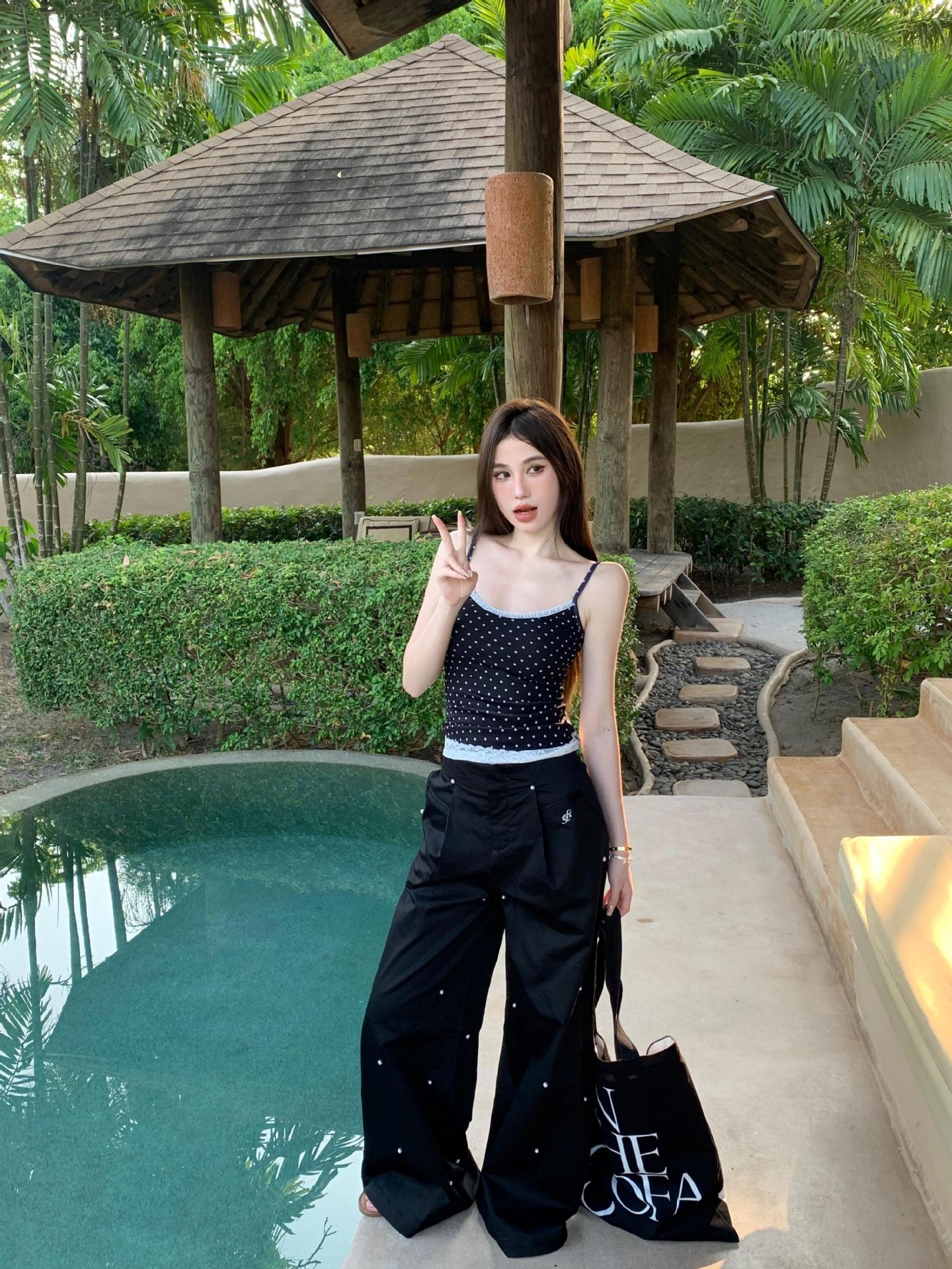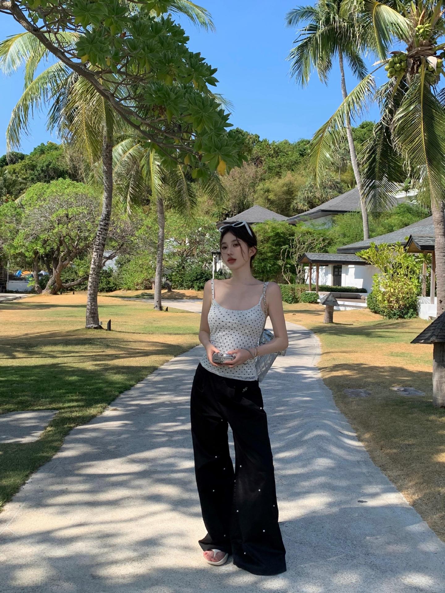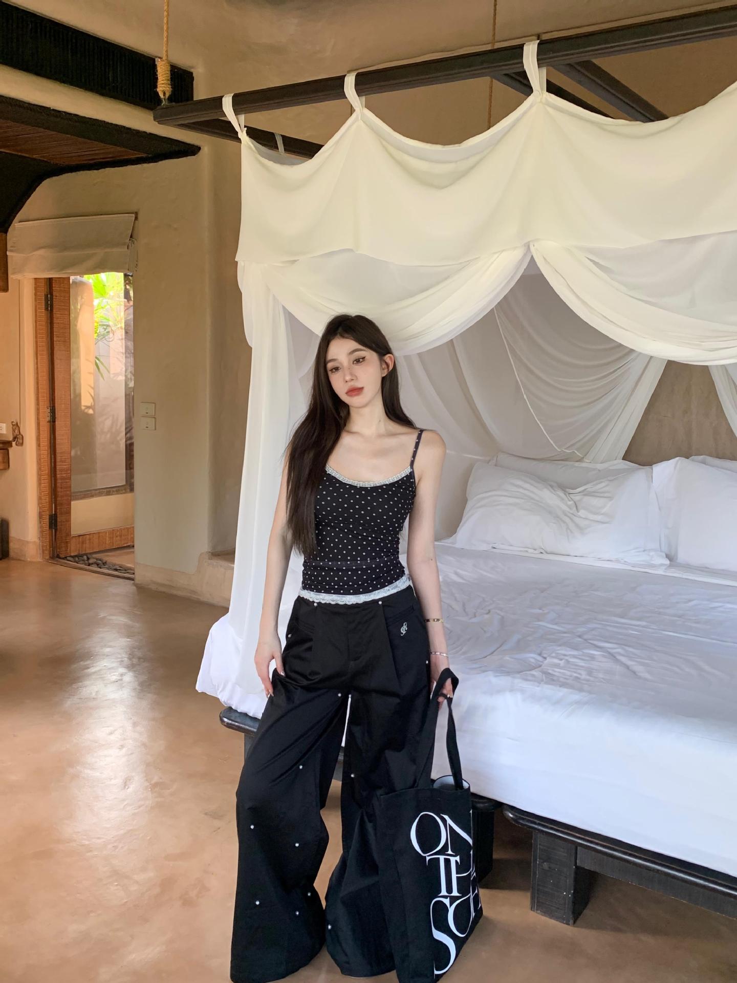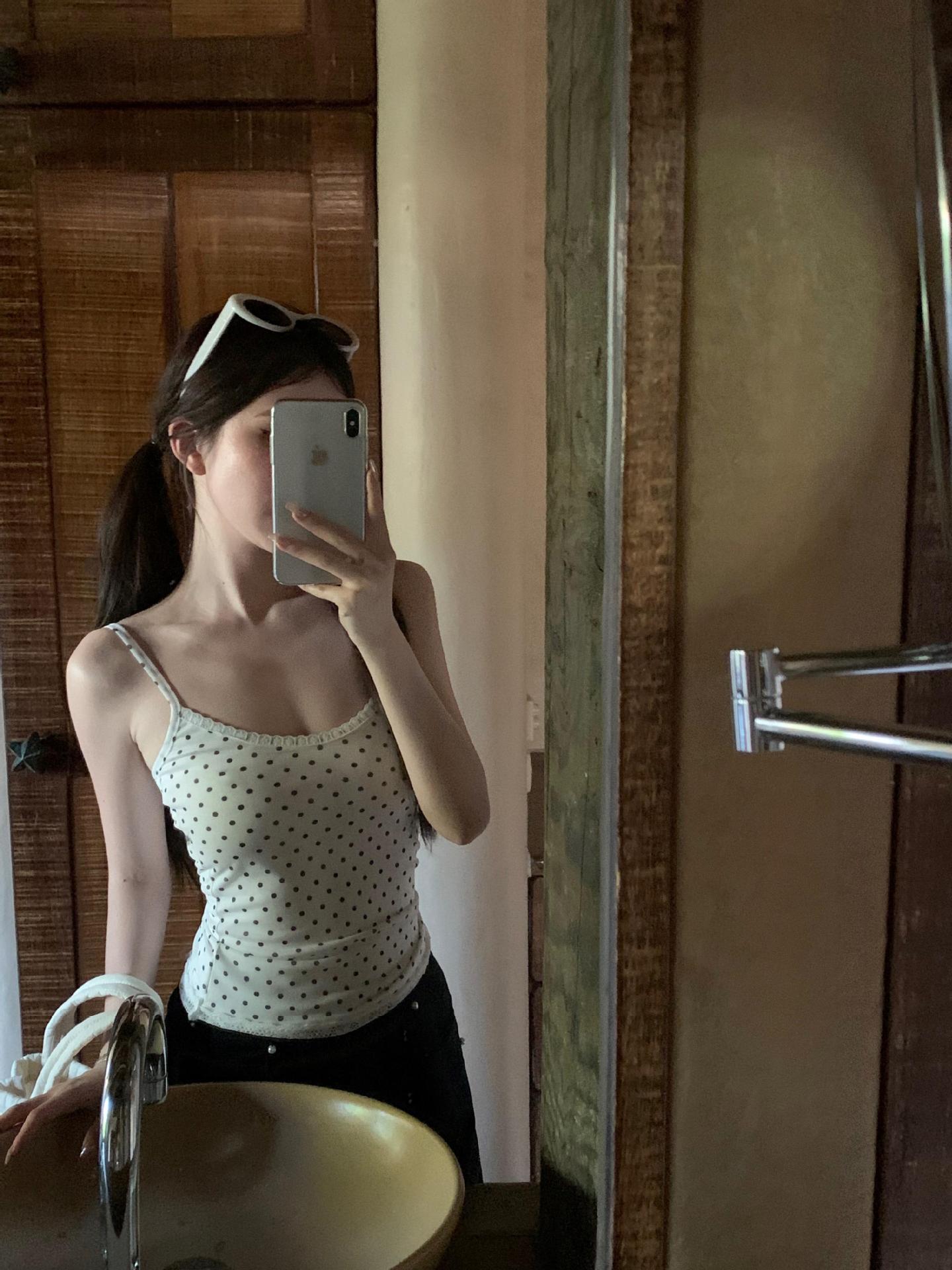 JMA-634 实拍甜辣风波点假两件蕾丝吊带衫女芭蕾风修身纯欲风打底内搭背心