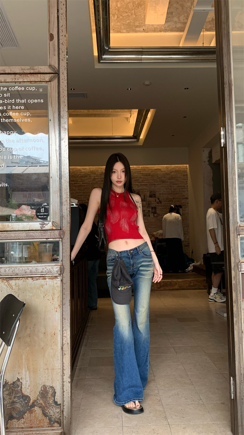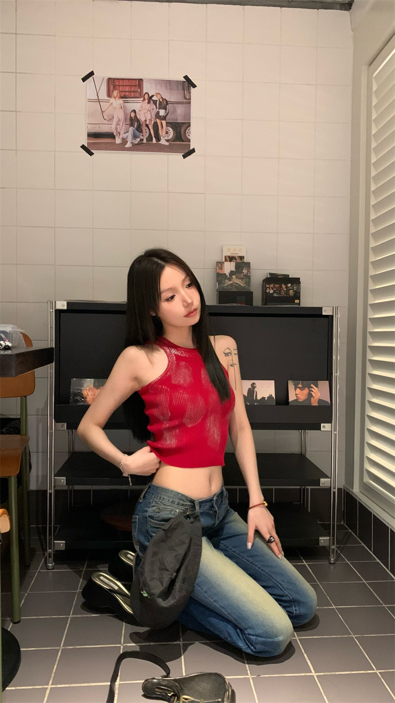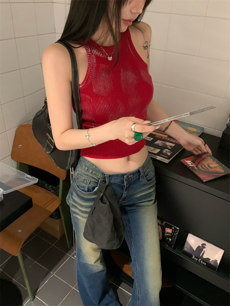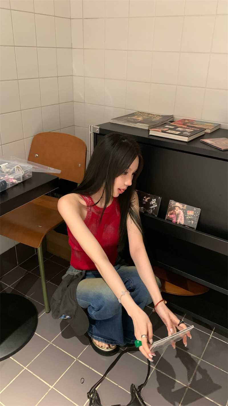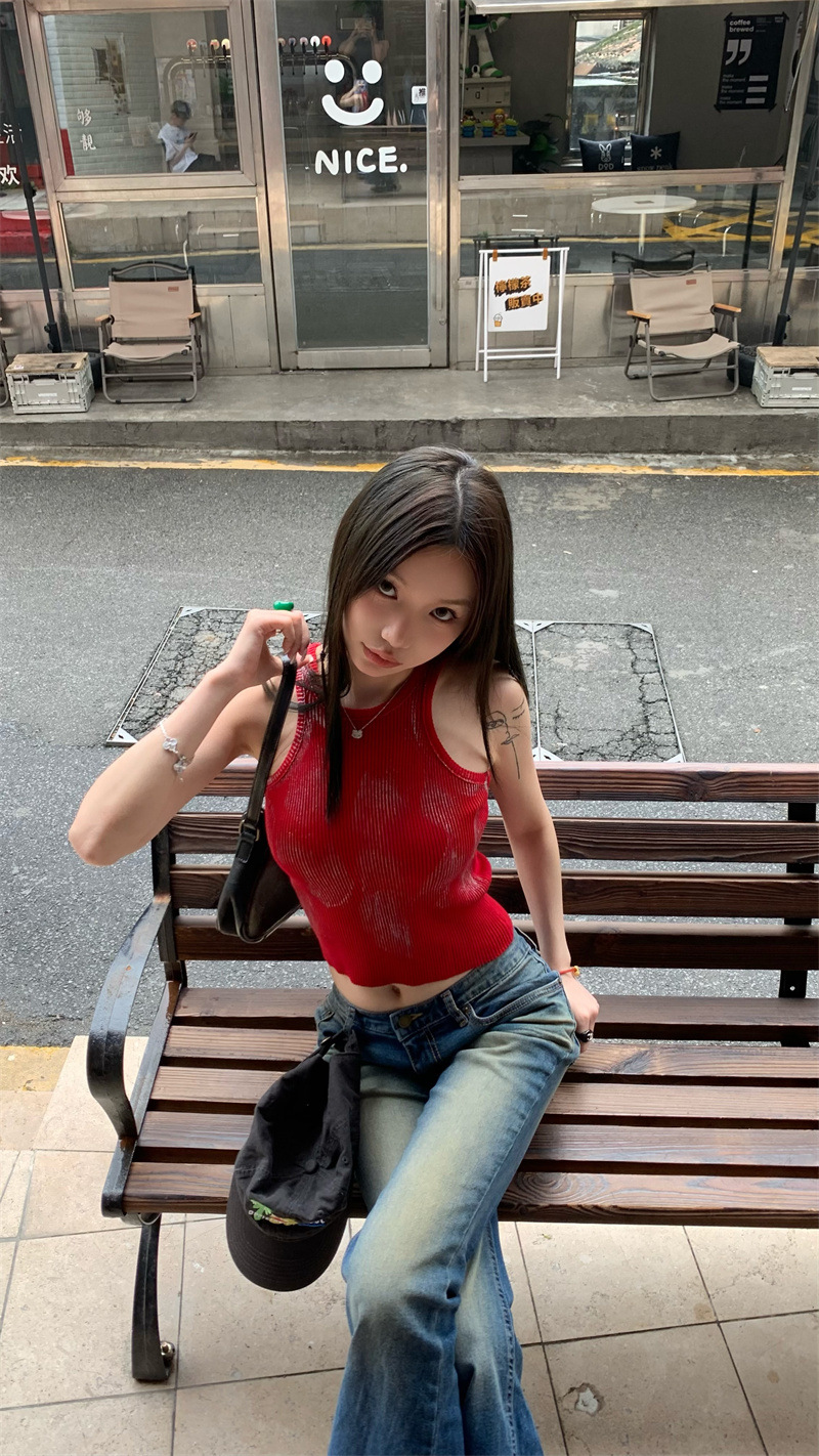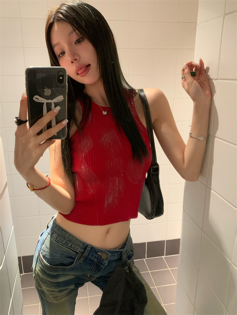 JMA-638 实拍 2024夏季新款韩版甜辣风百搭小众设计红色扎染显瘦针织背心