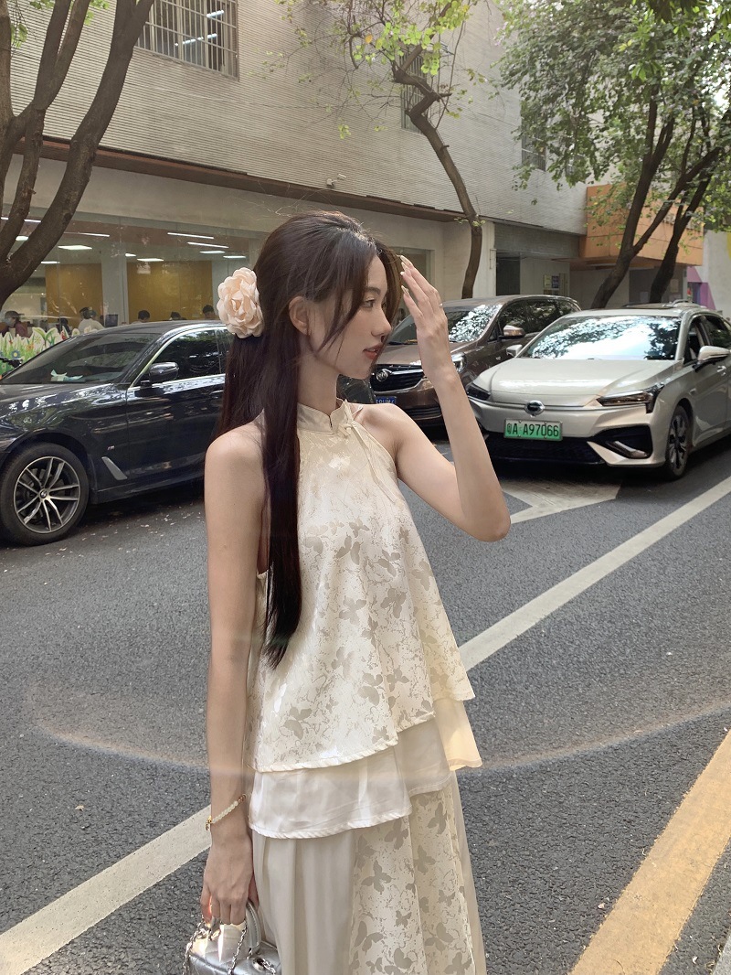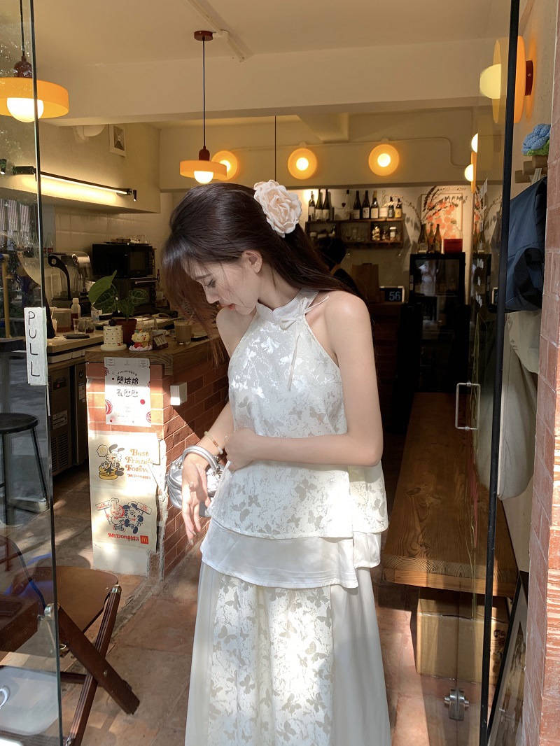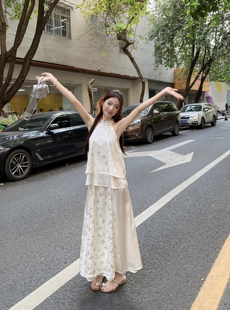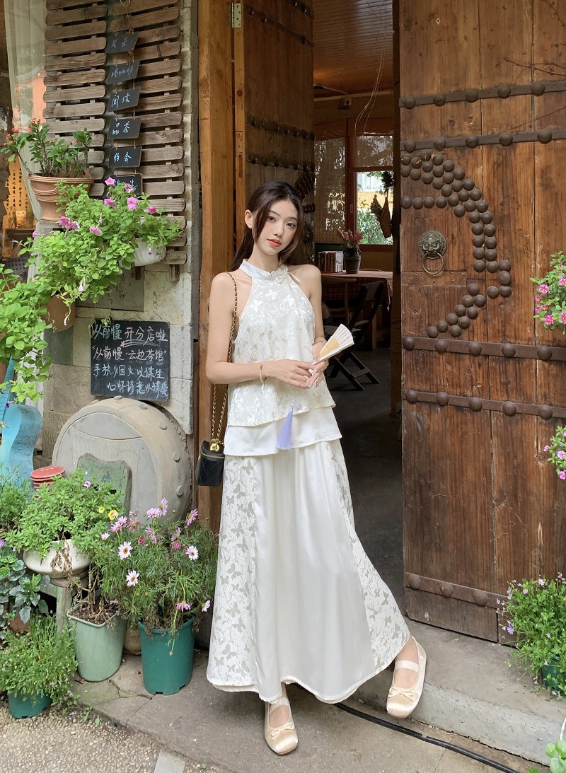 JMA-640 实拍 2024夏季国风新中式蝴蝶印花小衫上衣+半身裙长裙两件套装女