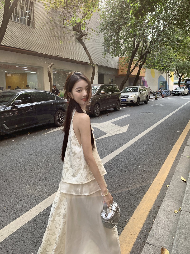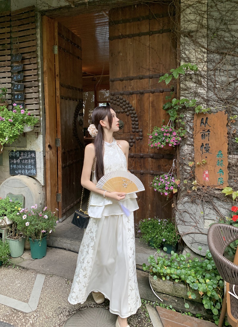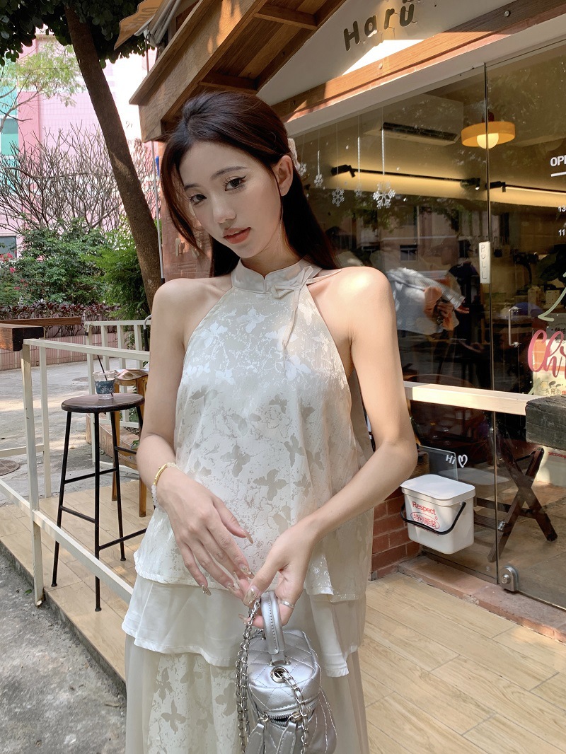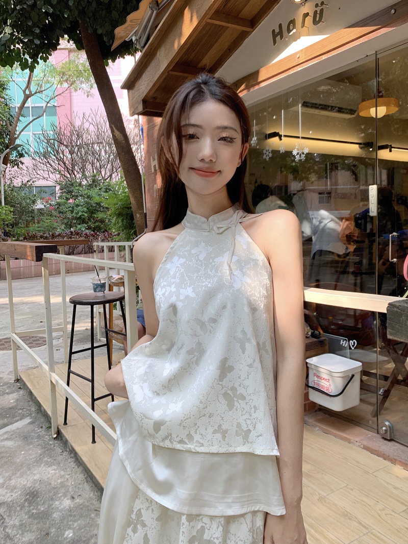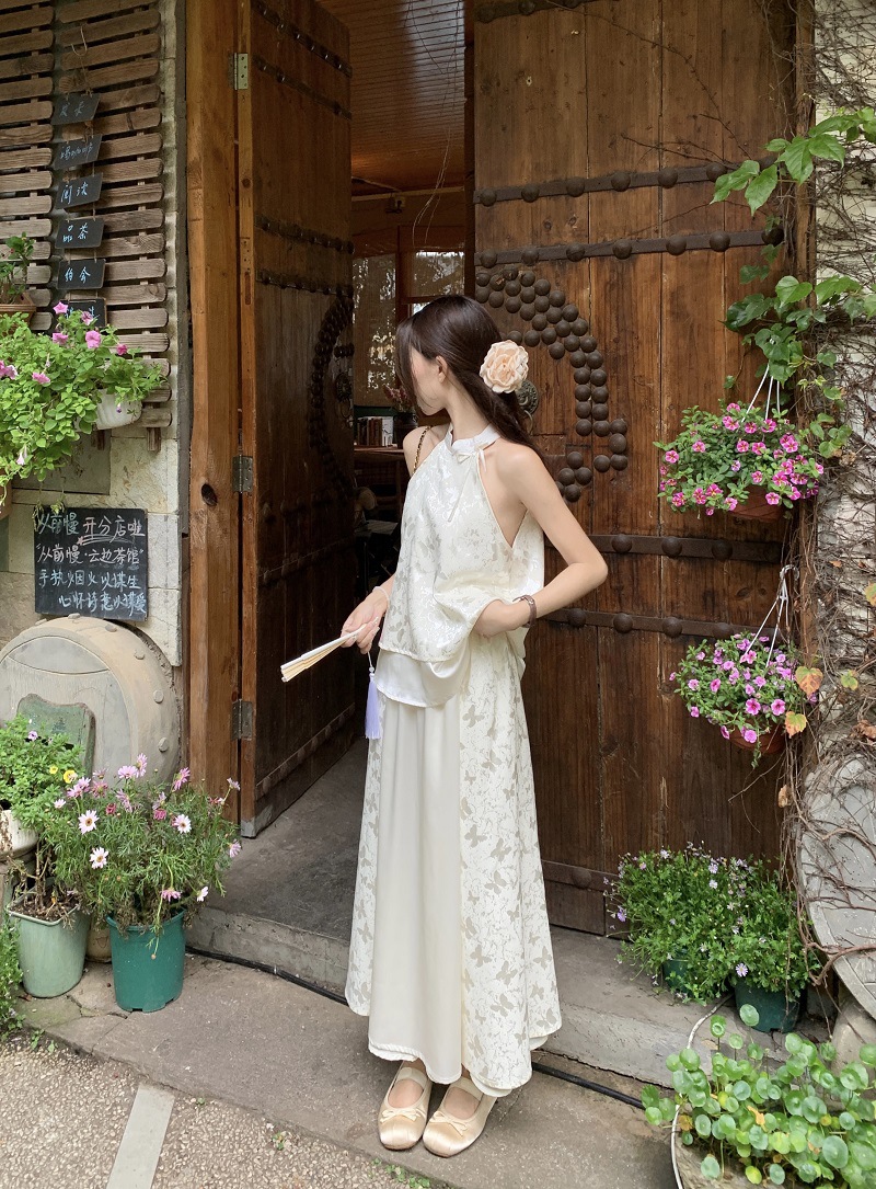 JMA-640 实拍 2024夏季国风新中式蝴蝶印花小衫上衣+半身裙长裙两件套装女