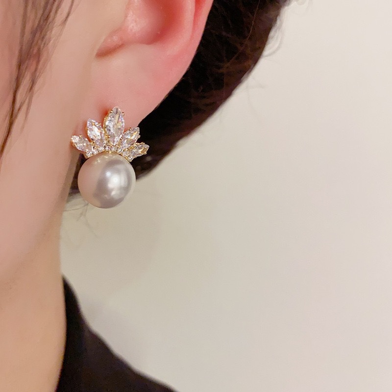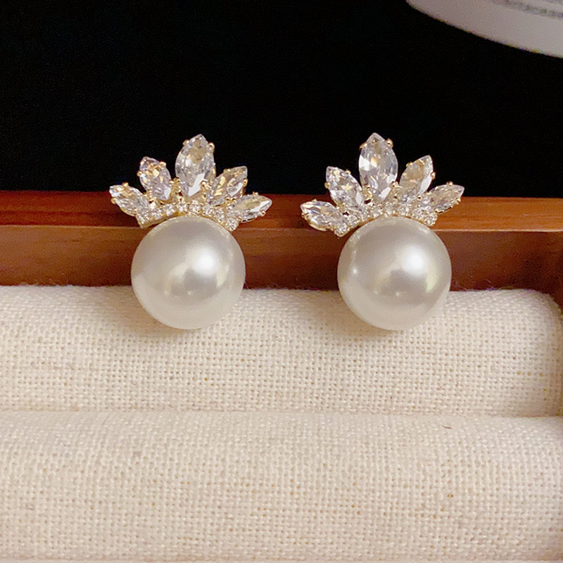 JME-612 奢华高级气质珍珠满钻小皇冠耳钉小众时尚精致名媛风百搭耳饰批发