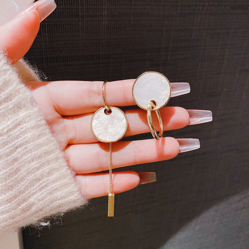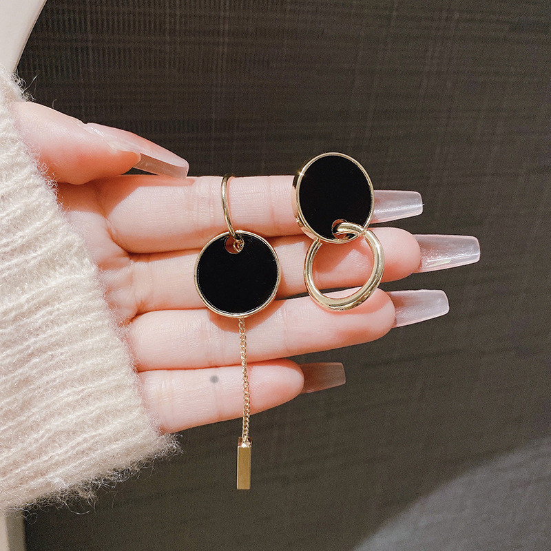 JME-619 2023新品潮几何圆形不对称流苏耳环小众设计高级感耳钉简约耳饰品