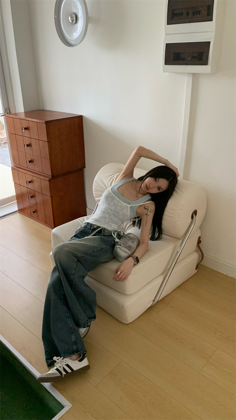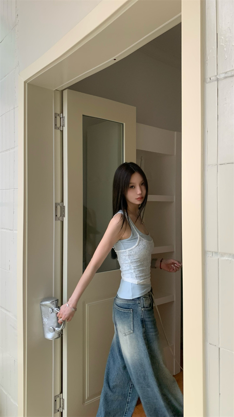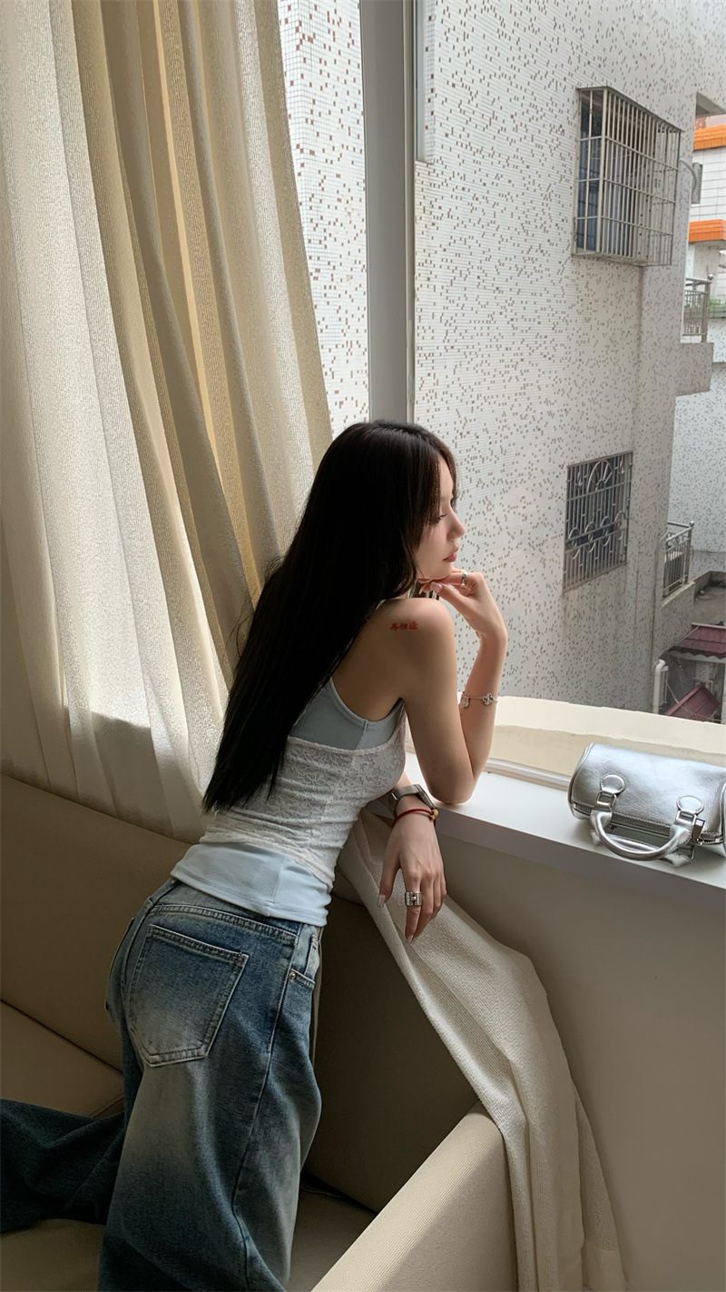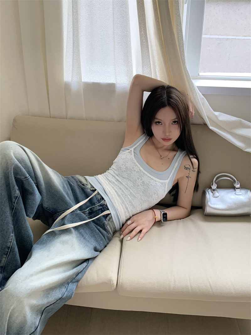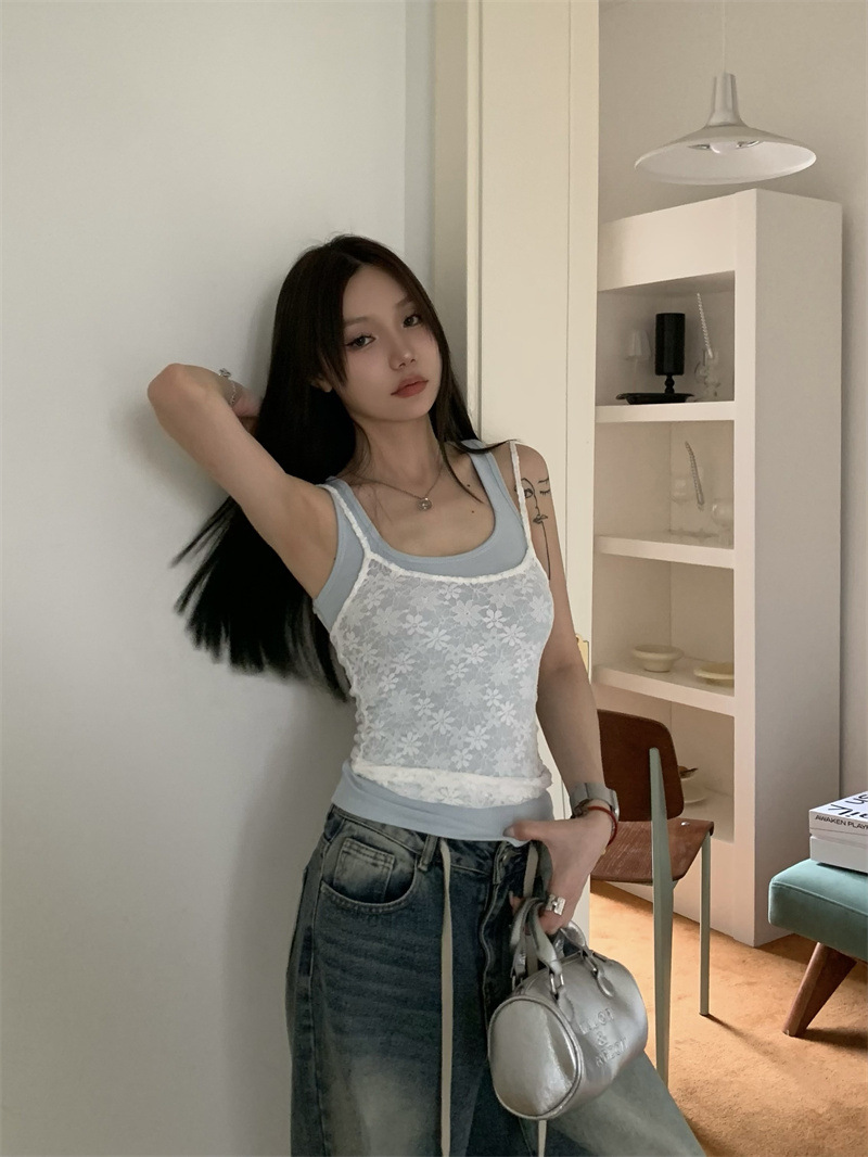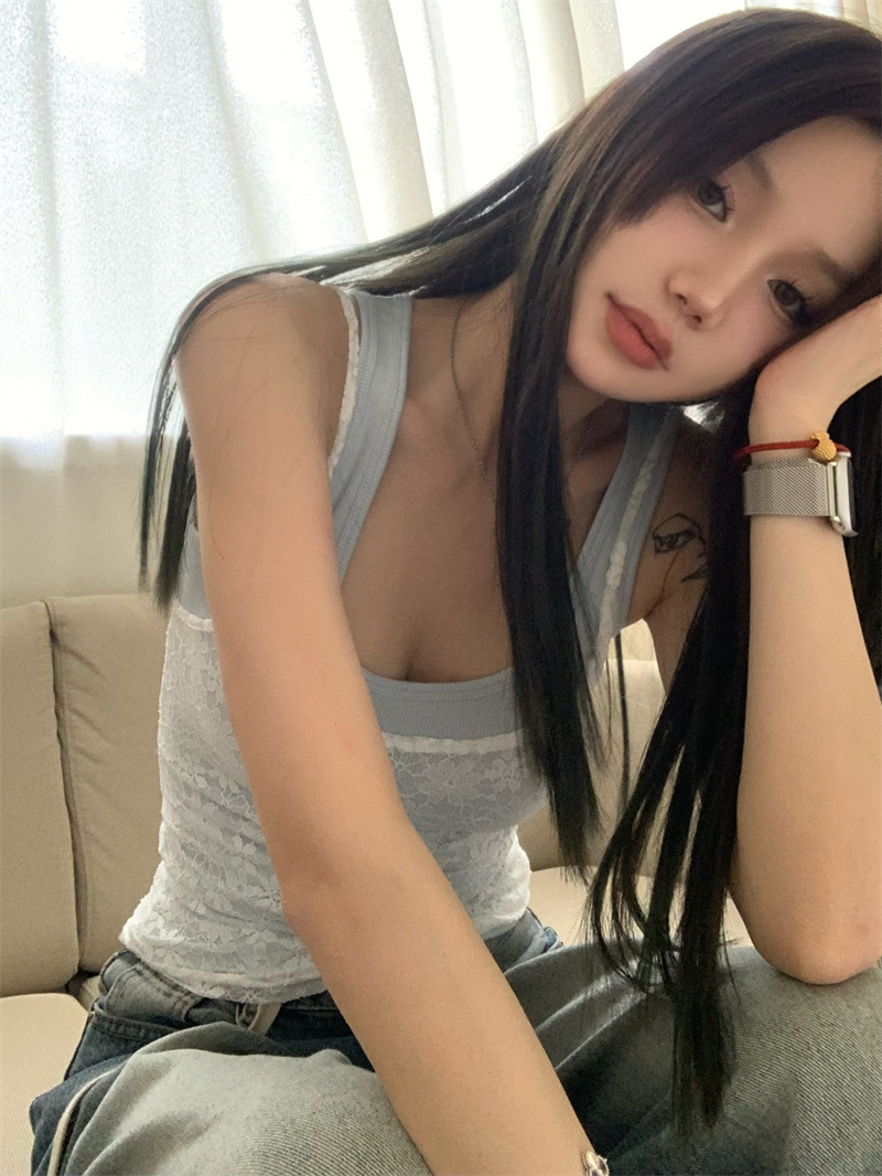 JMA-649 实拍 夏季泰式辣妹小众设计甜辣蕾丝吊带两色背心套装叠穿两件套