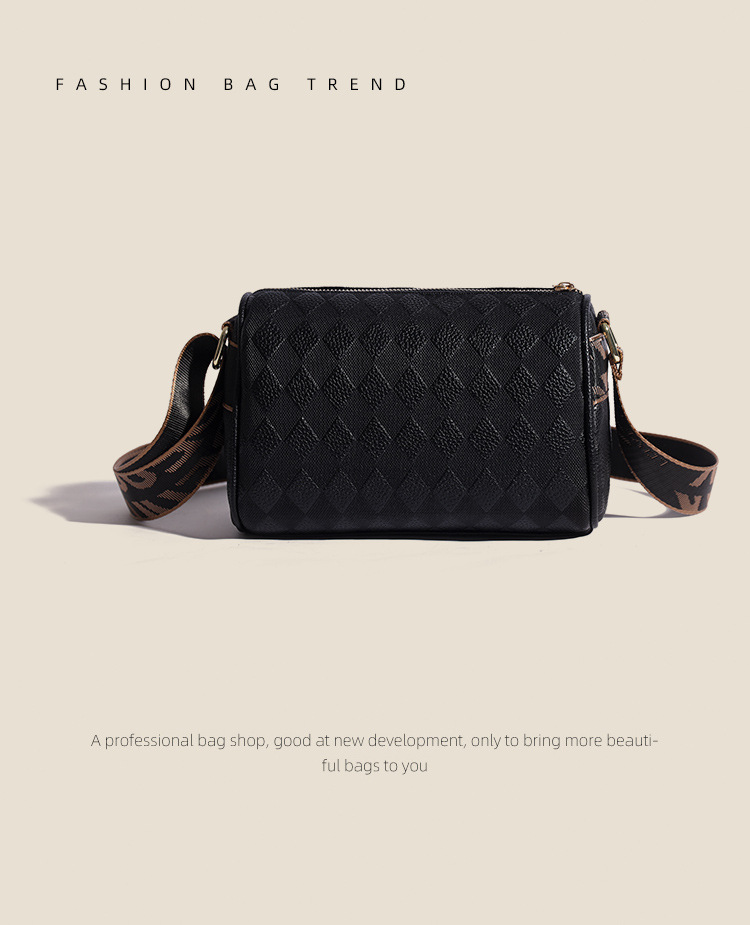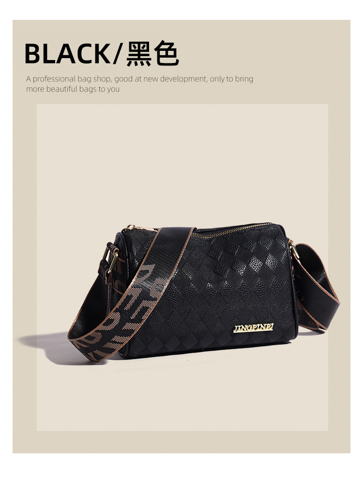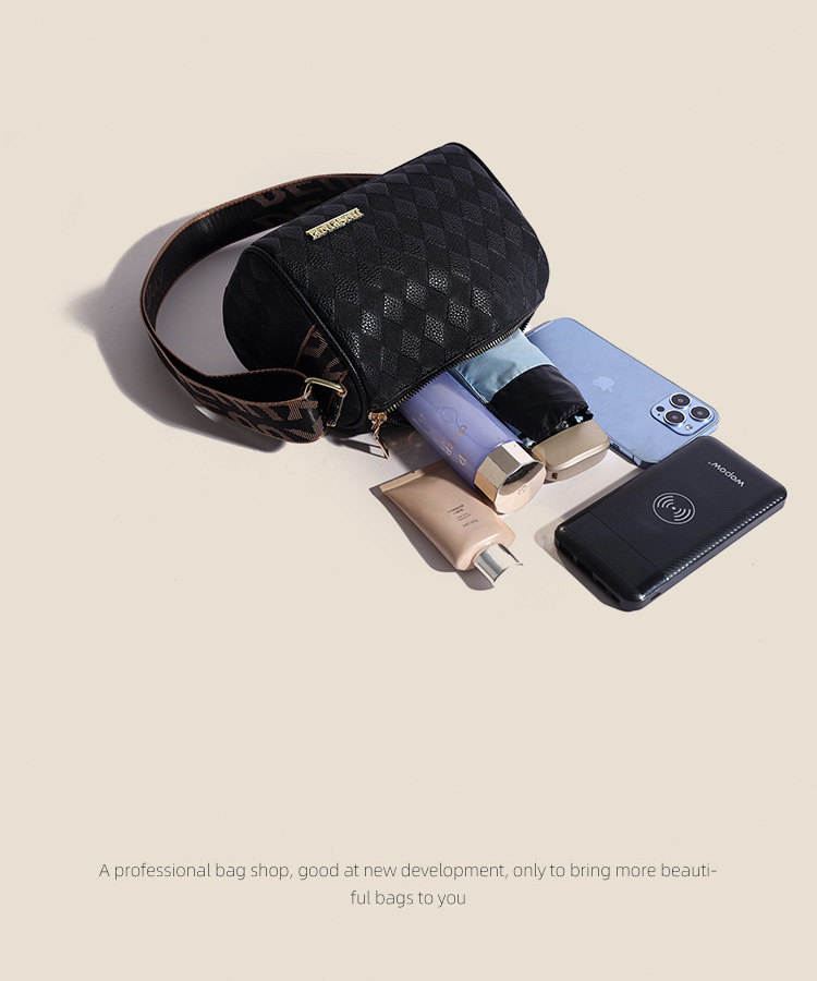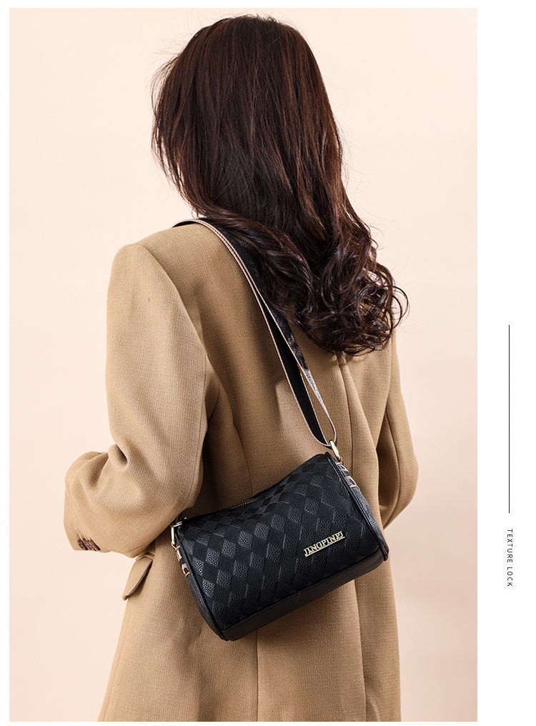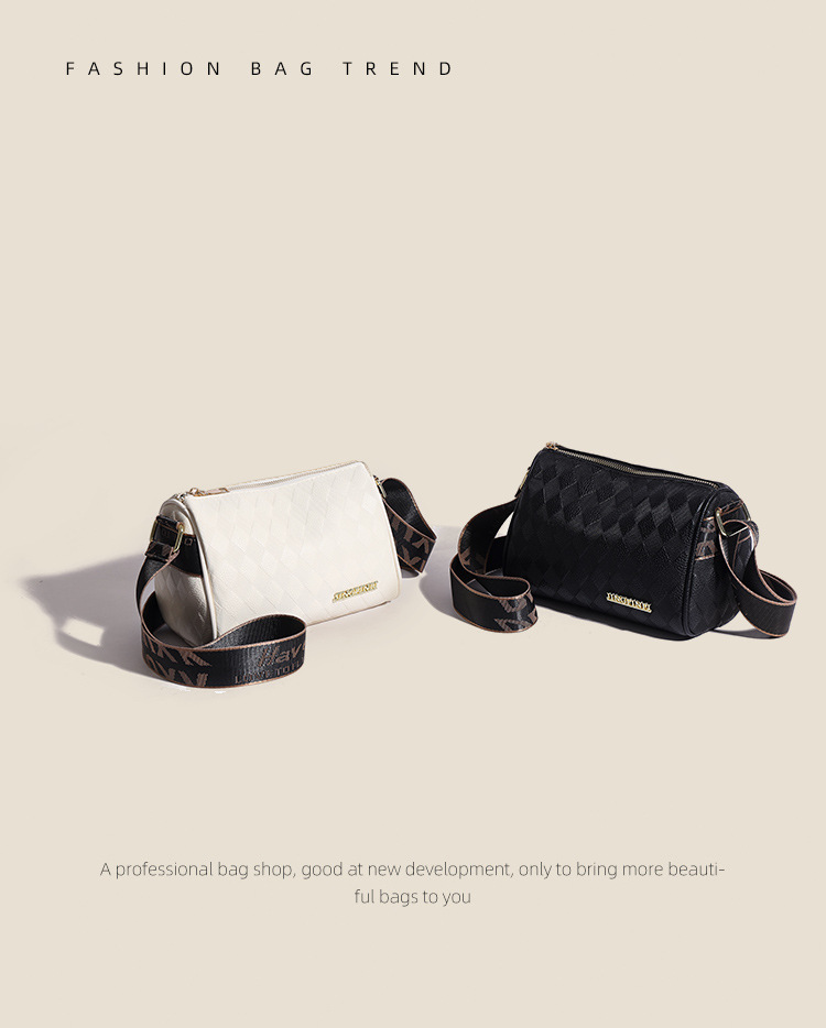 JM-1041 小包包女2023新款枕头包时尚复古压花格子单肩斜挎包宽肩带圆筒包