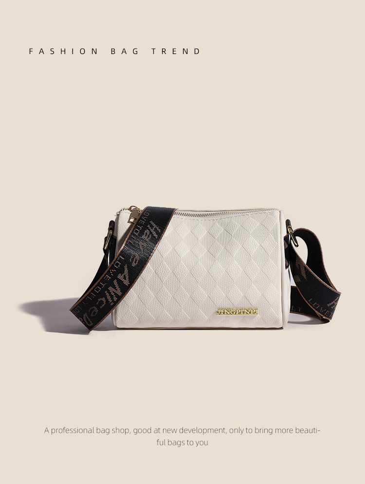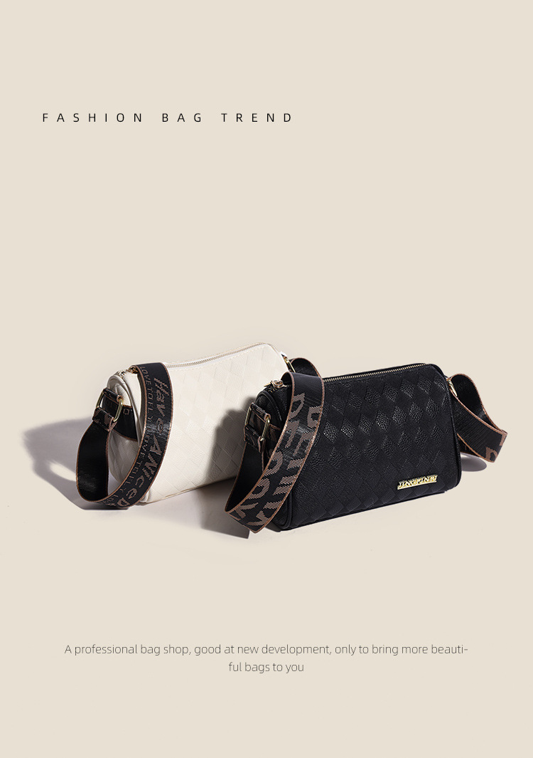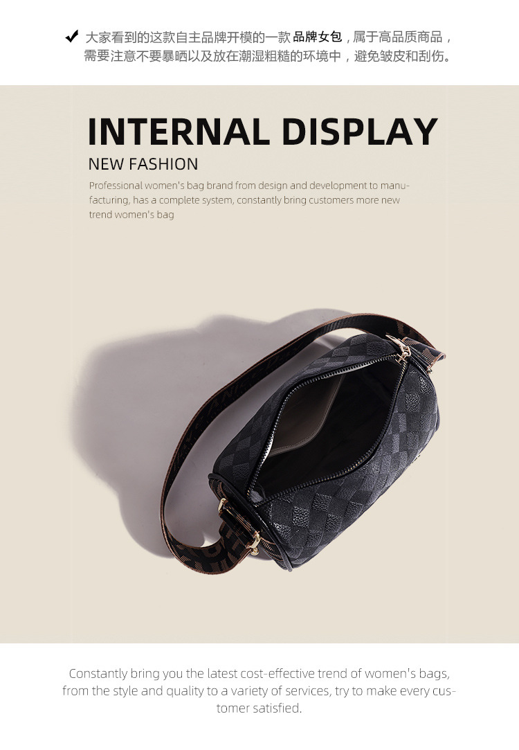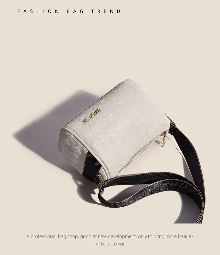 JM-1041 小包包女2023新款枕头包时尚复古压花格子单肩斜挎包宽肩带圆筒包