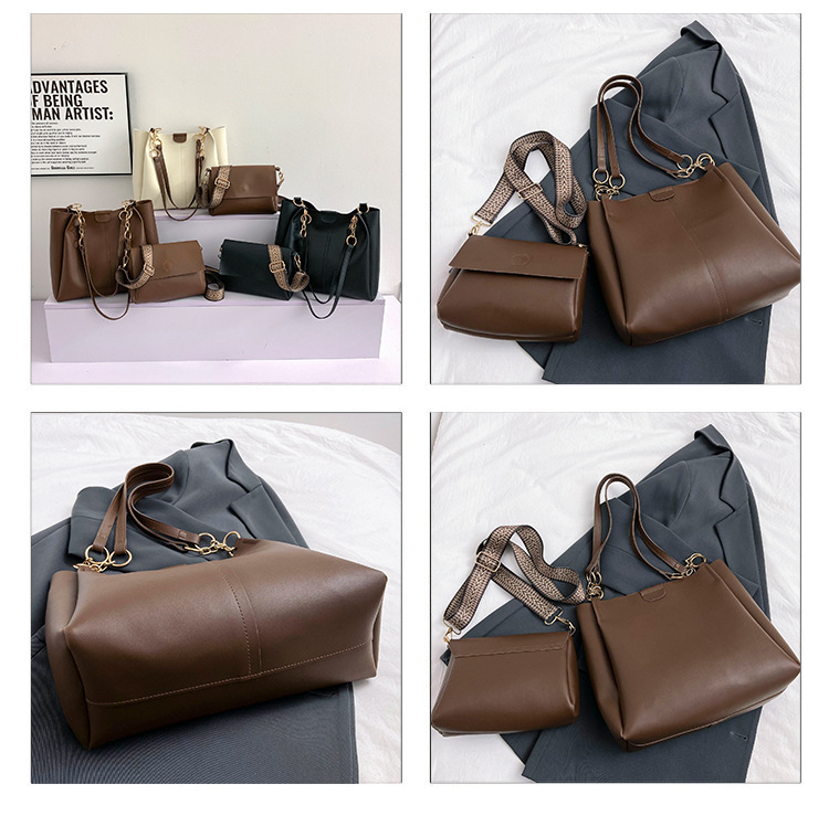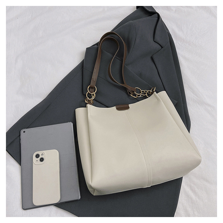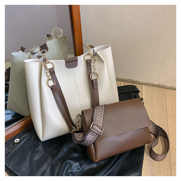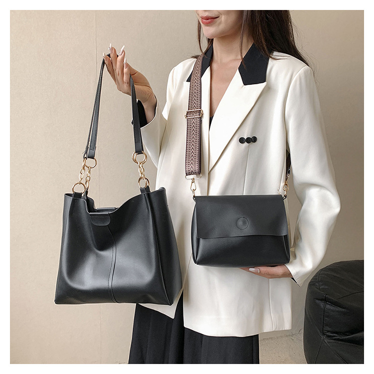 JM-1042 2023秋冬新款撞色拼接单肩包通勤百搭子母包时尚复古大容量托特包
