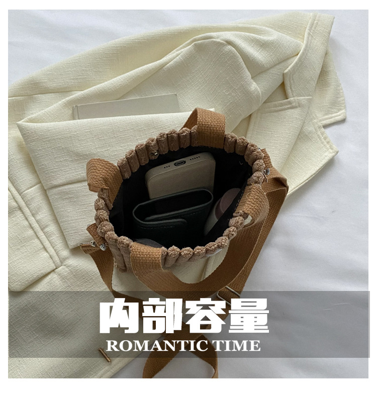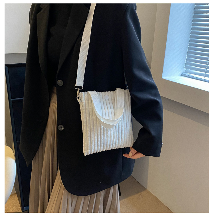 JM-1047 2023潮流新款灯芯绒手提小包包洋气质感单肩斜挎手提包简约水桶包