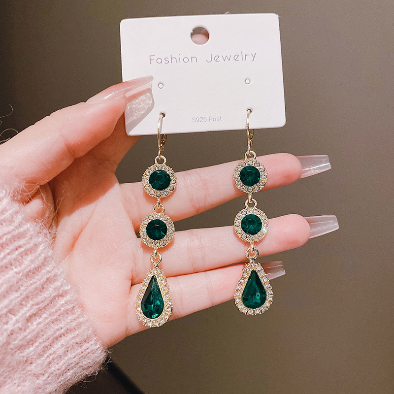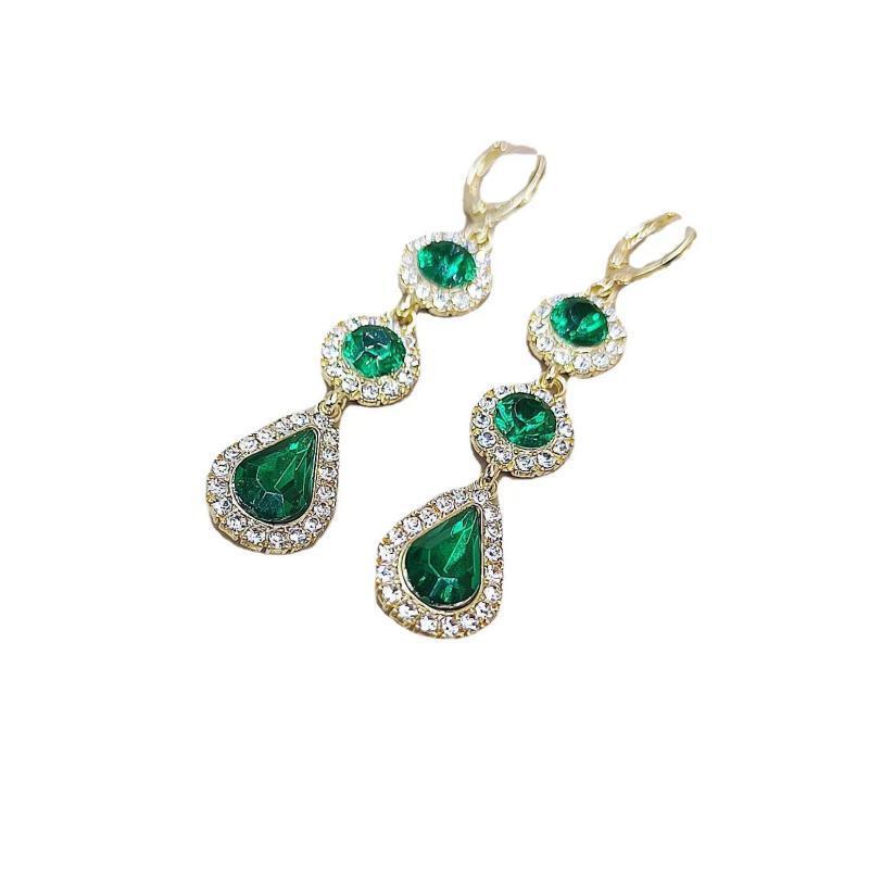 JME-622 气质奢华绿色锆石耳扣新款高级水滴时尚百搭女耳环百搭精致耳饰品