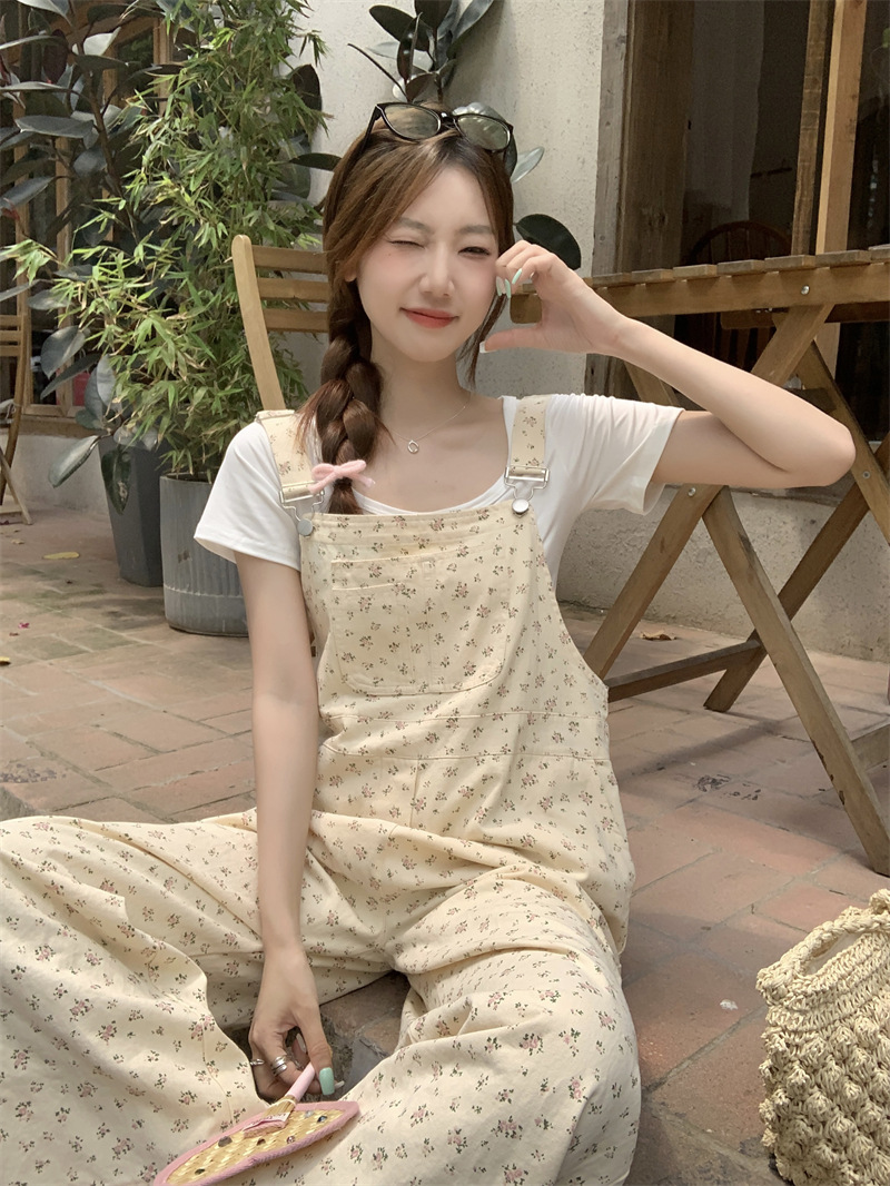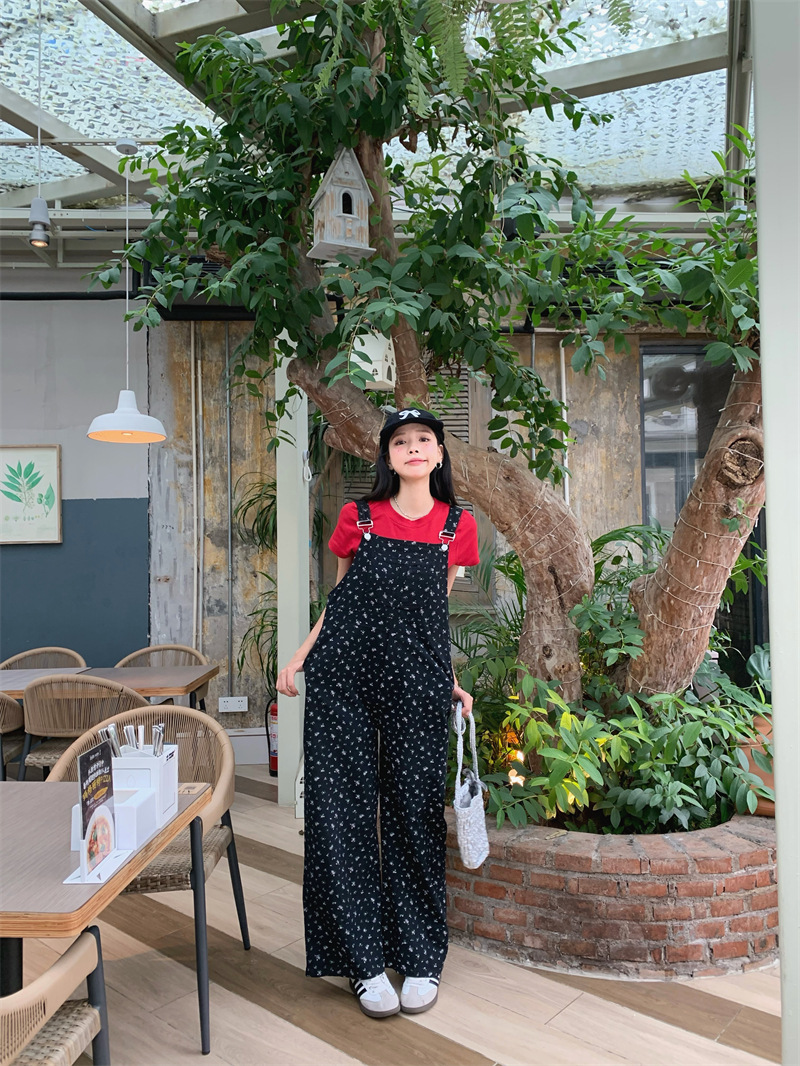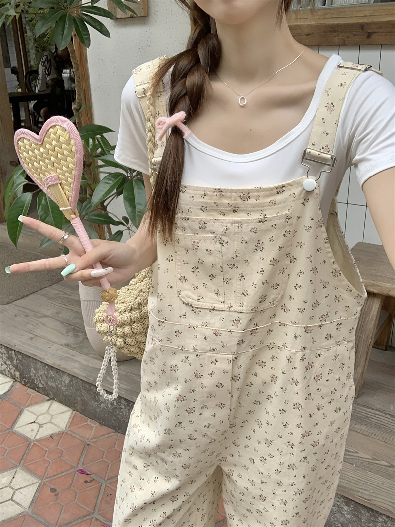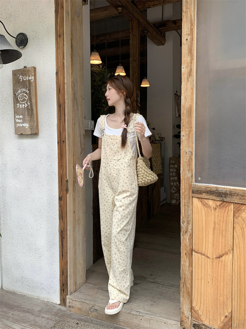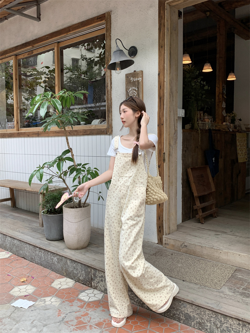 JMA-659 实拍 韩版出游减龄碎花背带裤女夏季慵懒风甜美背带牛仔休闲长裤
