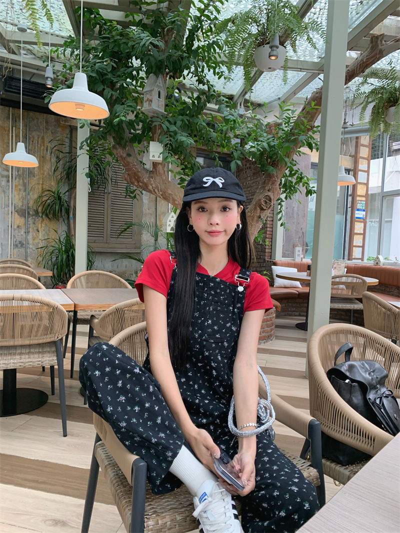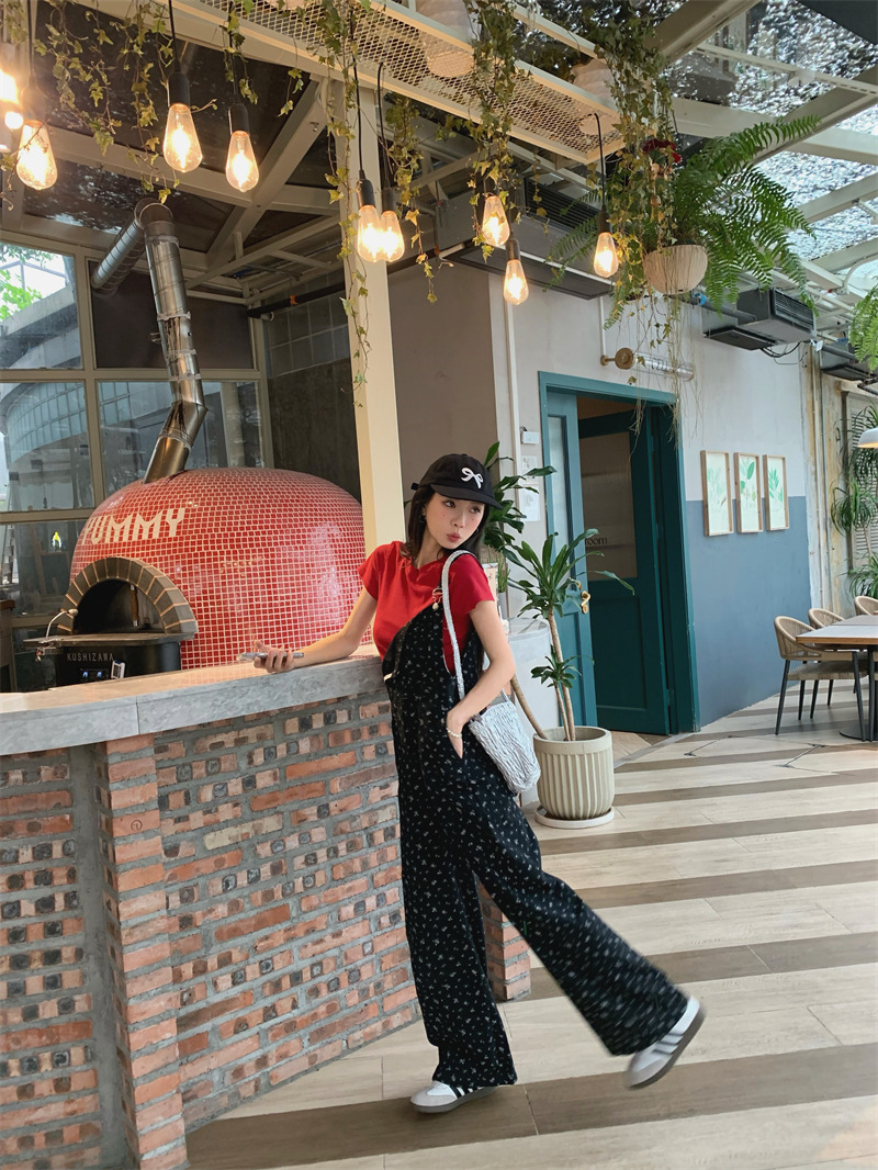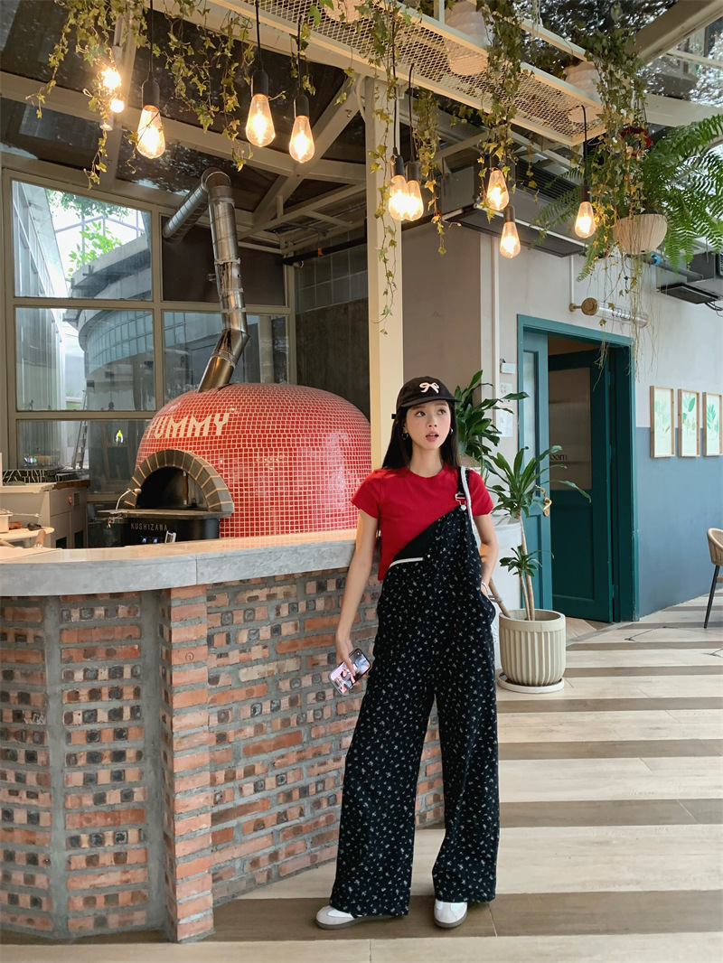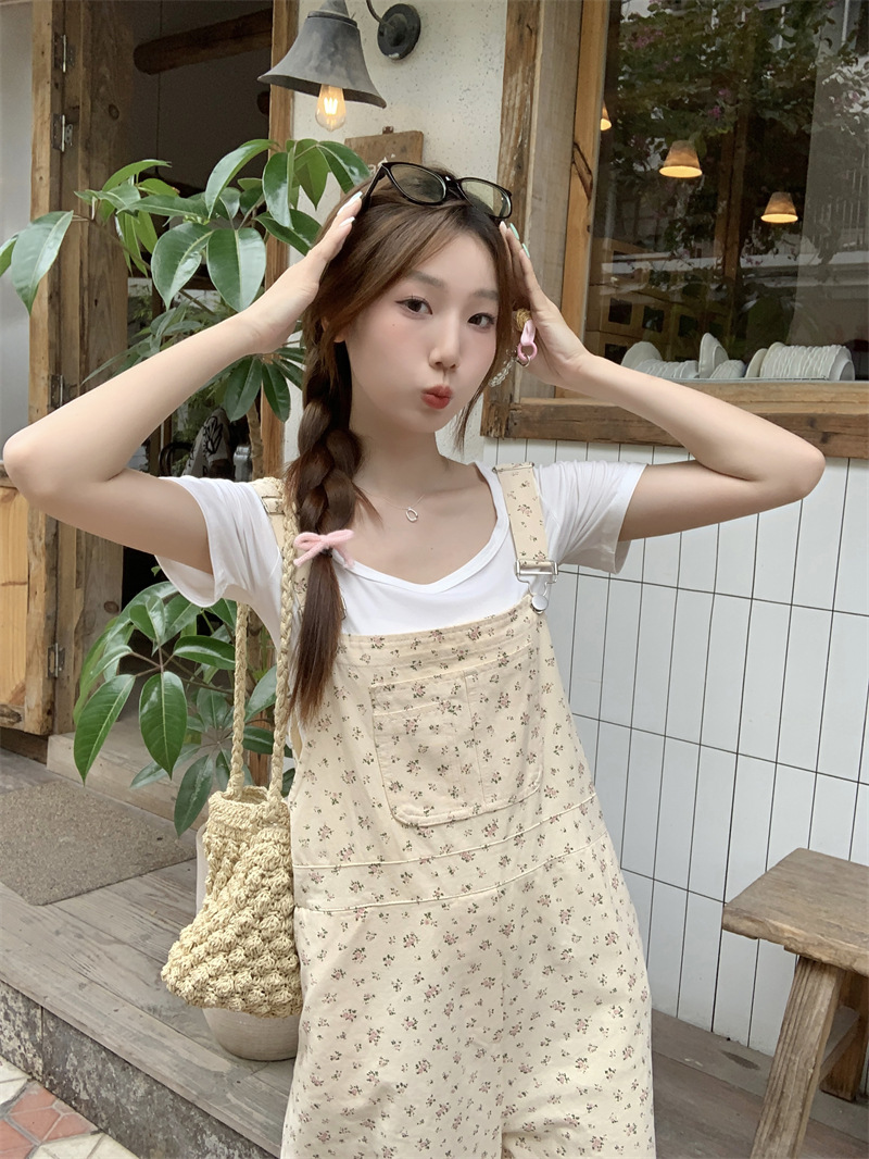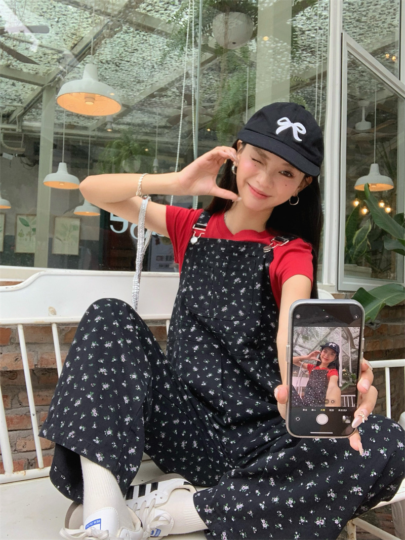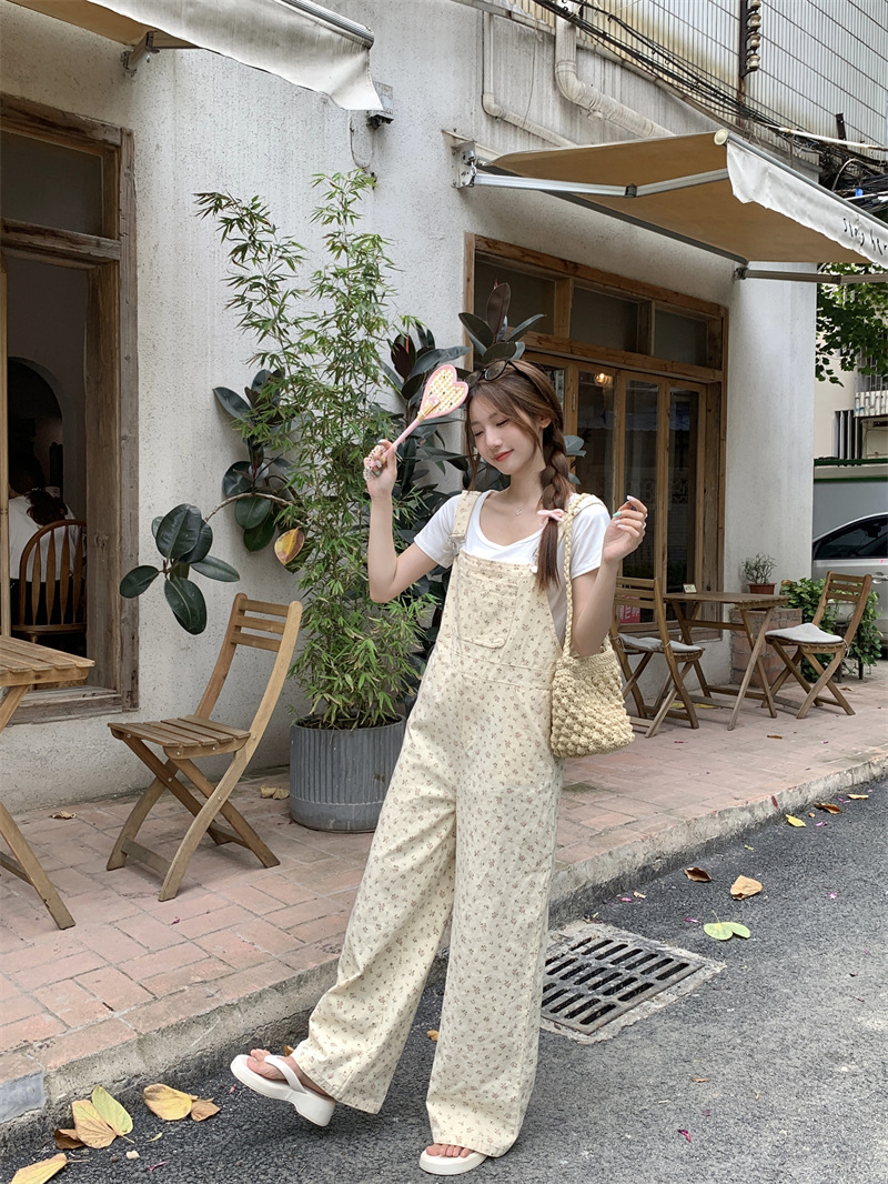 JMA-659 实拍 韩版出游减龄碎花背带裤女夏季慵懒风甜美背带牛仔休闲长裤