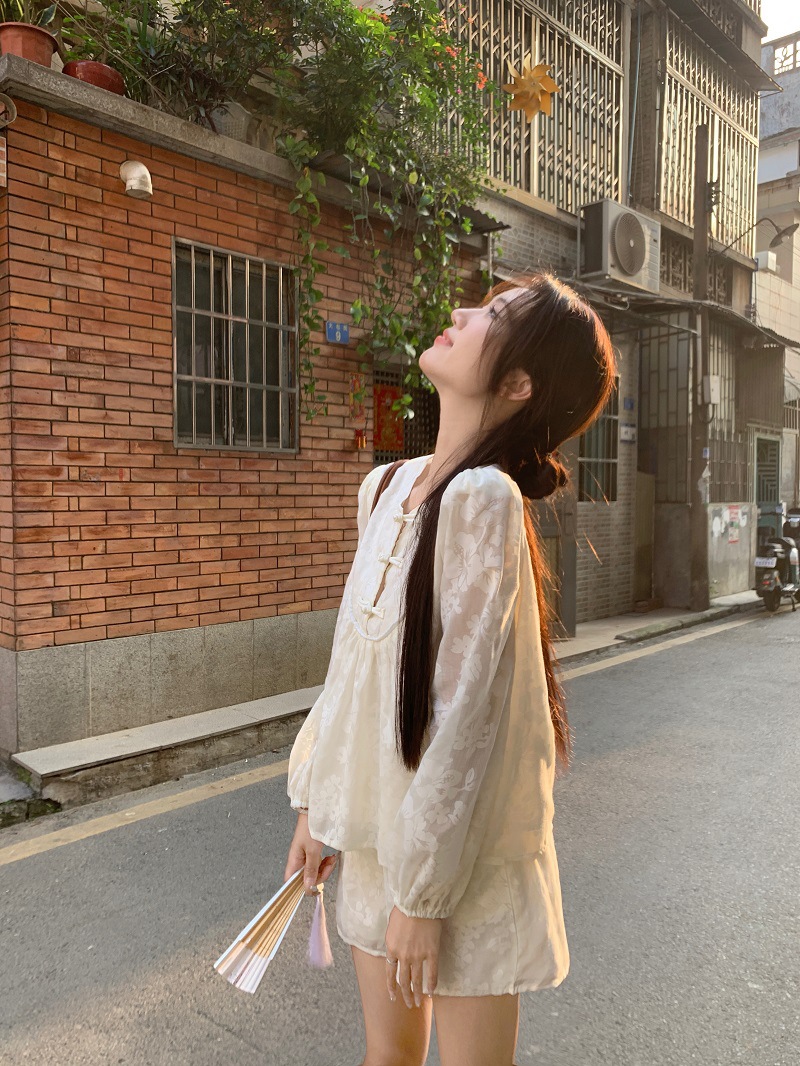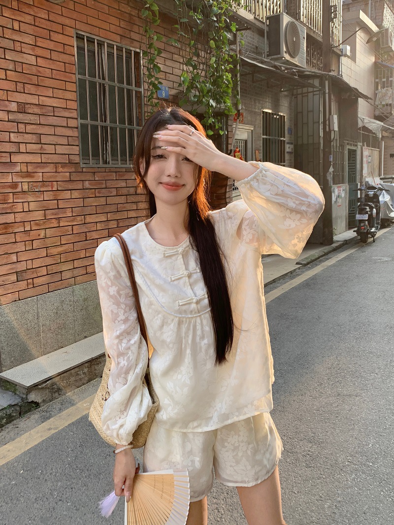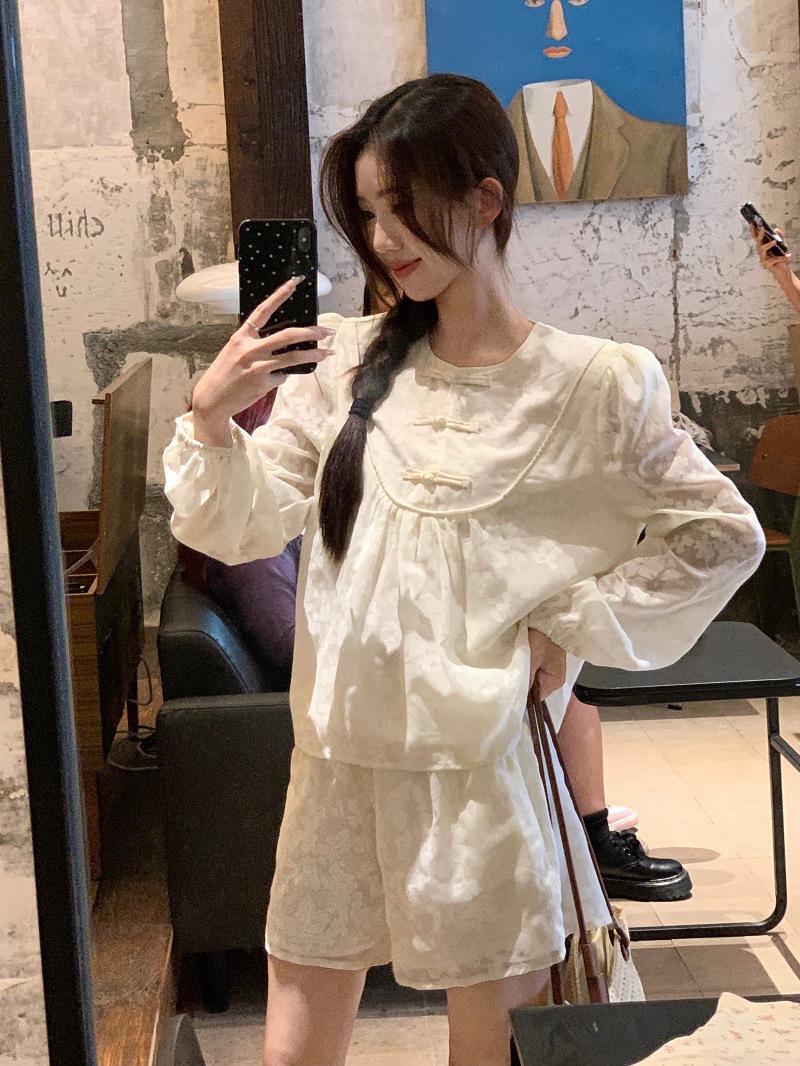 JMA-660 实拍 2024夏季新中式衬衫盘扣上衣女高级感中国风套装短裤两件套