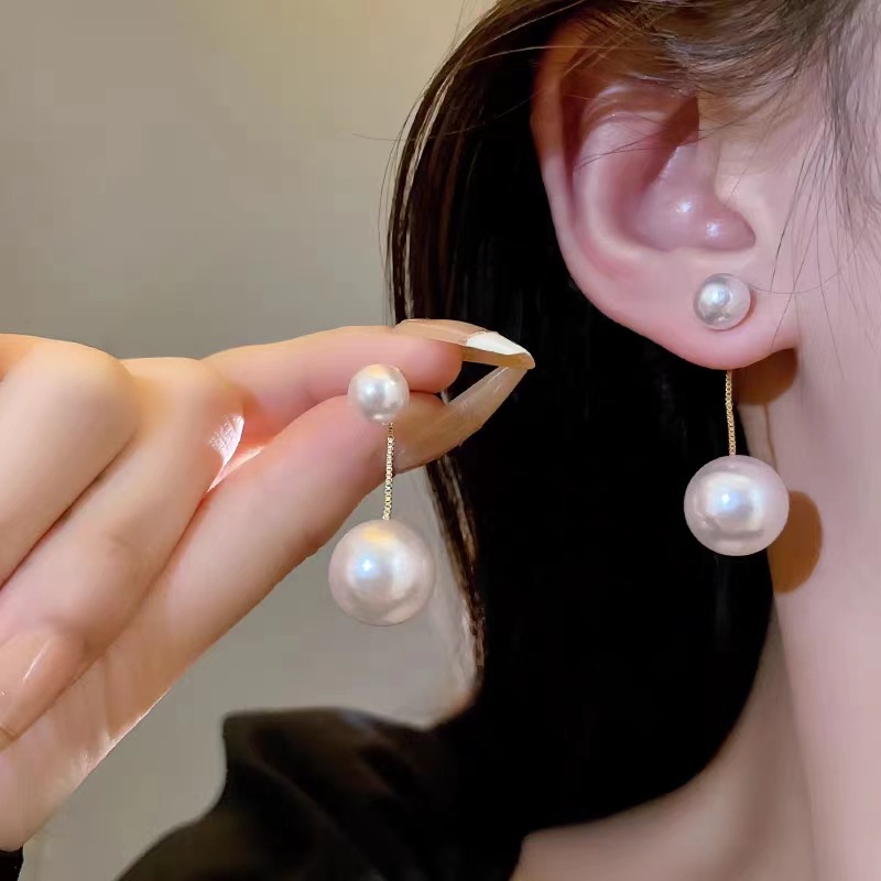 JME-634 s925银针后挂式短款珍珠耳钉耳环2023年新品潮法式复古轻奢感耳饰