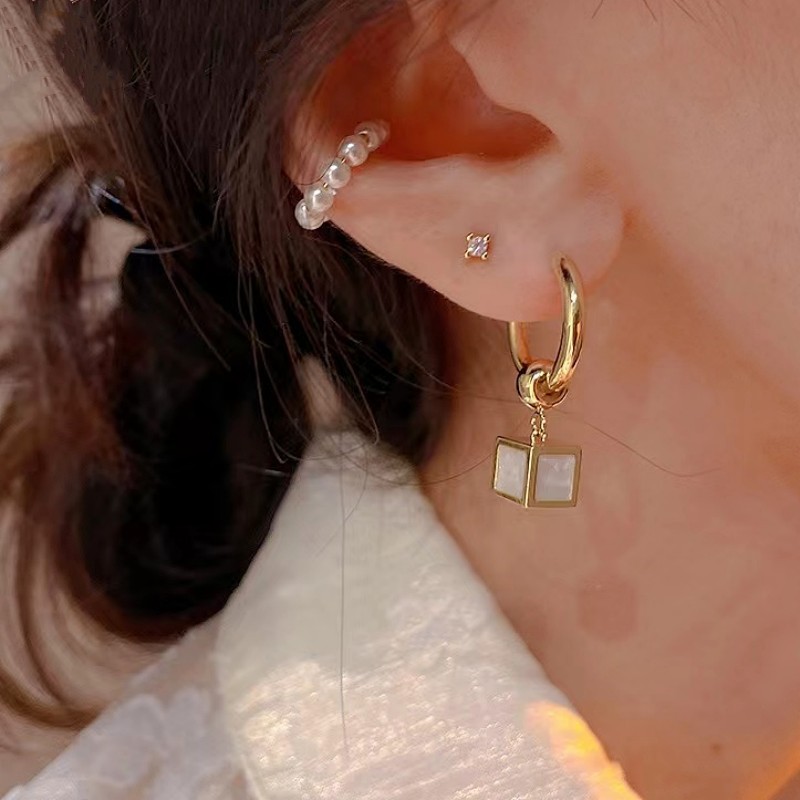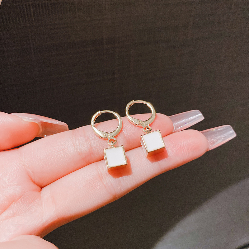 JME-635 2024年新款黑色方块优雅耳钉女高级感轻奢耳坠小众设计气质耳饰品
