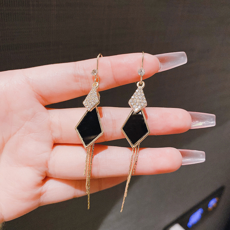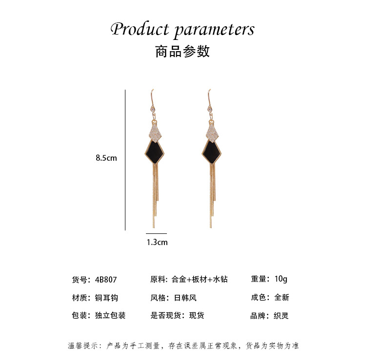 JME-637 圆脸适合的耳环闪钻微镶菱形耳坠流苏长条性感耳饰品女神气质耳钉