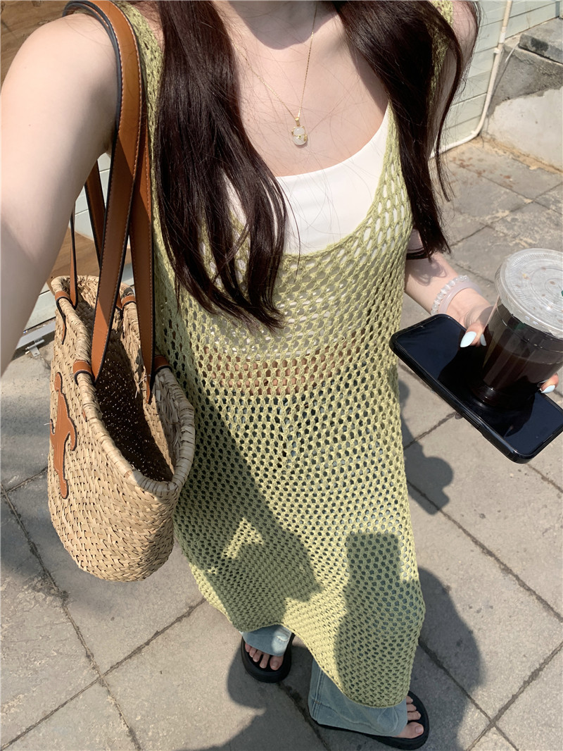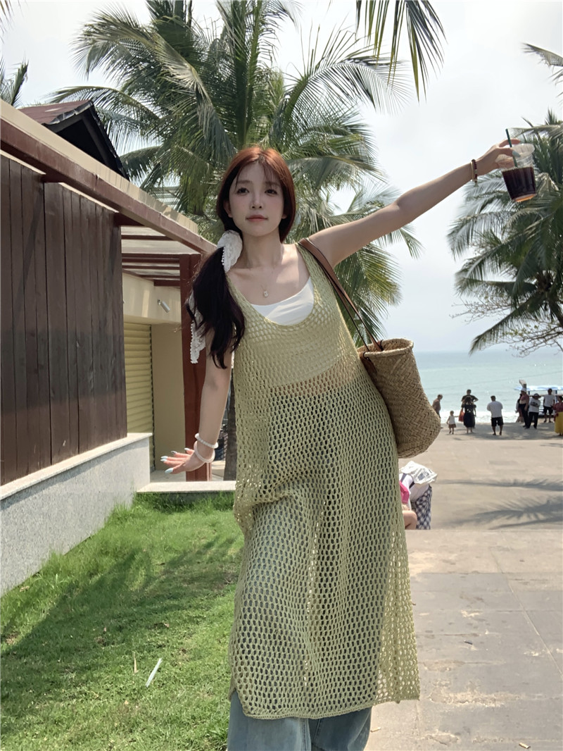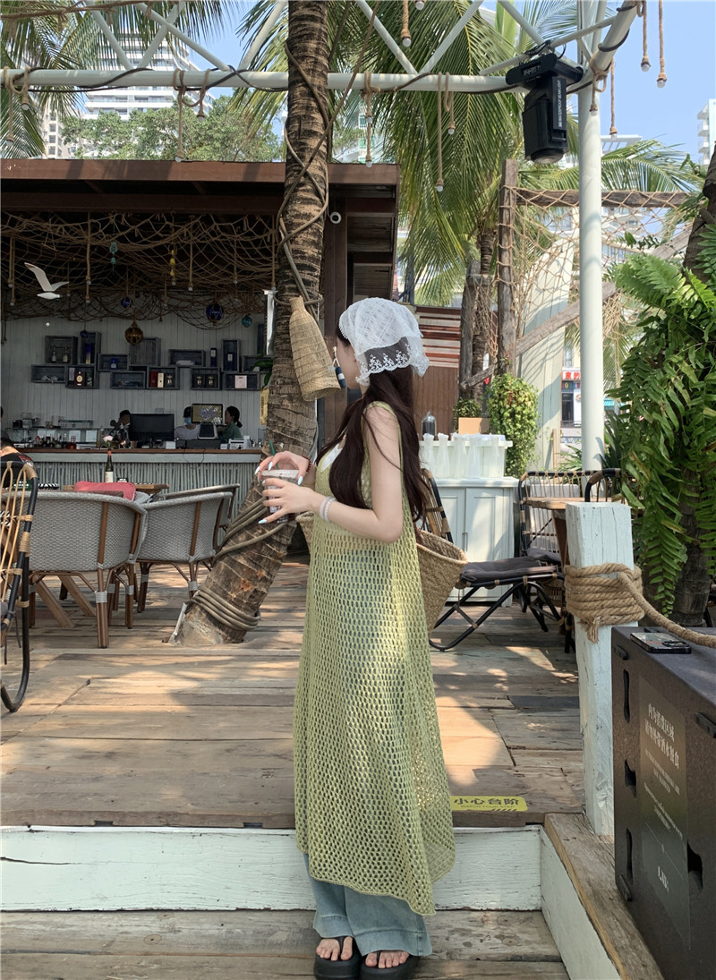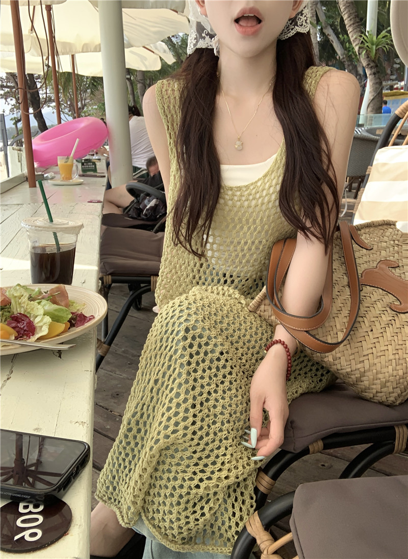 JMA-668 实拍 2024夏季新款韩版柠檬绿茶小众设计感镂空叠穿背心裙连衣裙