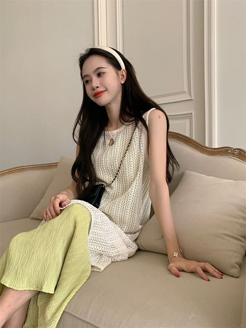 圆领无袖,减龄的同时,比较好地调节肩部线条