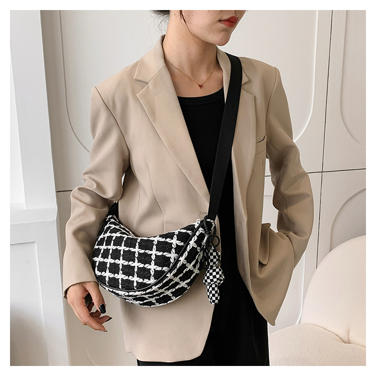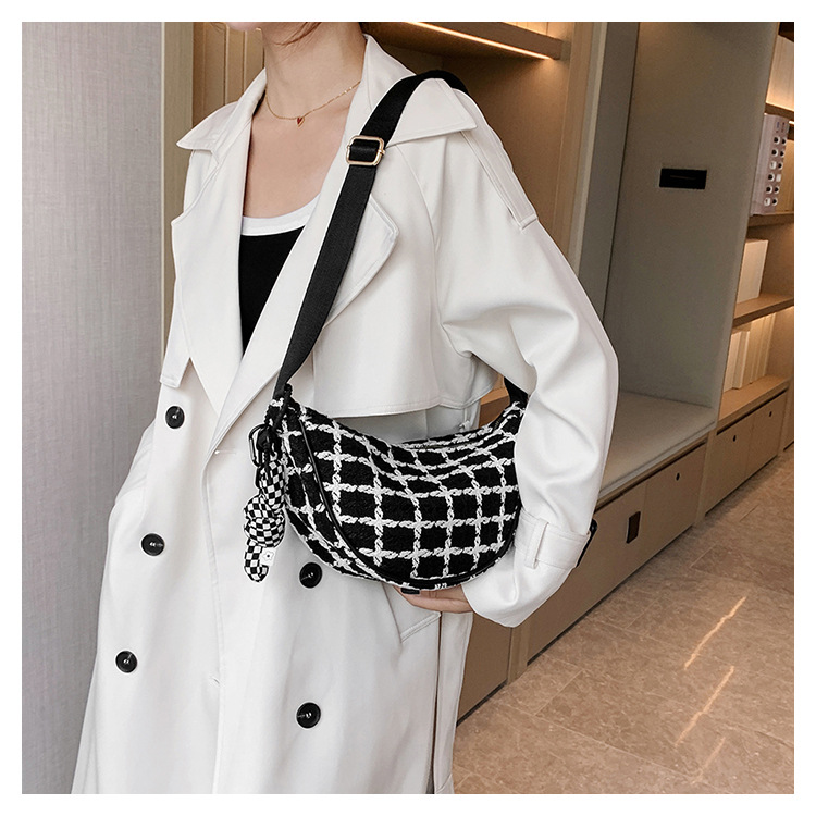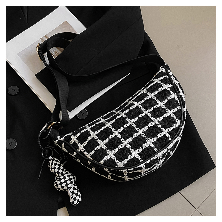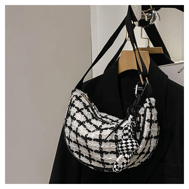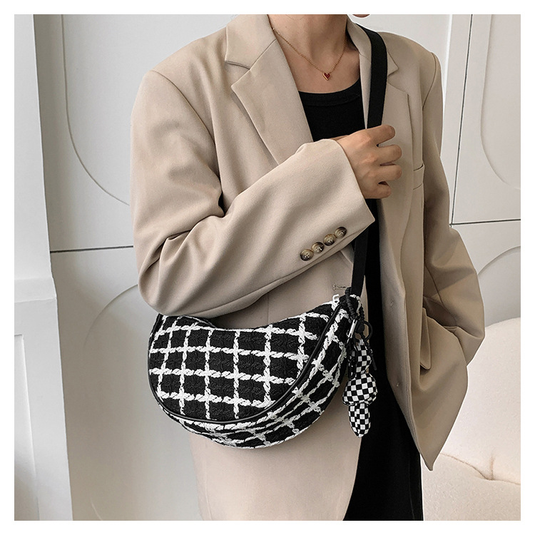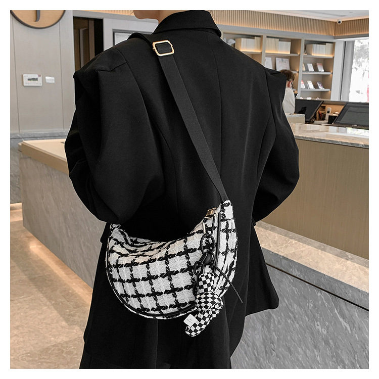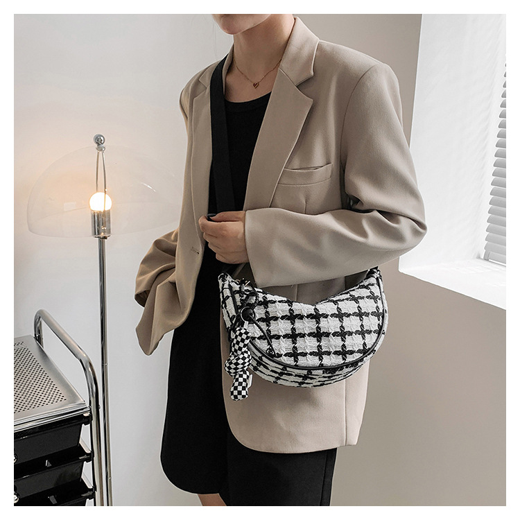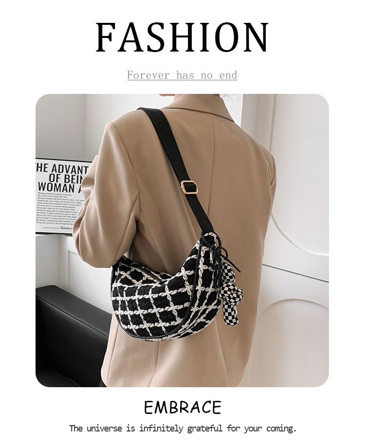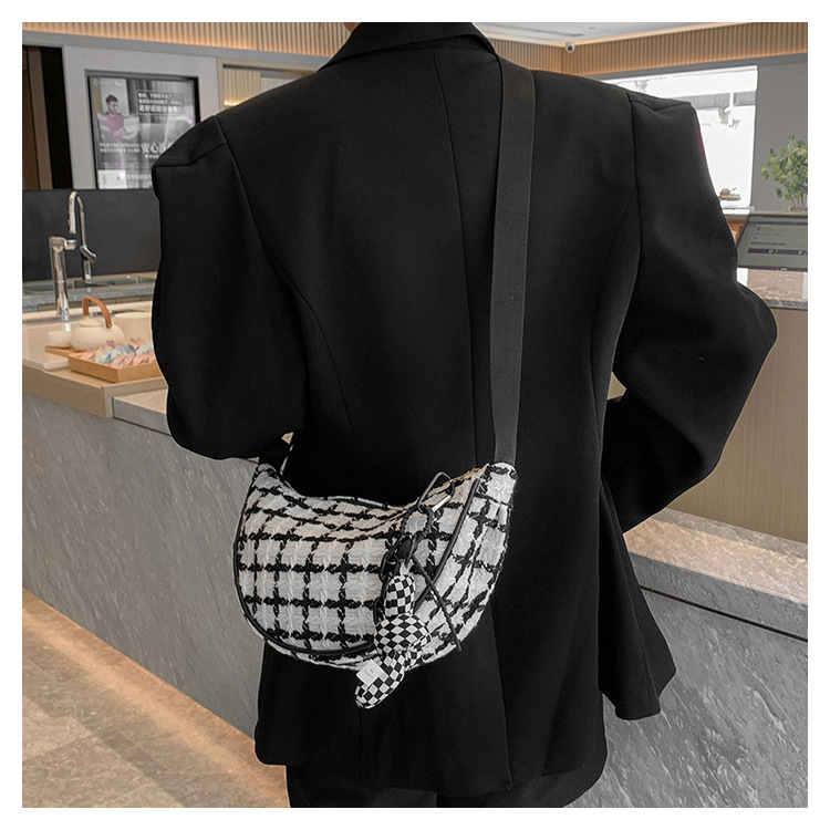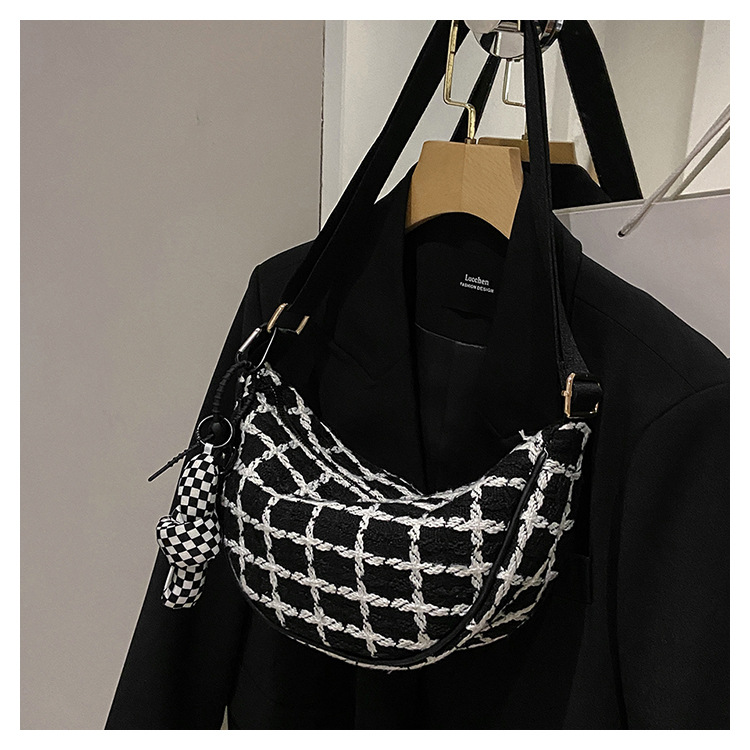 JM-1085 2023秋冬新款女包小众百搭时尚格纹斜挎包包简约大容量潮流单肩包