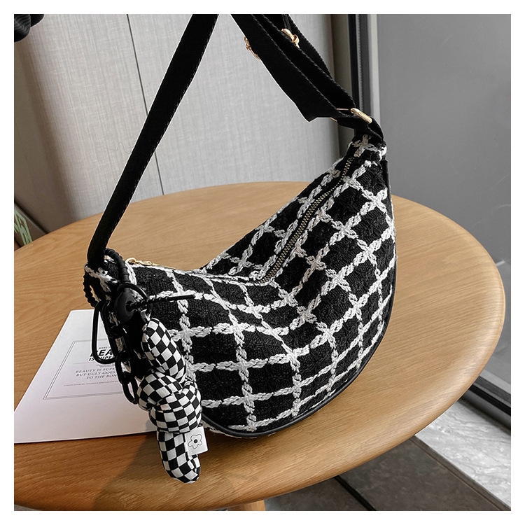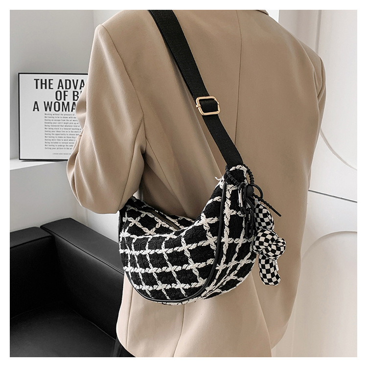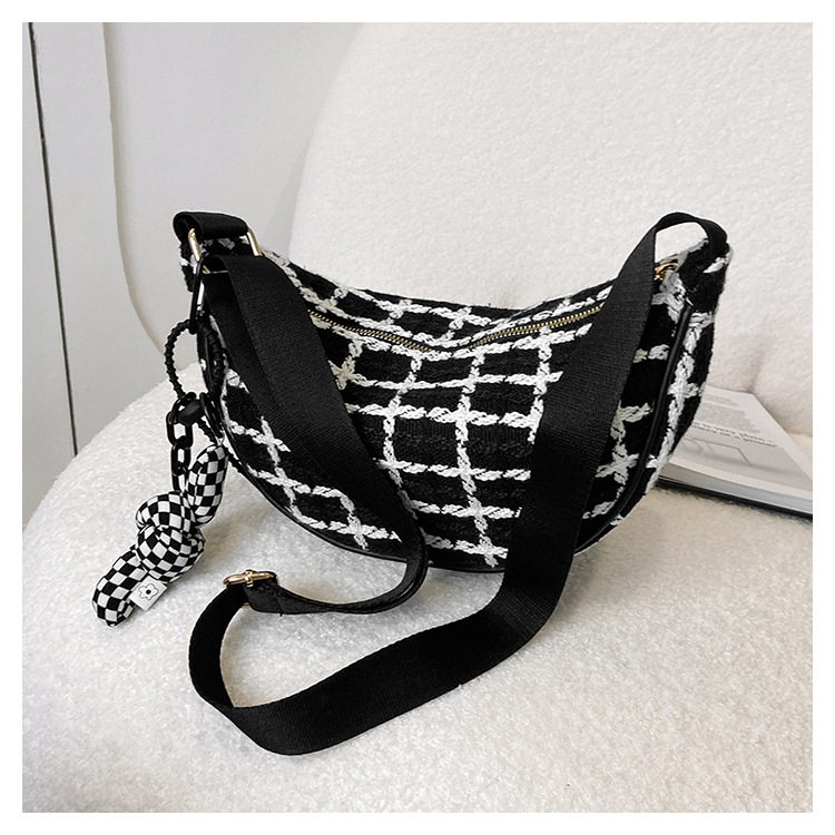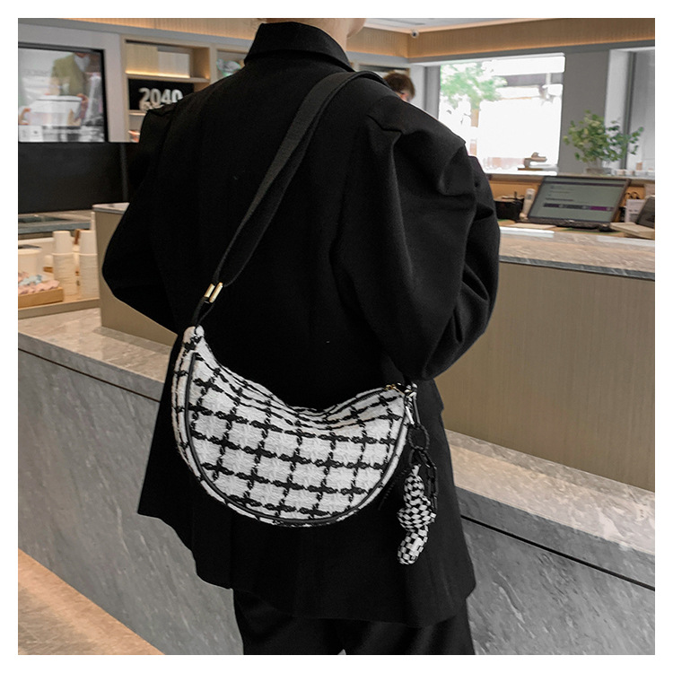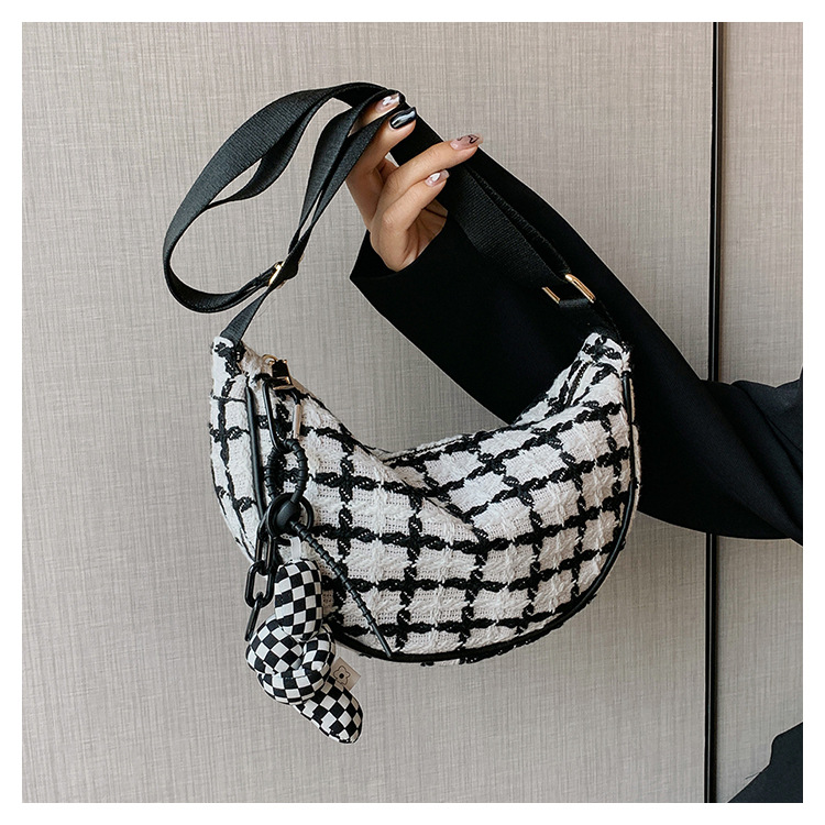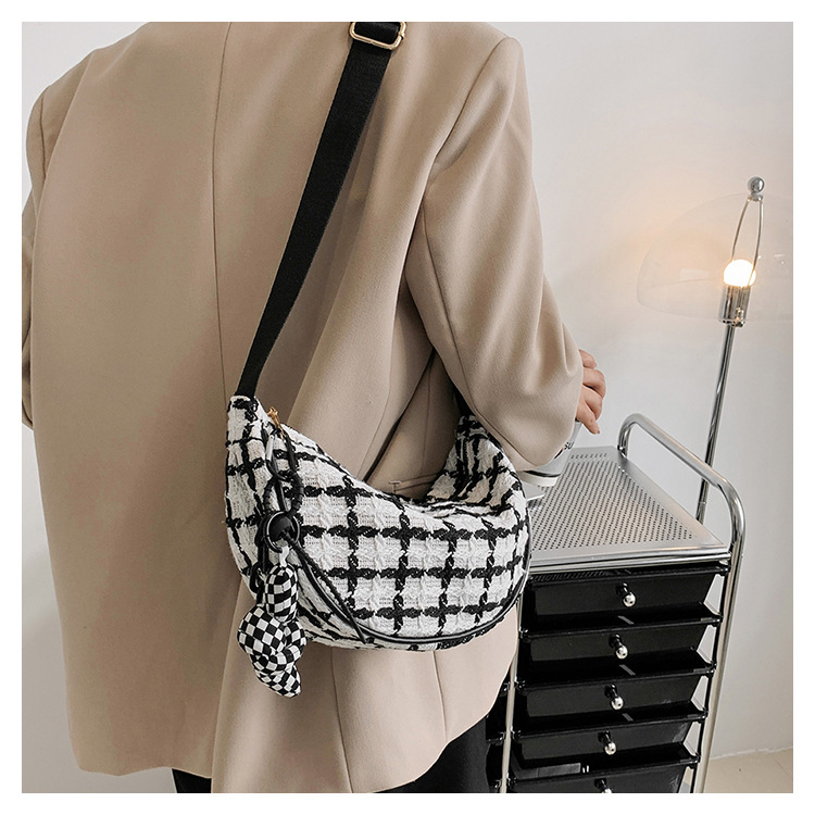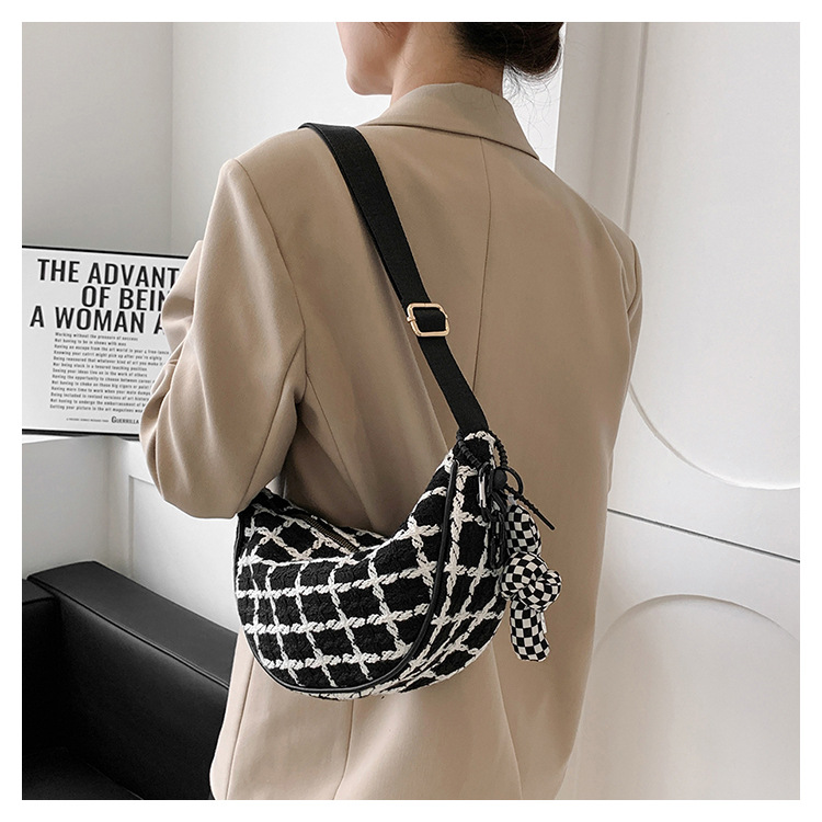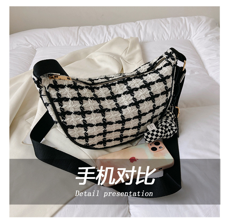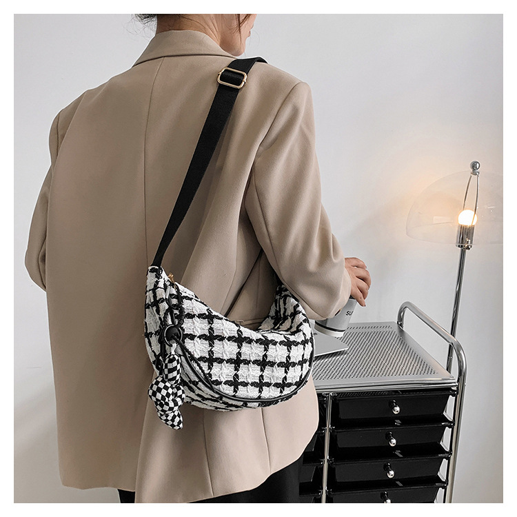 JM-1085 2023秋冬新款女包小众百搭时尚格纹斜挎包包简约大容量潮流单肩包