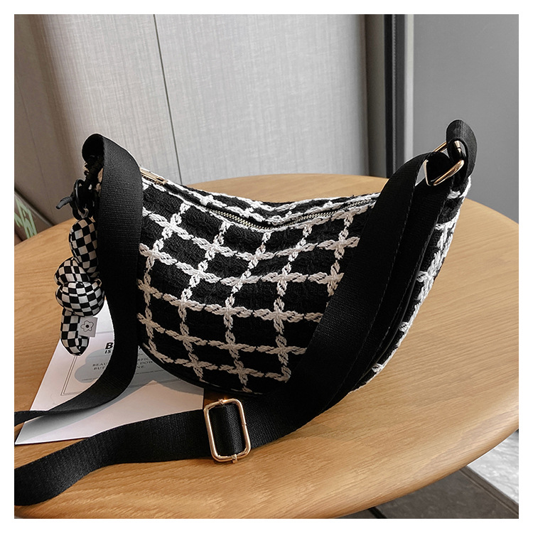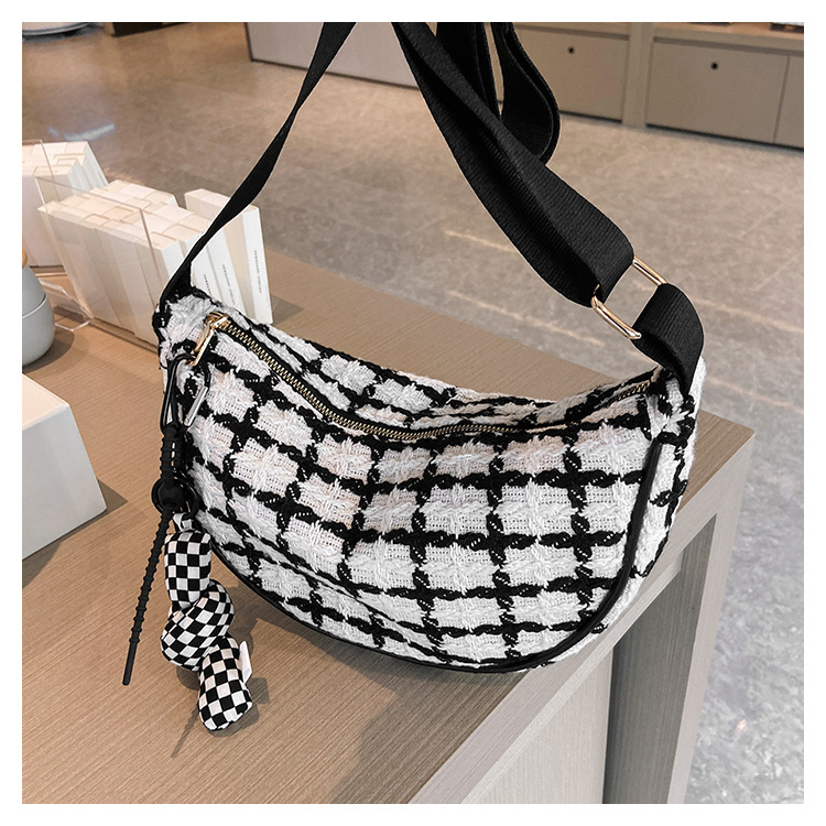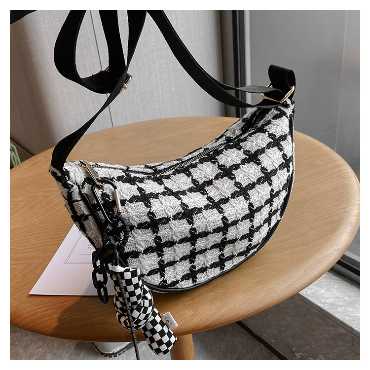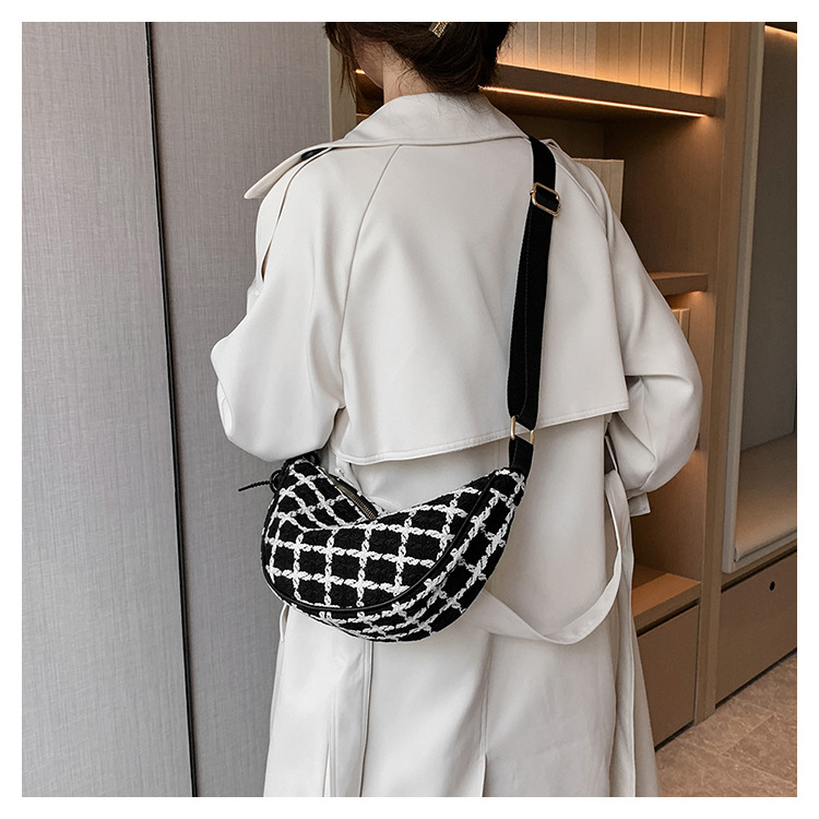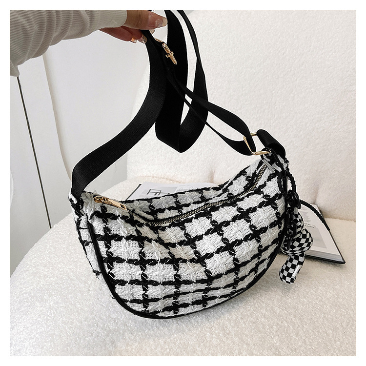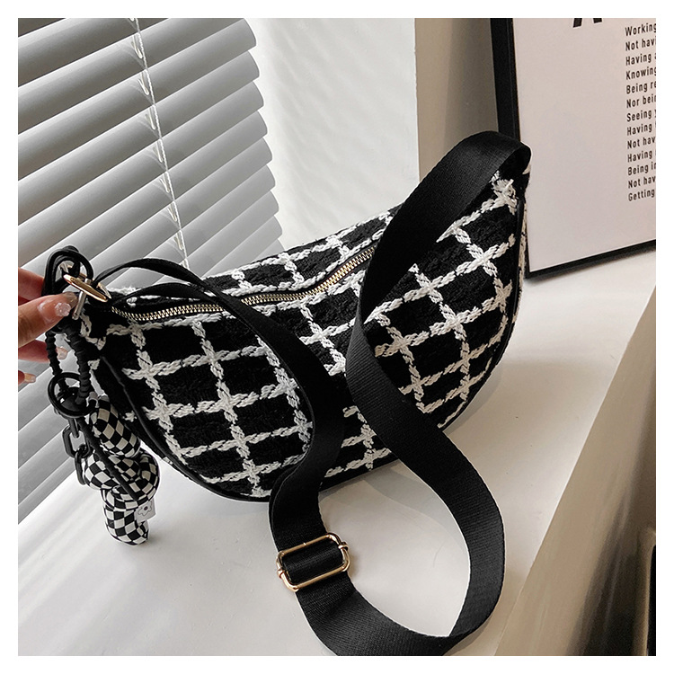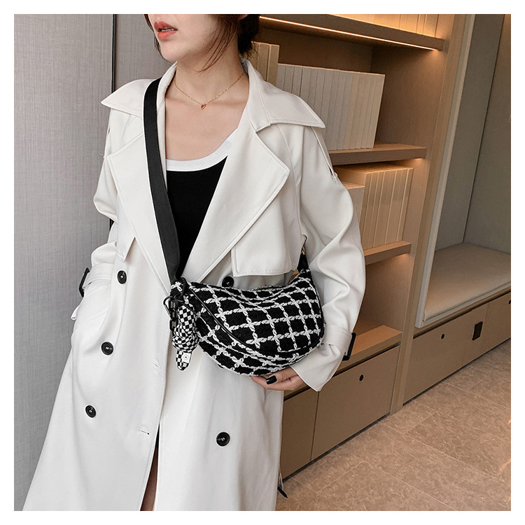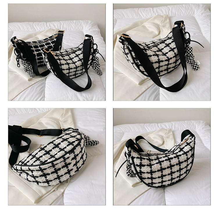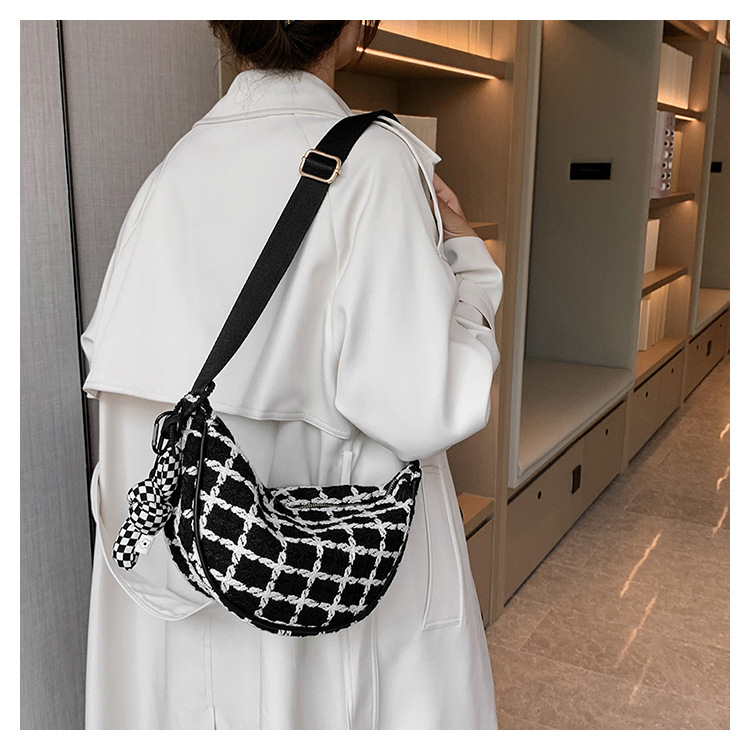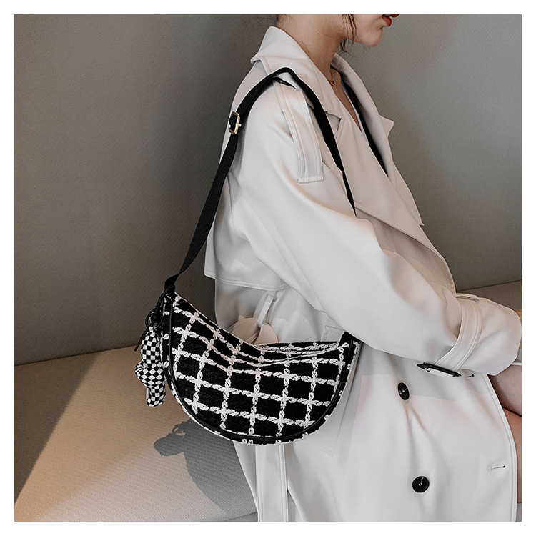 JM-1085 2023秋冬新款女包小众百搭时尚格纹斜挎包包简约大容量潮流单肩包