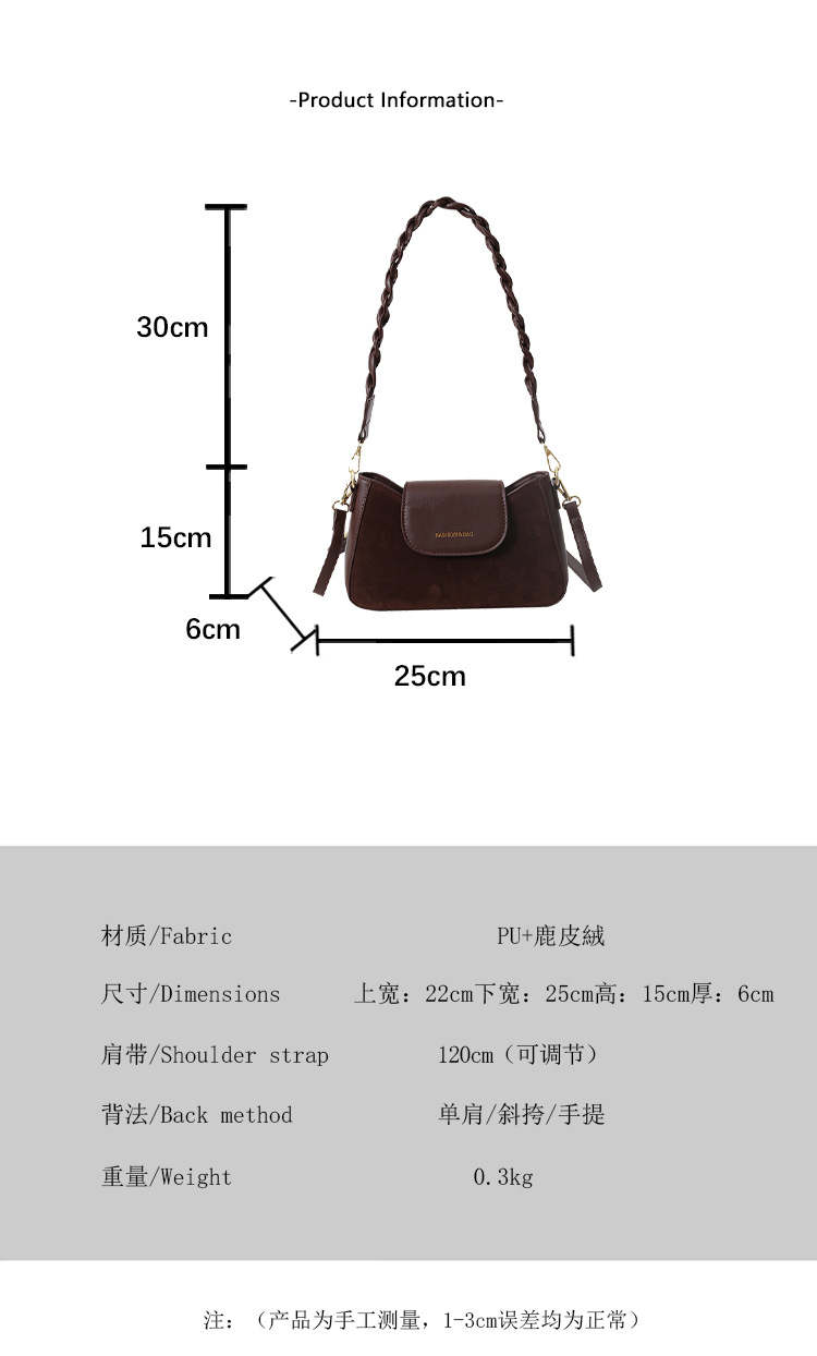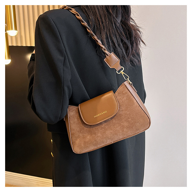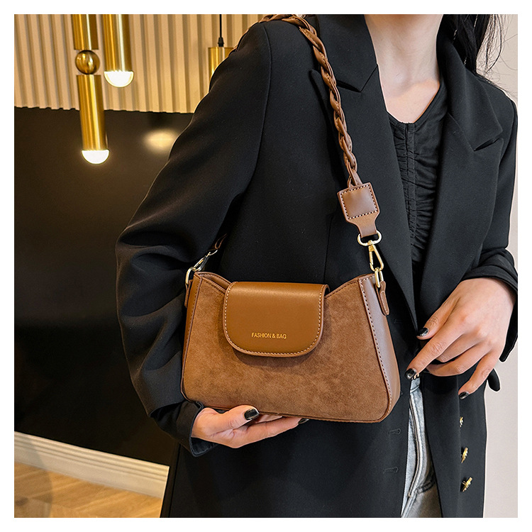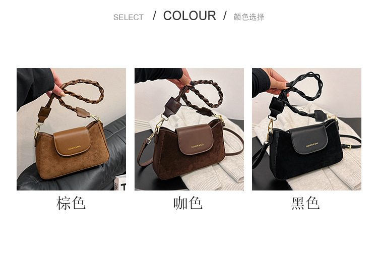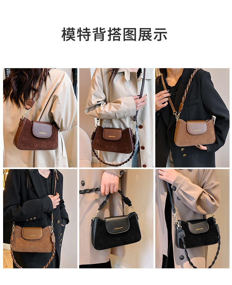 JM-1087 质感腋下包包女2023新款时尚鹿皮绒单肩斜挎包百搭复古小方包