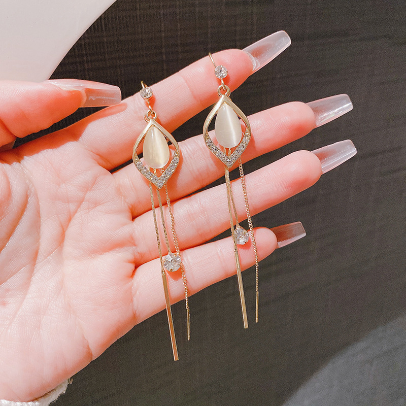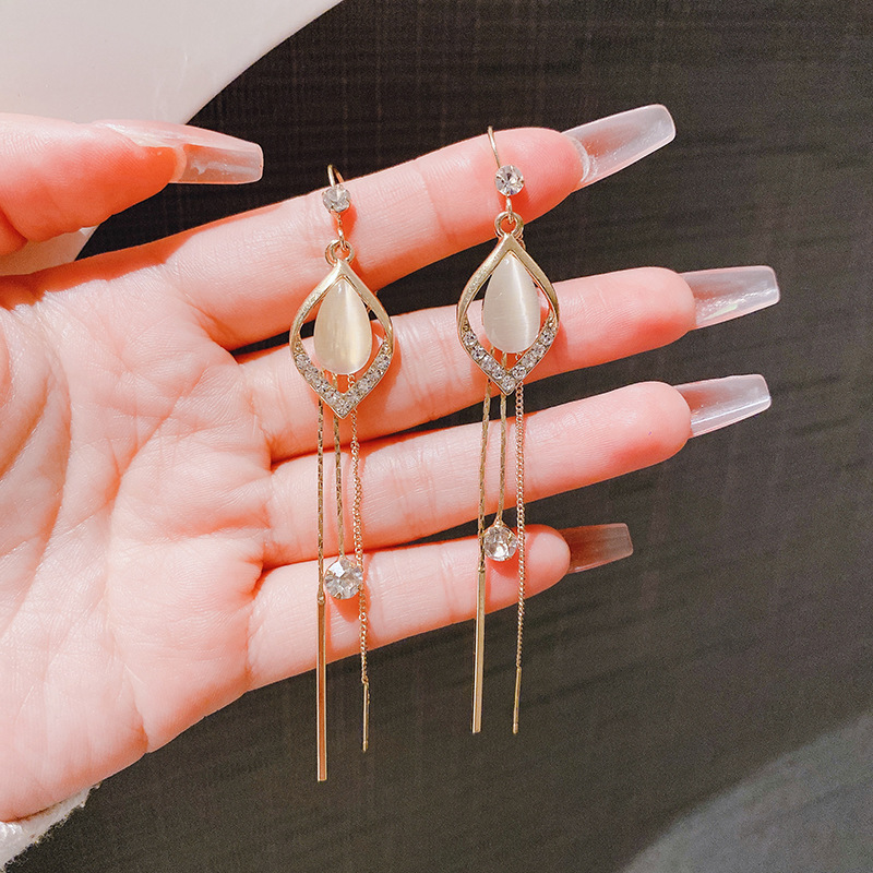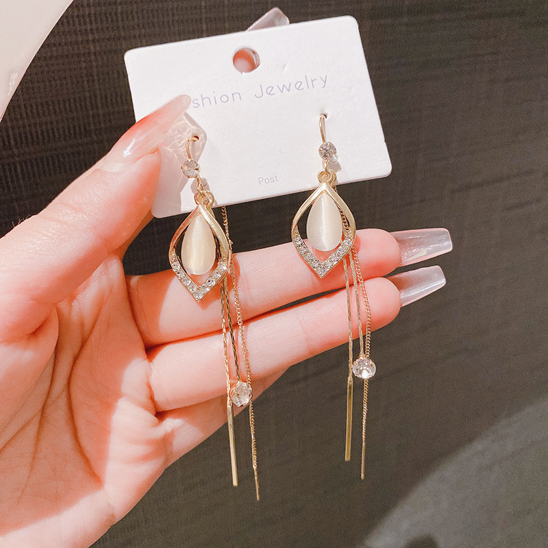 JME-662 高级感猫眼石流苏耳线2024年新款潮气质长款耳坠时尚百搭网红耳饰